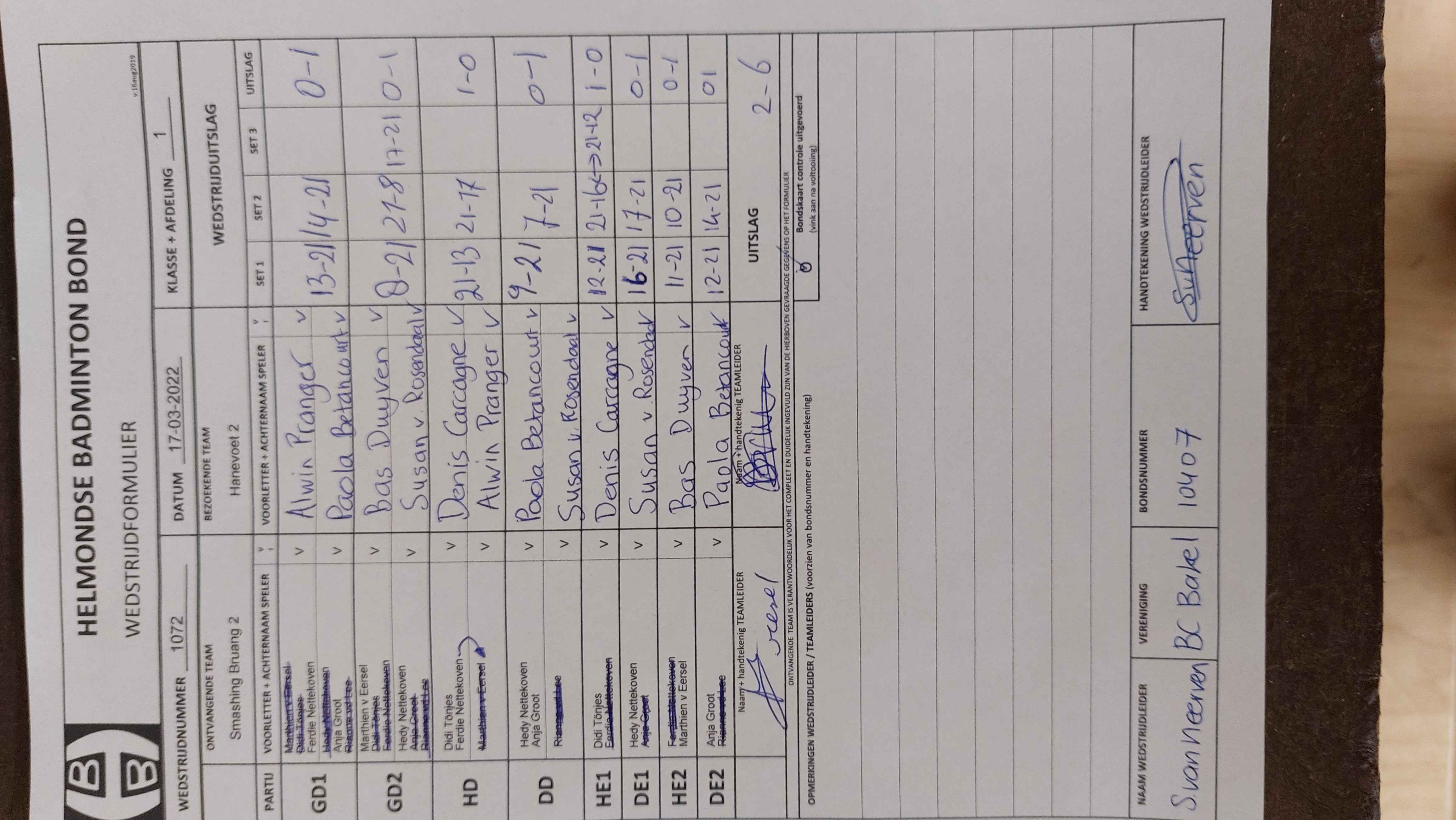 | 1072 | do. 17-03-2022 | Smashing Bruang 2 | - | Hanevoet 2 | 4 | 2 - 6 | |||