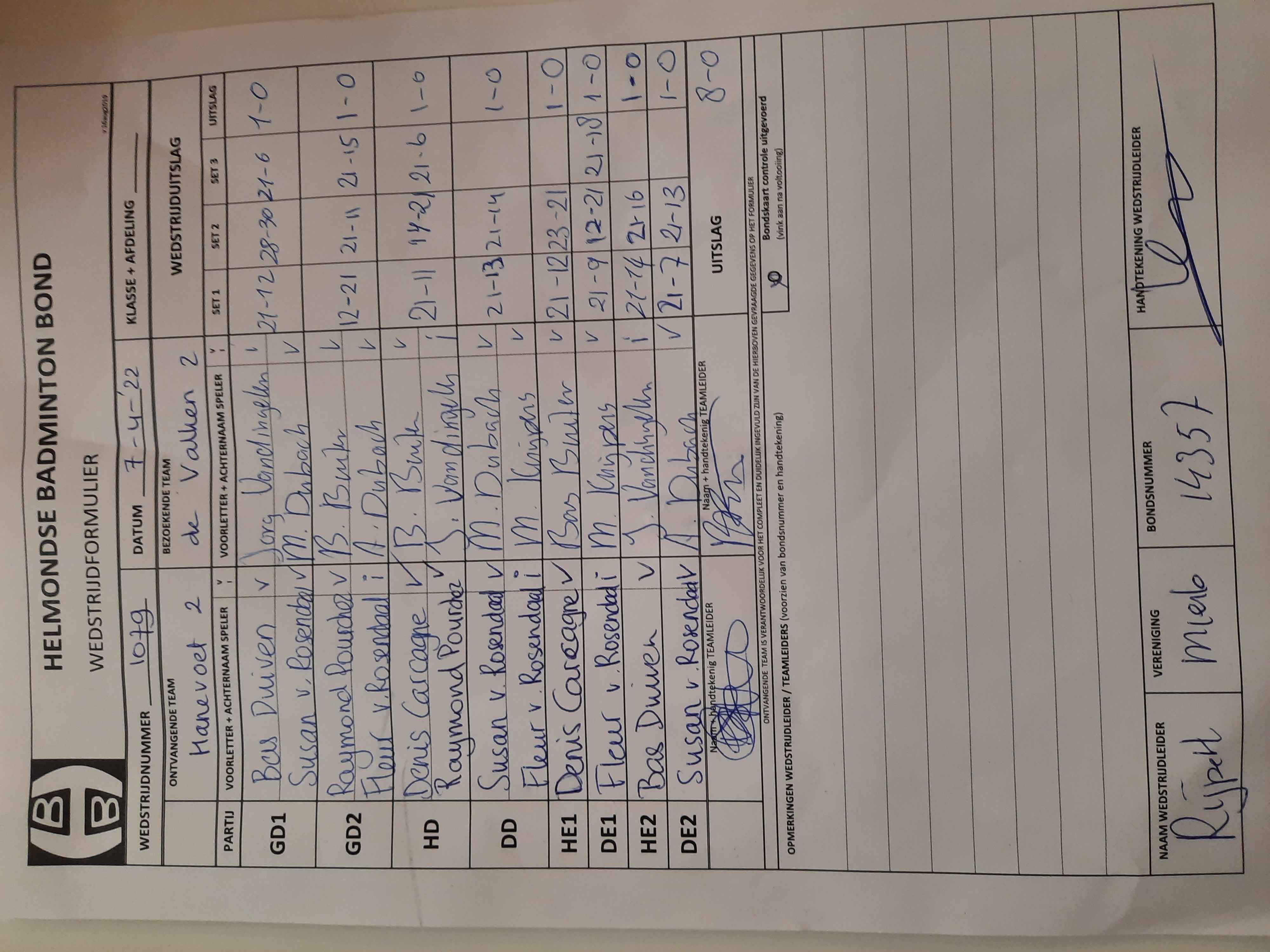 | 1079 | do. 07-04-2022 | Hanevoet 2 | - | De Valken 2 | 5 | 6 - 2 | |||