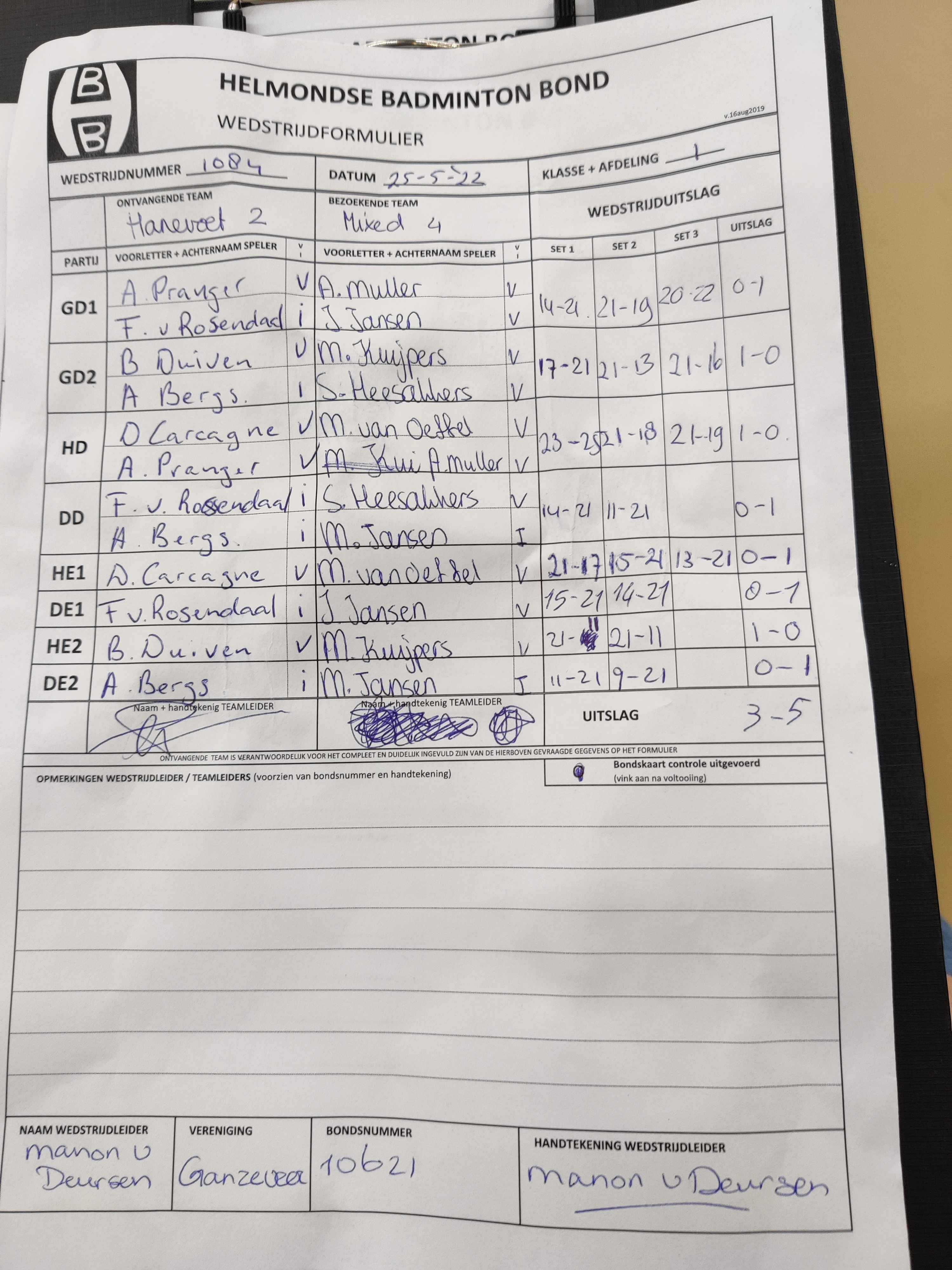 | 1084 | wo. 25-05-2022 | Hanevoet 2 | - | Mixed 4 | 12 | 3 - 5 | |||