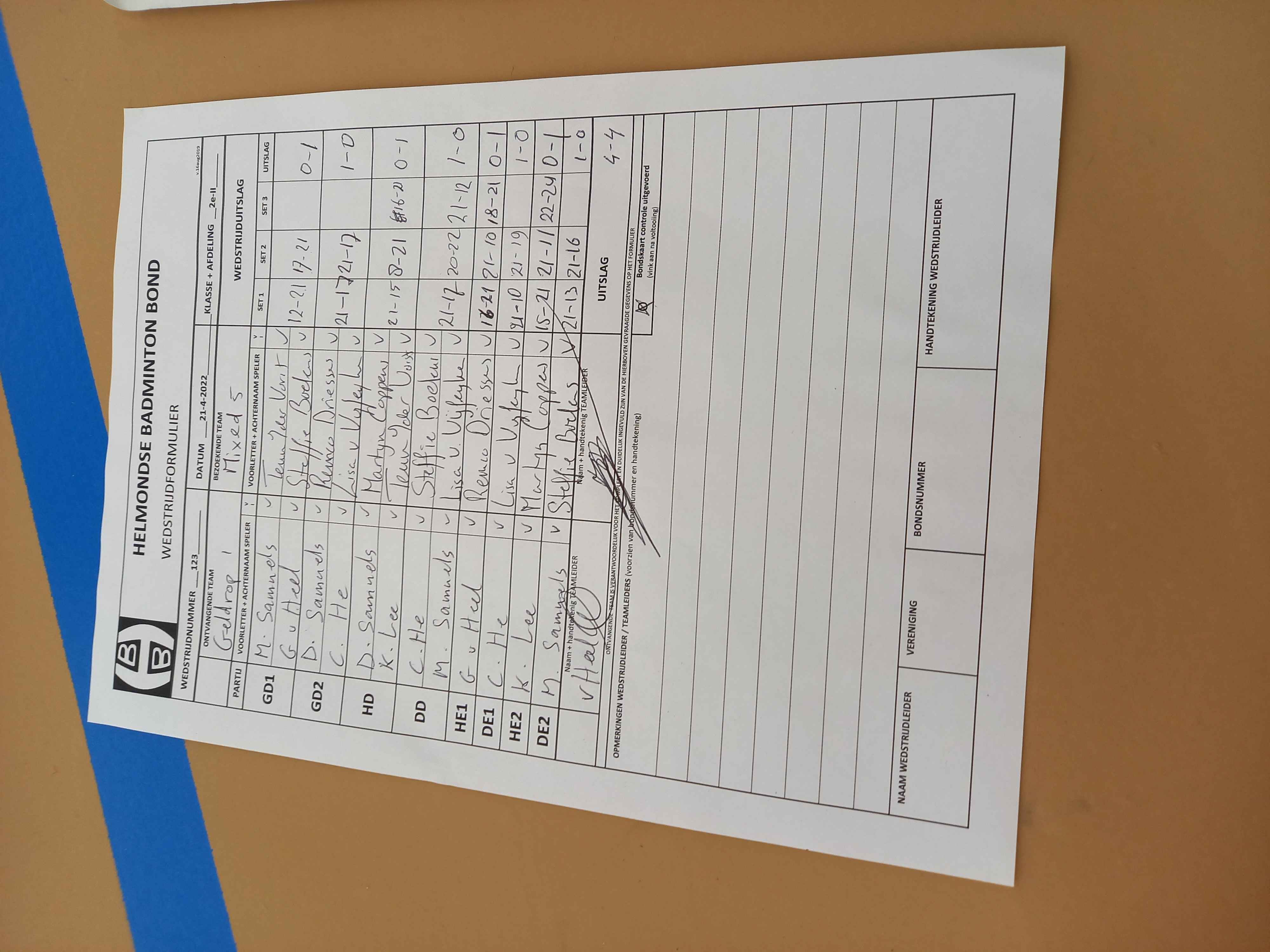 | 2015 | wo. 24-11-2021 | Mixed 5 | - | Geldrop 1 | 4 | 4 - 3 | |||