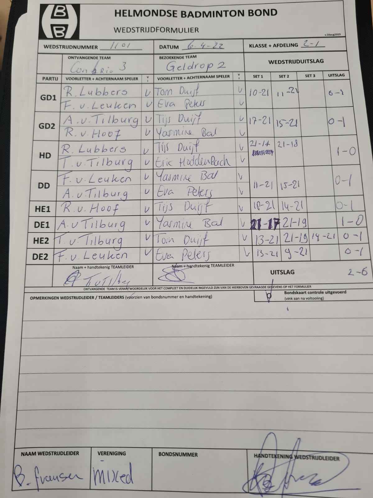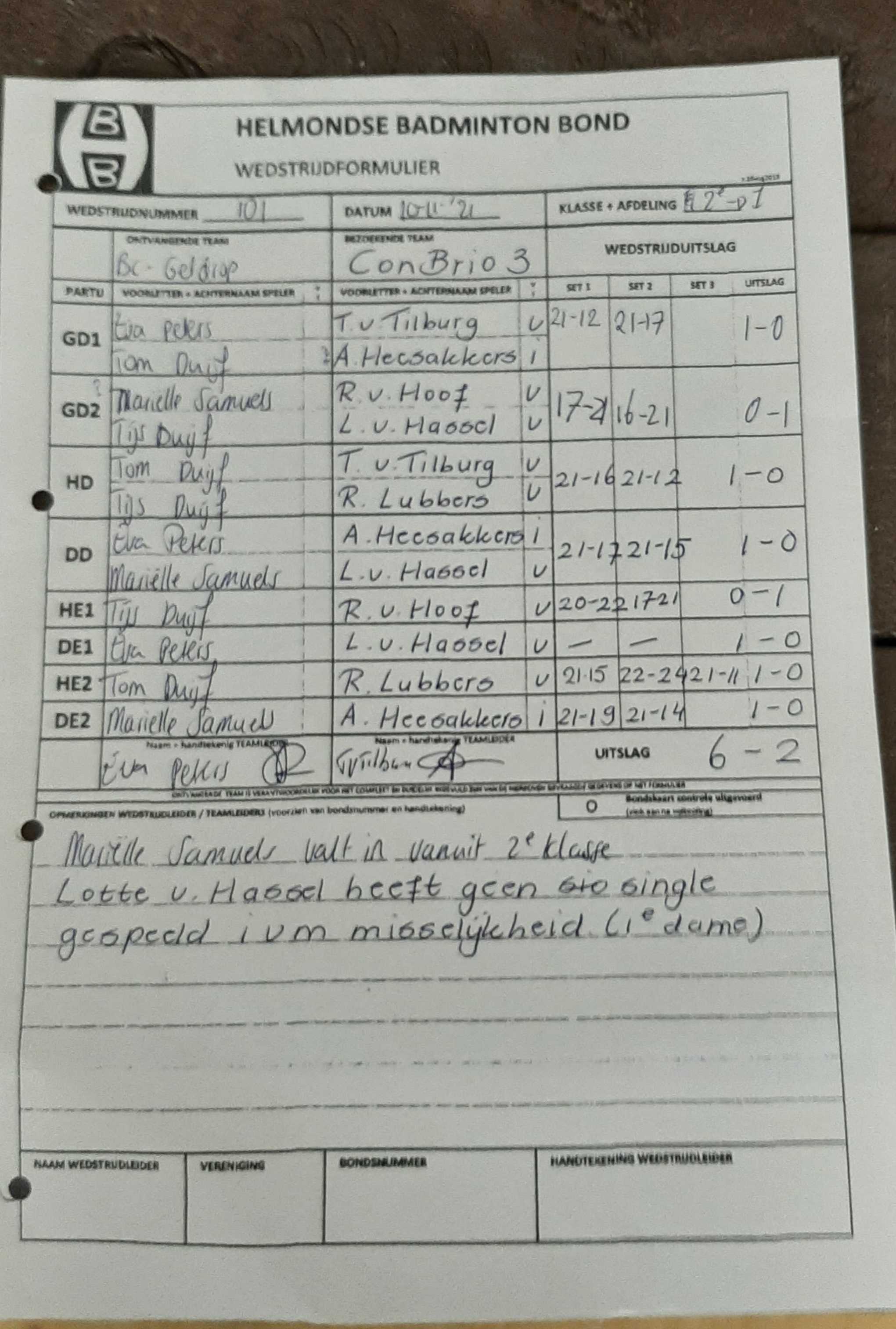 | 101 | wo. 10-11-2021 | Geldrop 2 | - | Con Brio 3 | 3 | 6 - 2 | |||