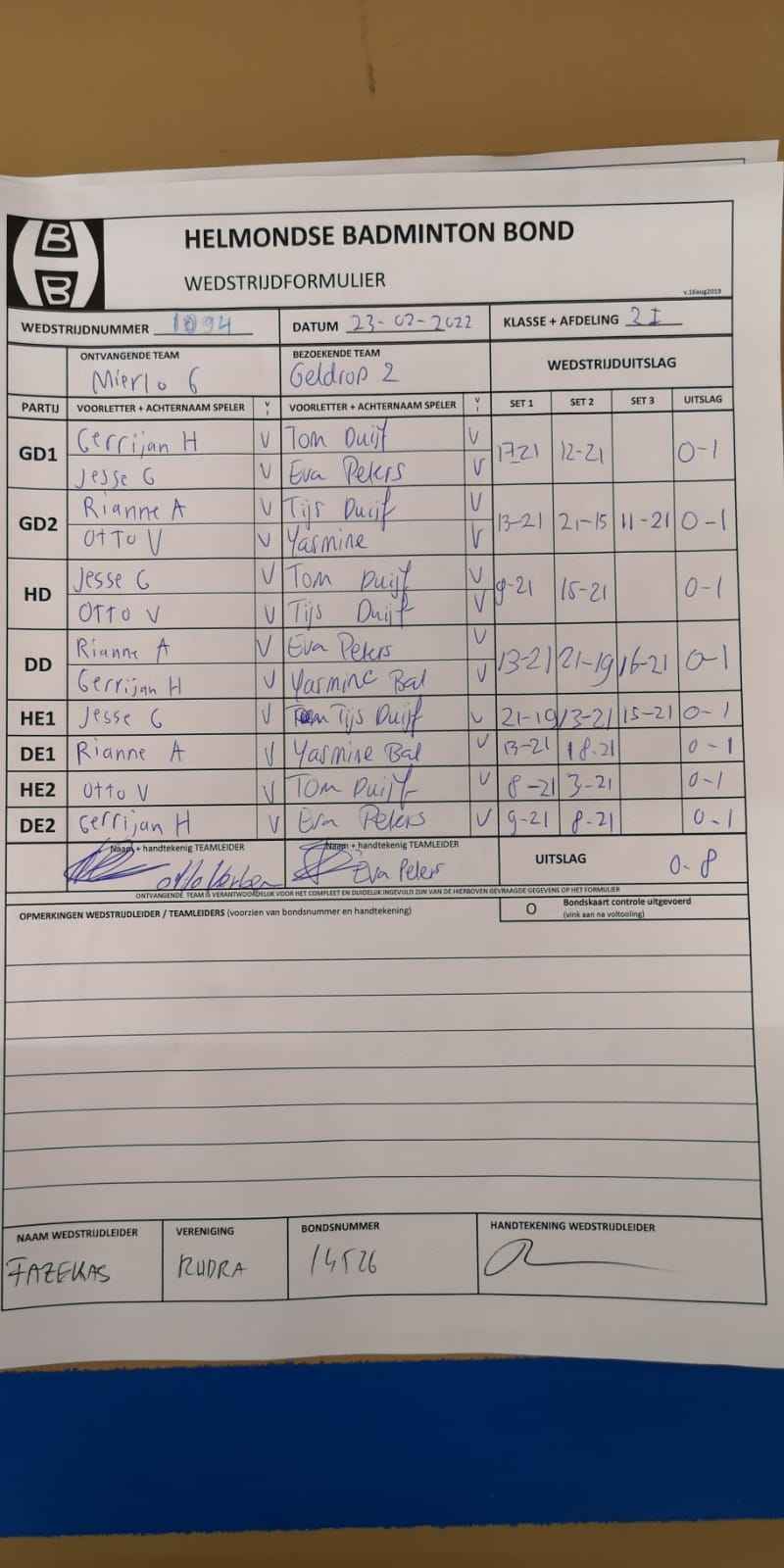 | 1094 | wo. 23-02-2022 | Mierlo 6 | - | Geldrop 2 | 2 | 0 - 8 | |||