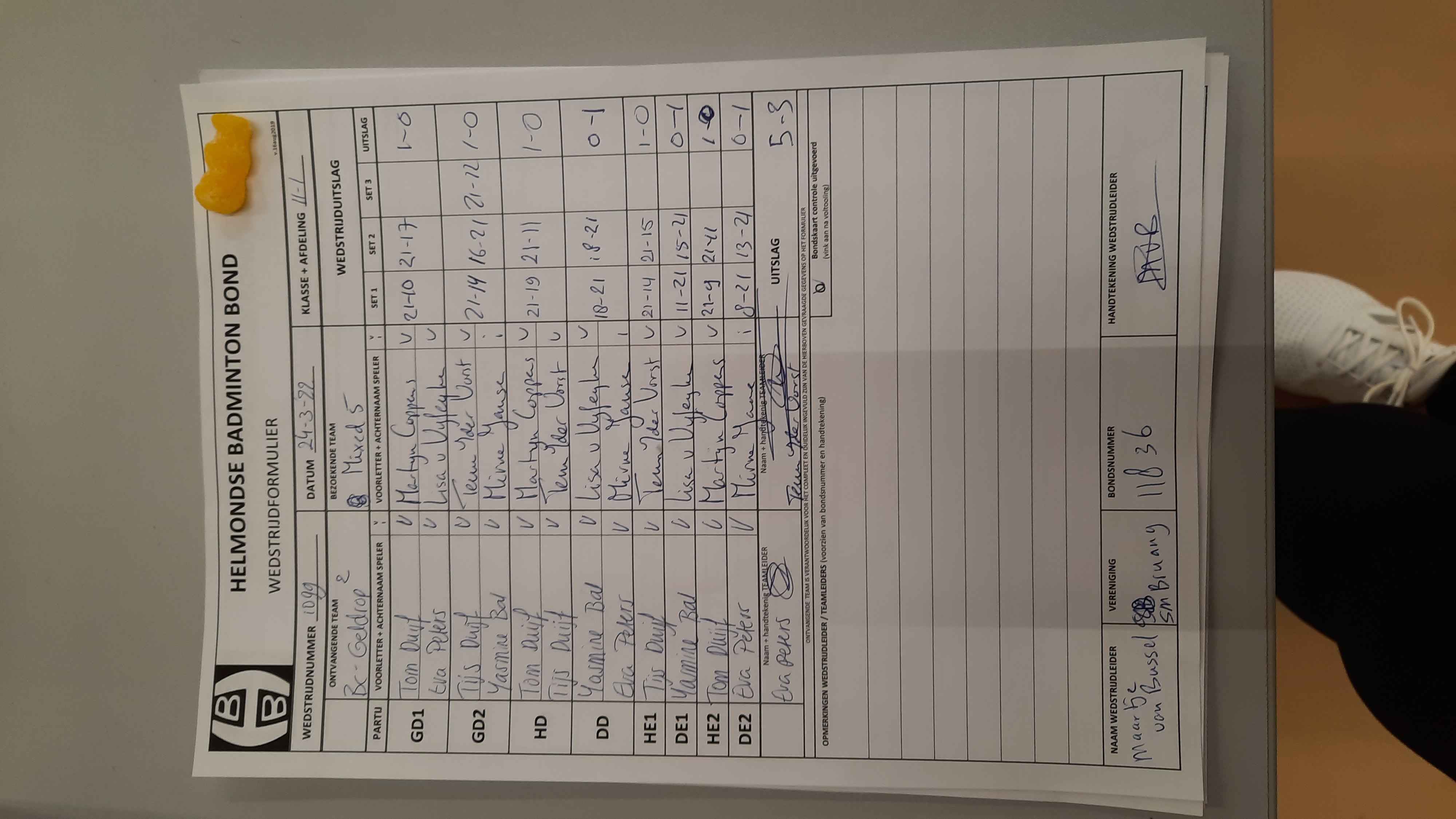 | 1099 | wo. 23-03-2022 | Geldrop 2 | - | Mixed 5 | 3 | 5 - 3 | |||