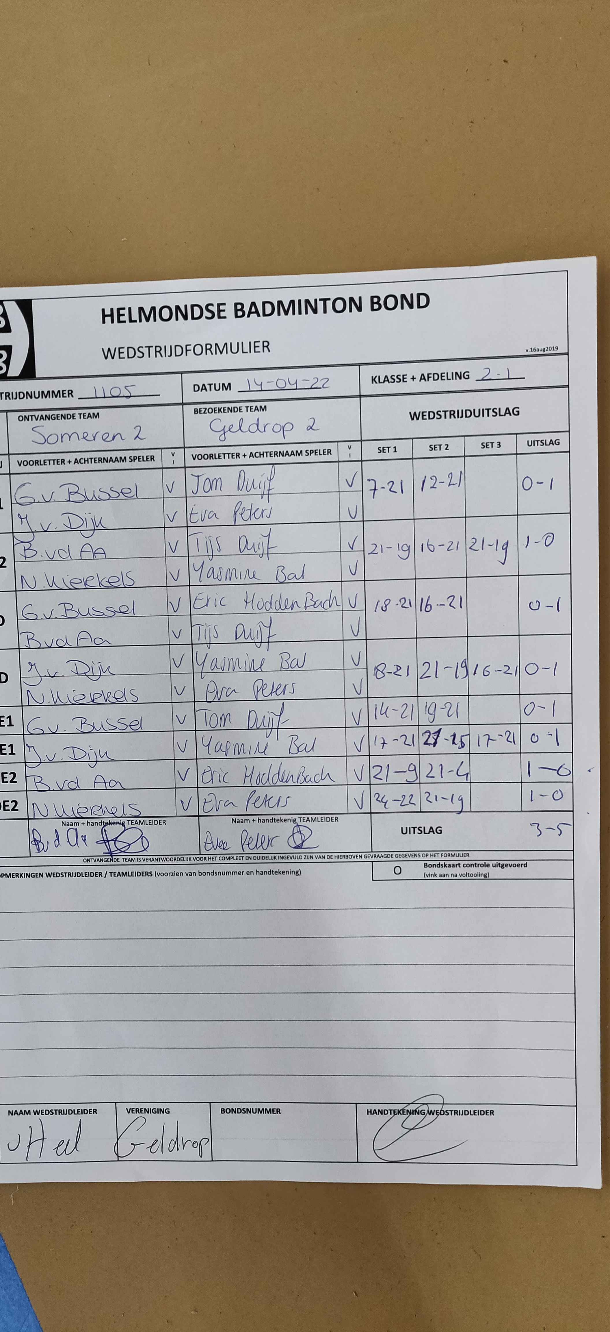 | 1105 | do. 14-04-2022 | Someren 2 | - | Geldrop 2 | 14 | 3 - 5 | |||