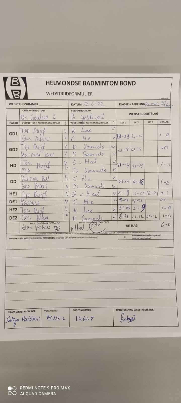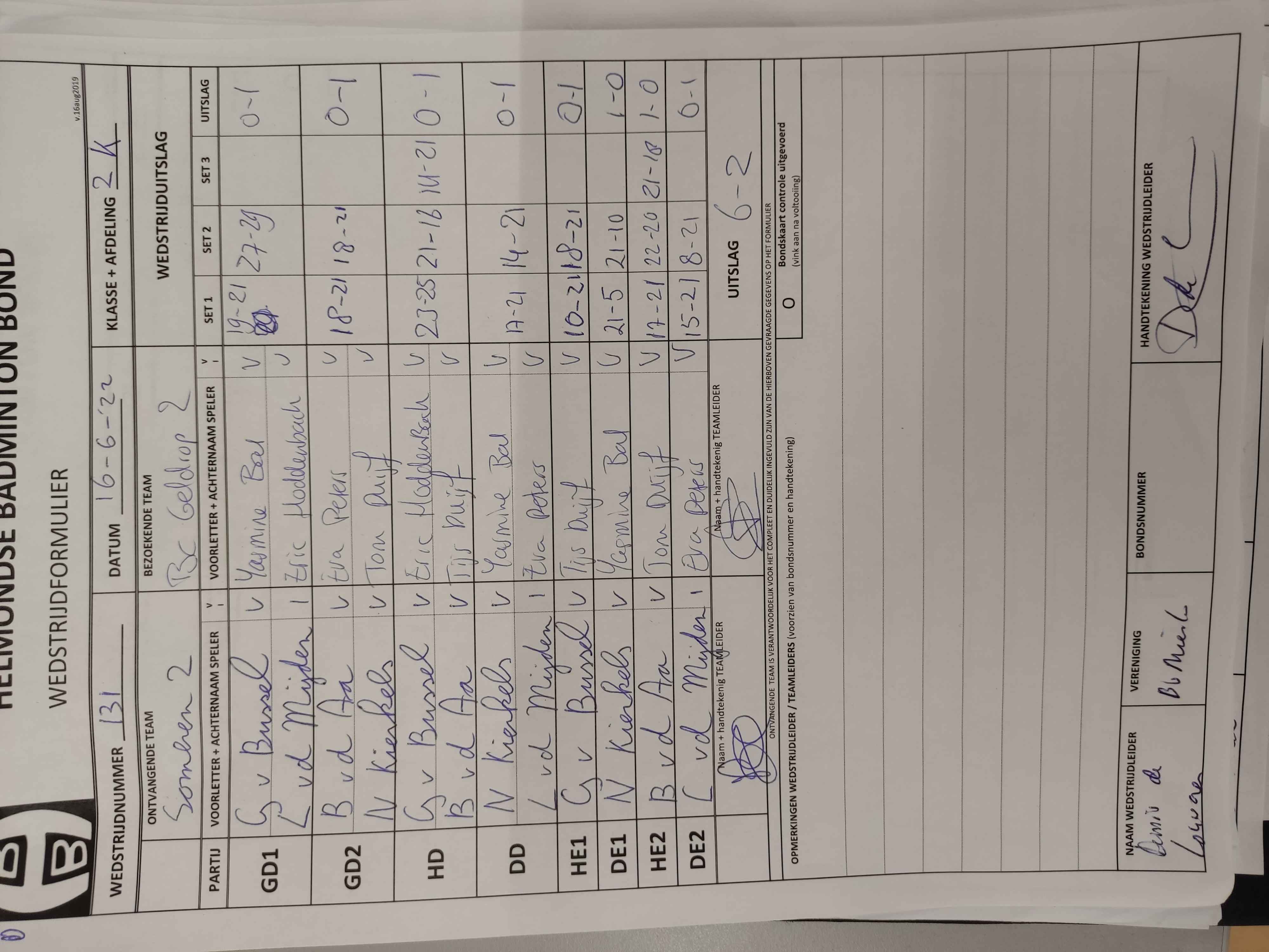 | 134 | wo. 22-06-2022 | Geldrop 2 | - | Geldrop 1 | 5 | 6 - 2 | |||