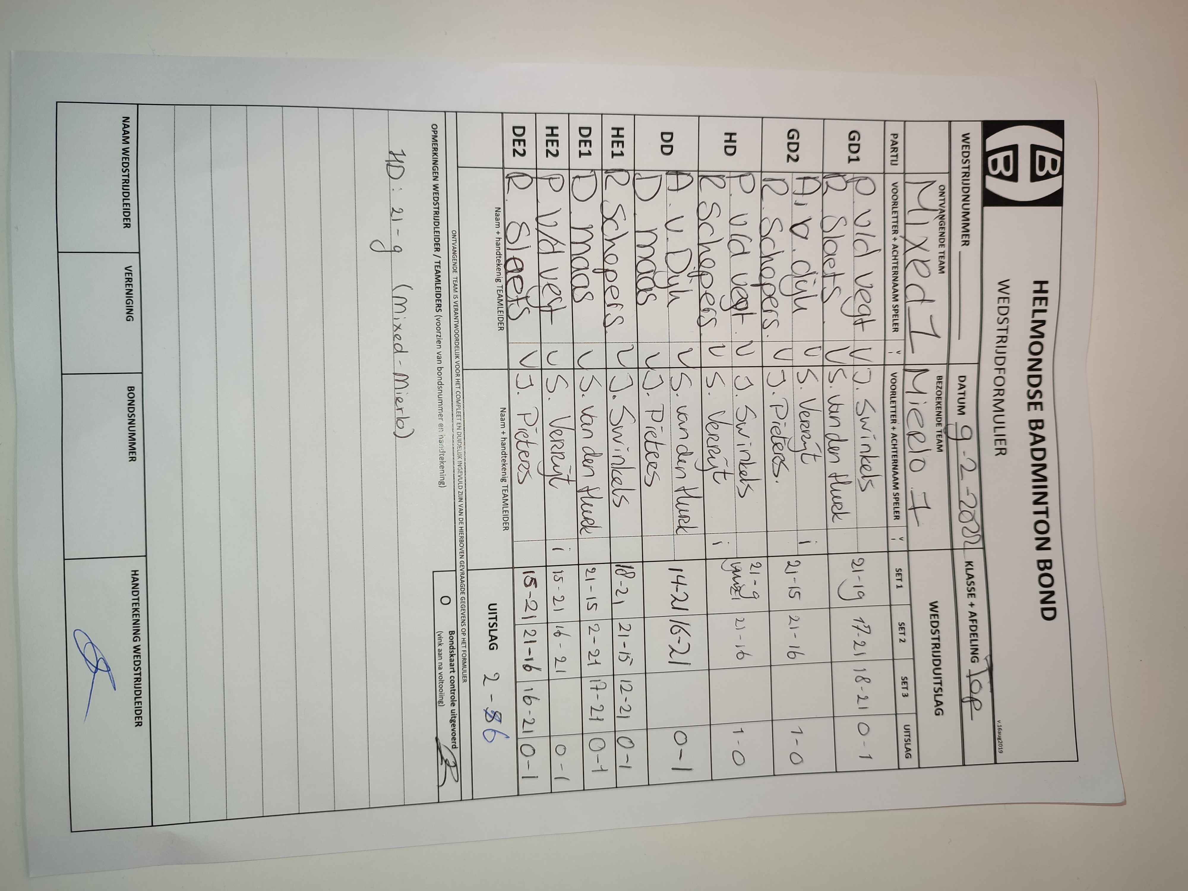 | 14 | wo. 09-02-2022 | Mixed 1 | - | Mierlo 1 | 2 | 2 - 6 | |||