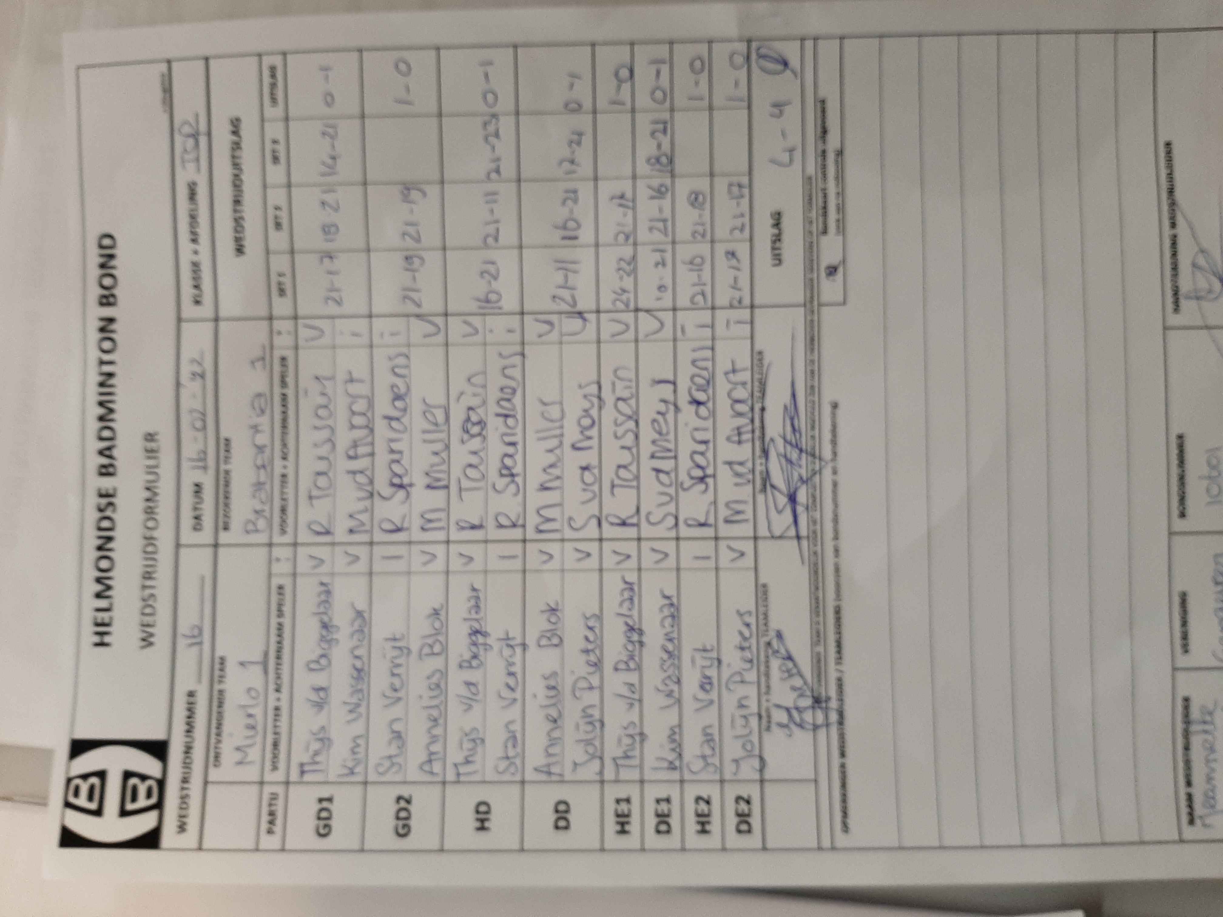 | 16 | wo. 16-02-2022 | Mierlo 1 | - | Brabantia 1 | 5 | 4 - 4 | |||