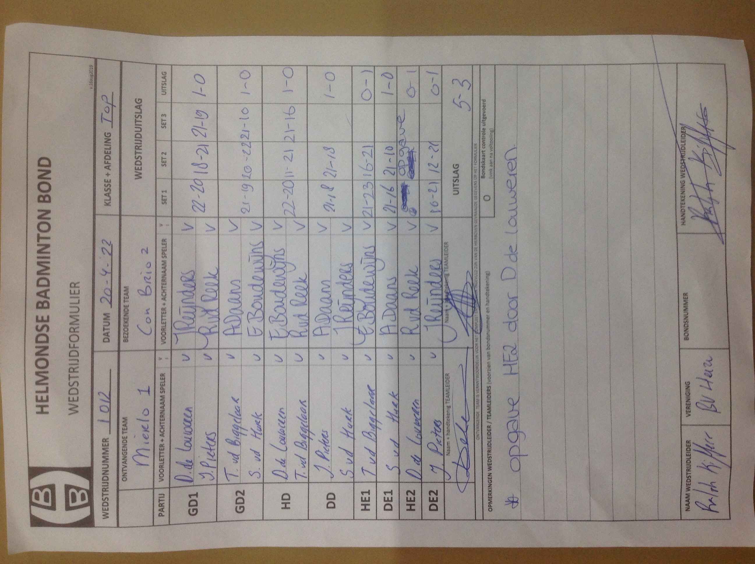 | 1012 | wo. 20-04-2022 | Mierlo 1 | - | Con Brio 2 | 4 | 5 - 3 | |||