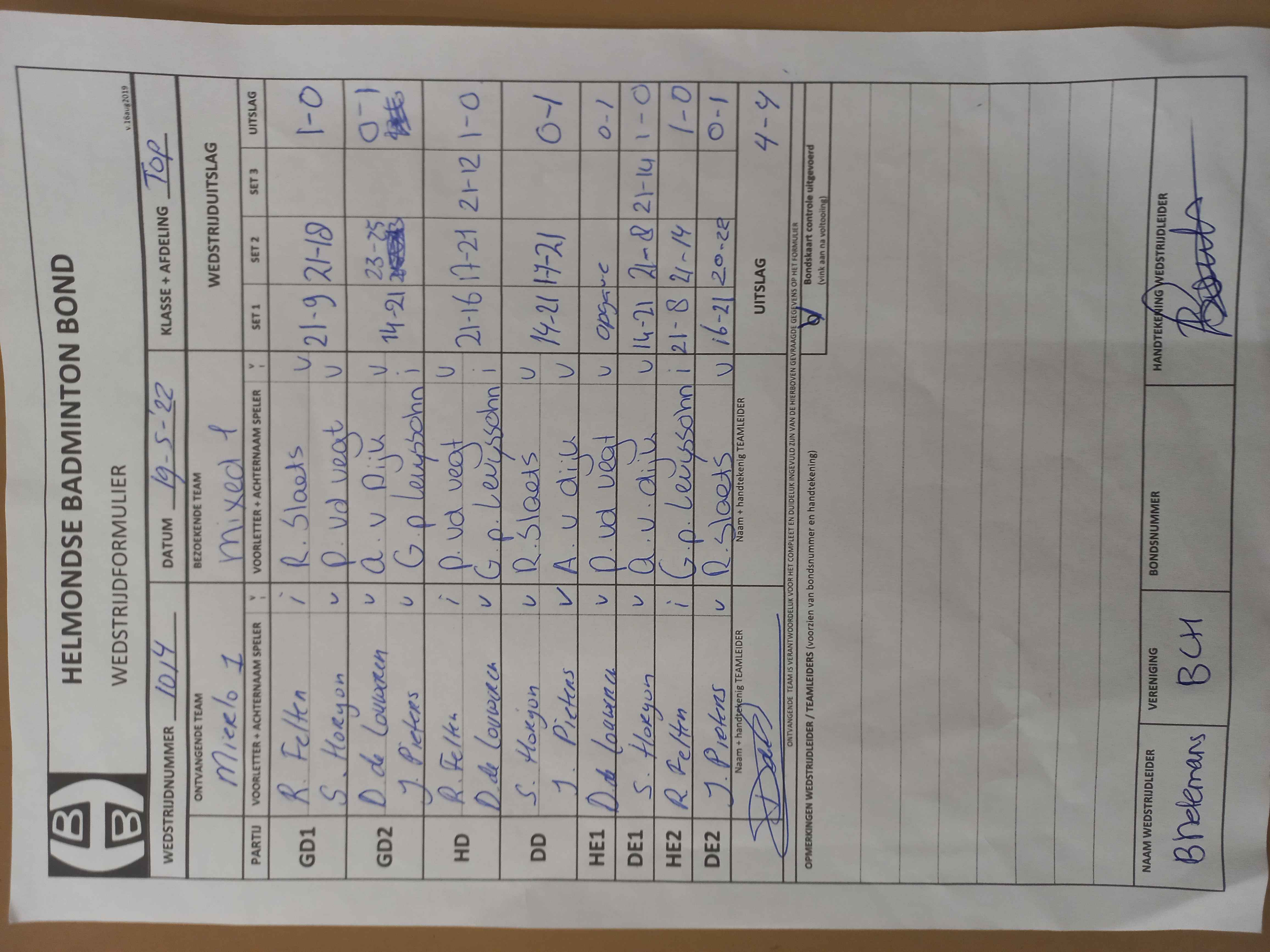 | 1014 | do. 19-05-2022 | Mierlo 1 | - | Mixed 1 | 14 | 4 - 4 | |||