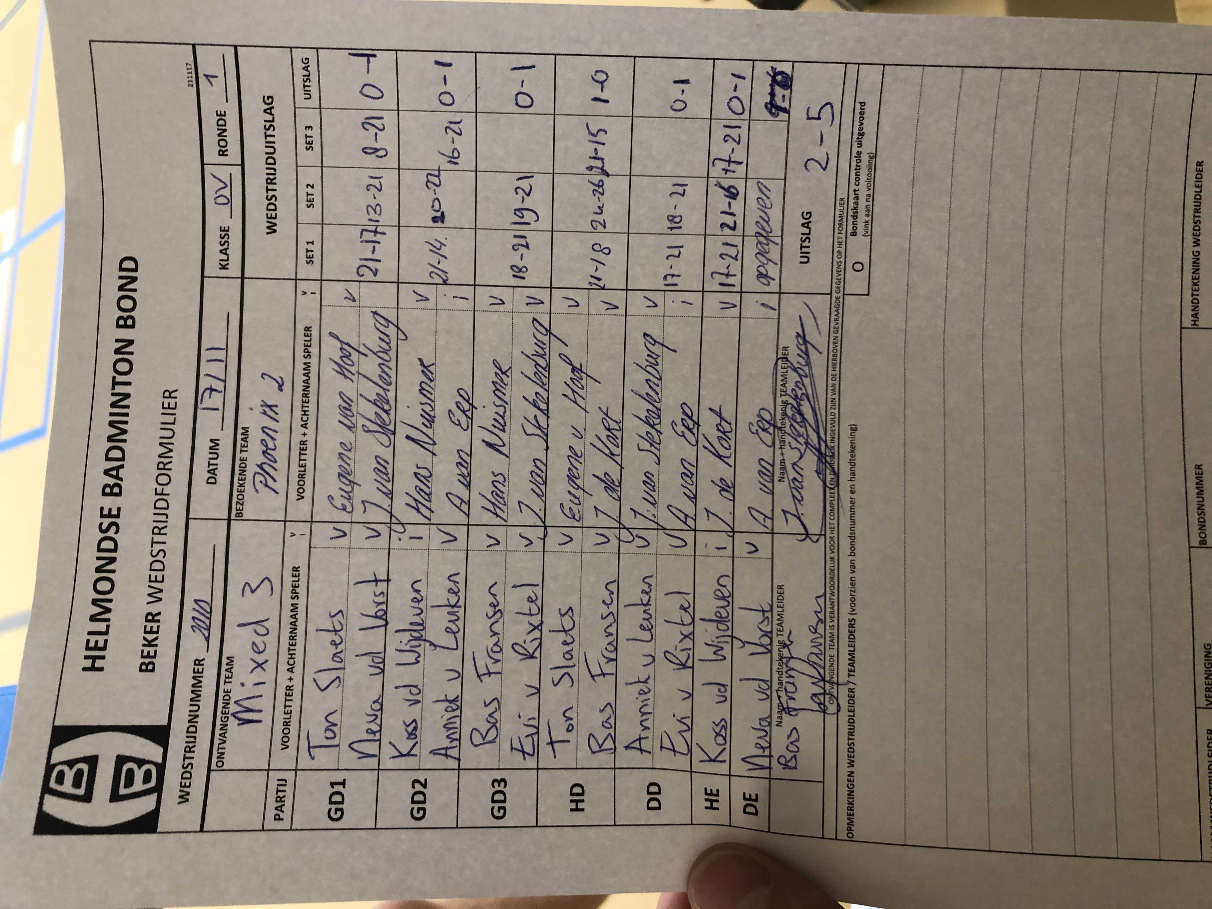 | 2010 | wo. 17-11-2021 | Mixed 3 | - | Phoenix 2 | 14 | 2 - 5 | |||