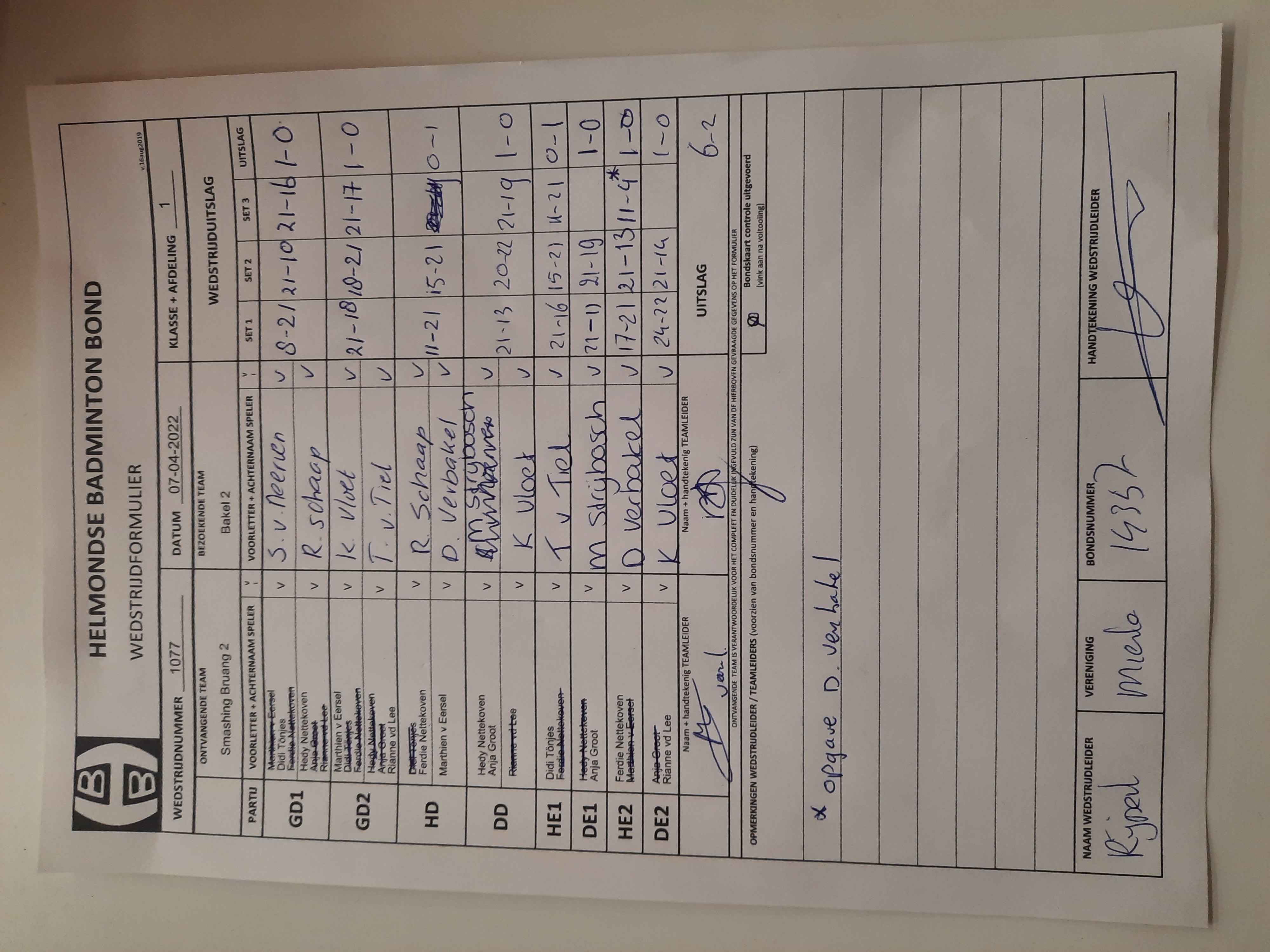 | 1077 | do. 07-04-2022 | Smashing Bruang 2 | - | Bakel 2 | 3 | 6 - 2 | |||