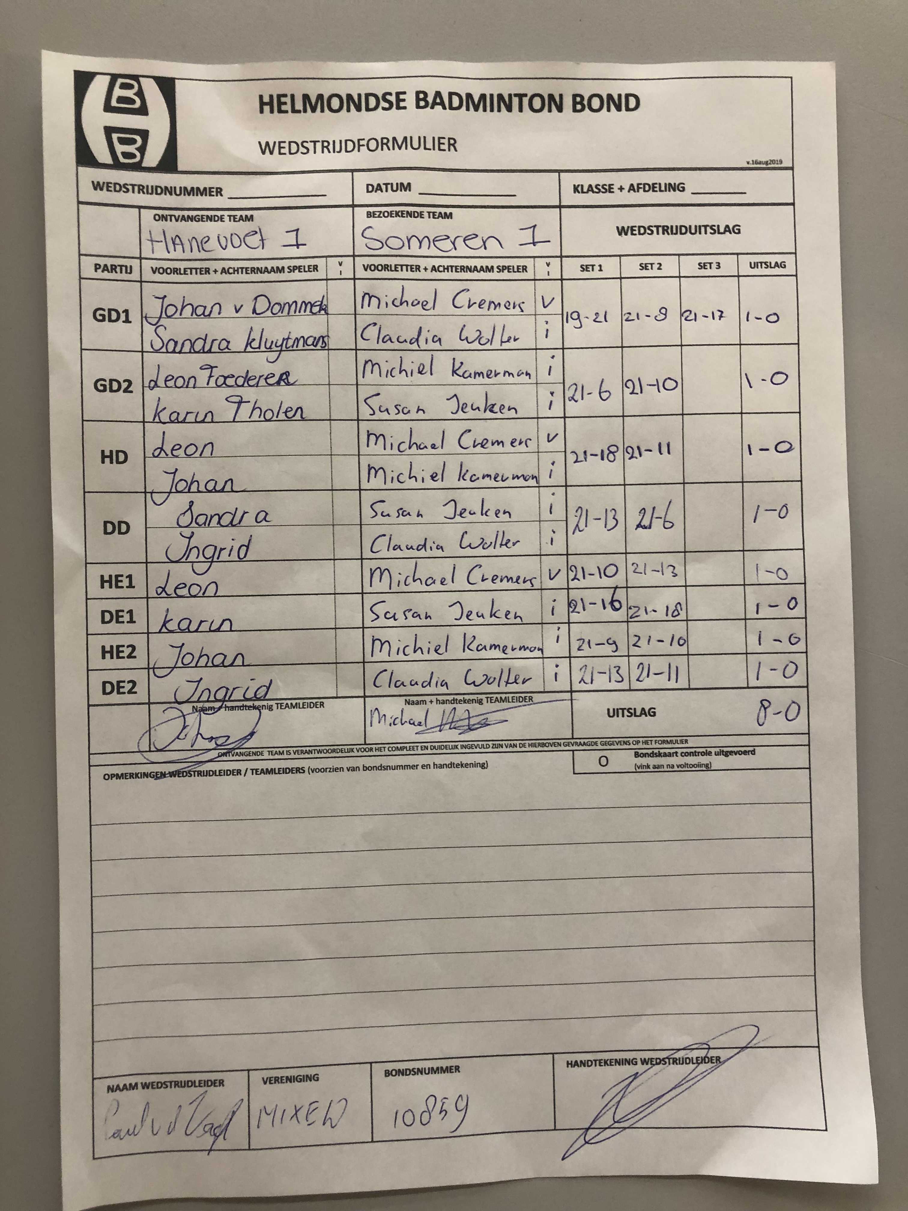 | 23 | do. 30-09-2021 | Hanevoet 1 | - | Someren 1 | 14 | 8 - 0 | |||