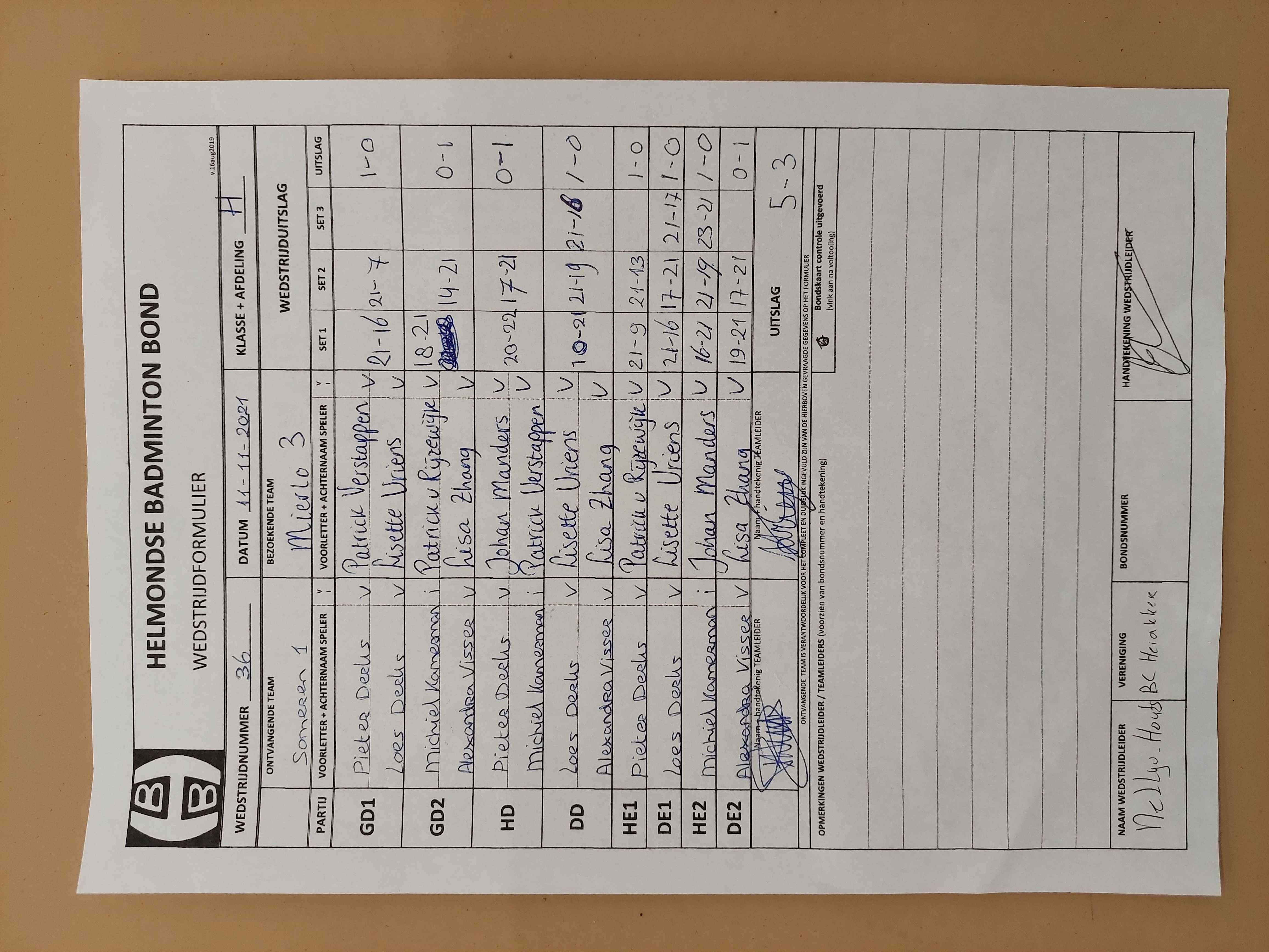 | 36 | do. 11-11-2021 | Someren 1 | - | Mierlo 3 | 12 | 5 - 3 | |||