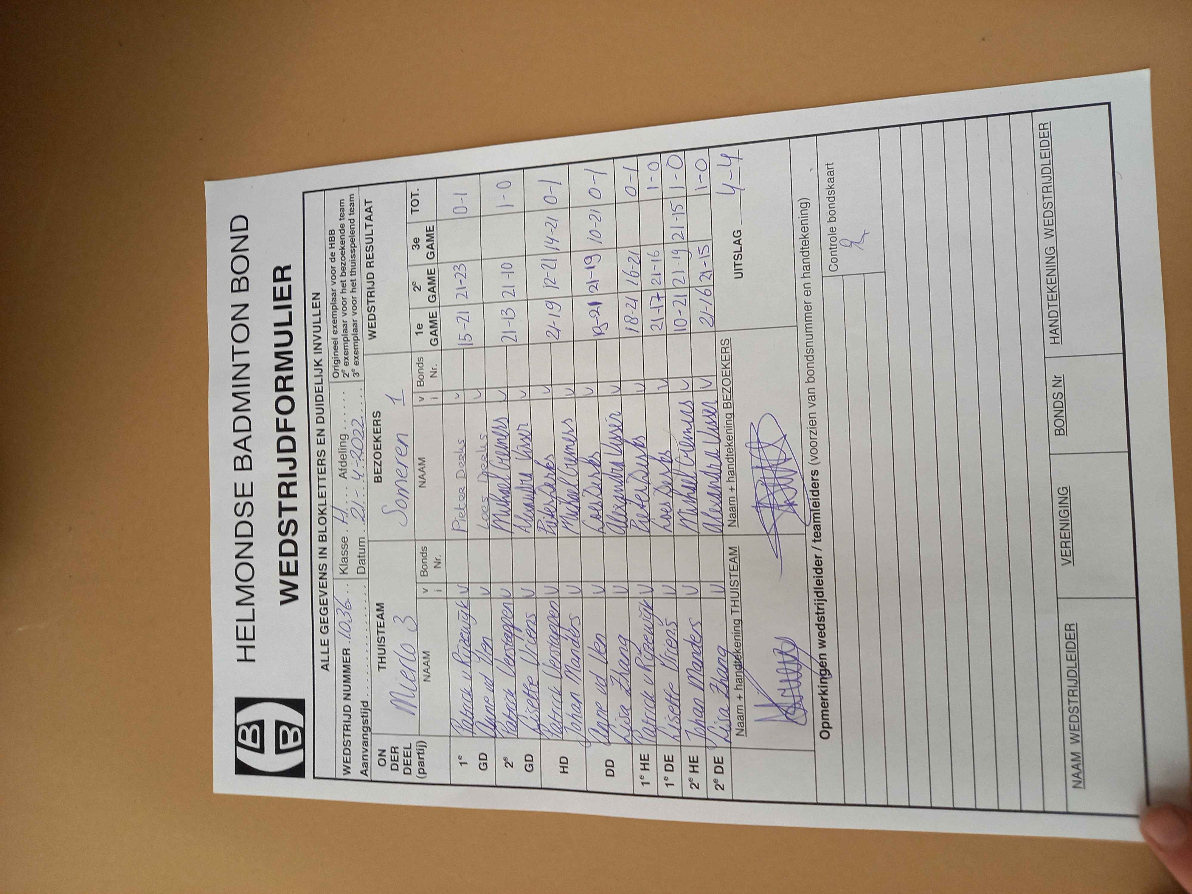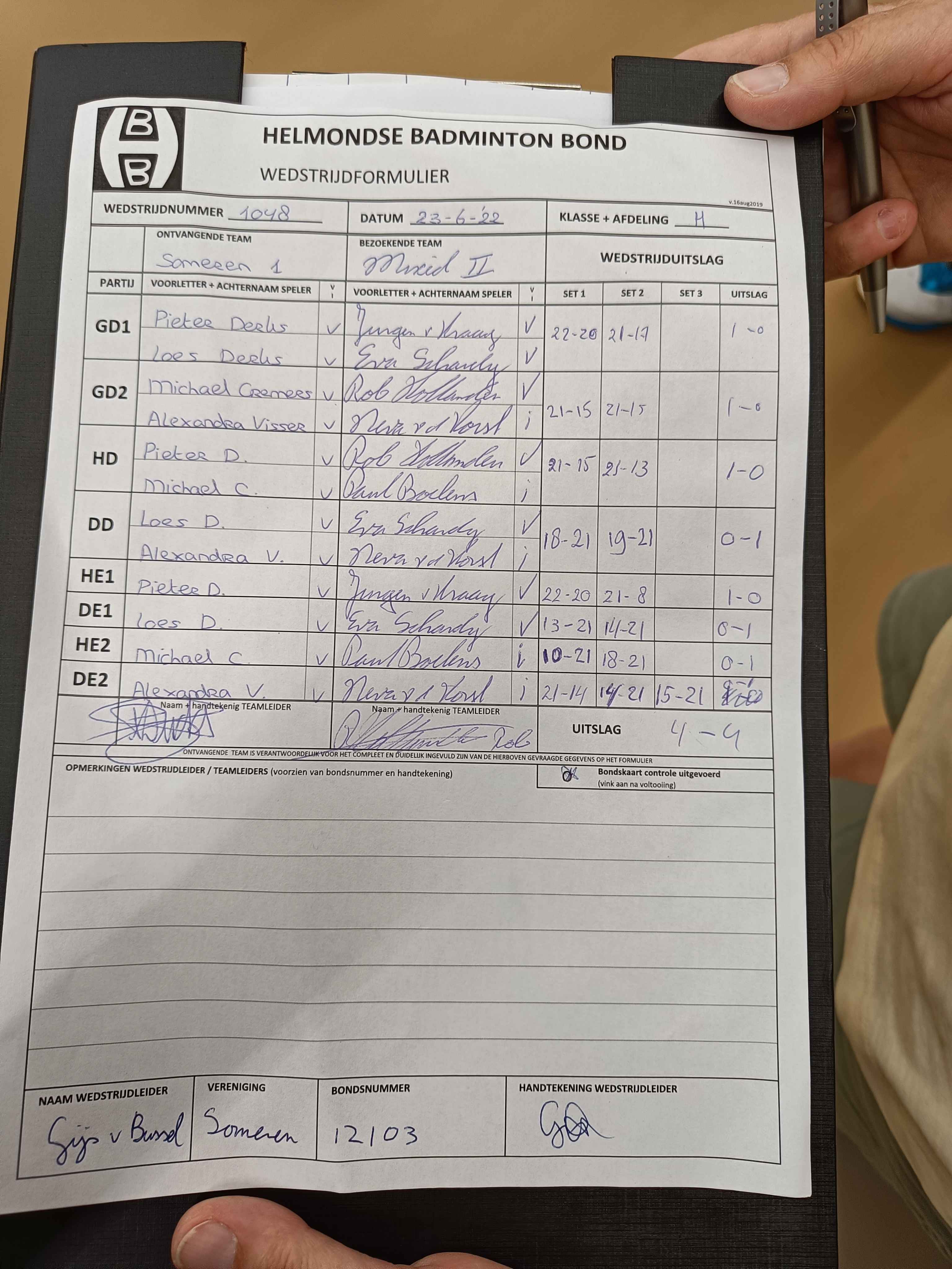 | 1048 | do. 23-06-2022 | Someren 1 | - | Mixed 2 | 15 | 4 - 4 |