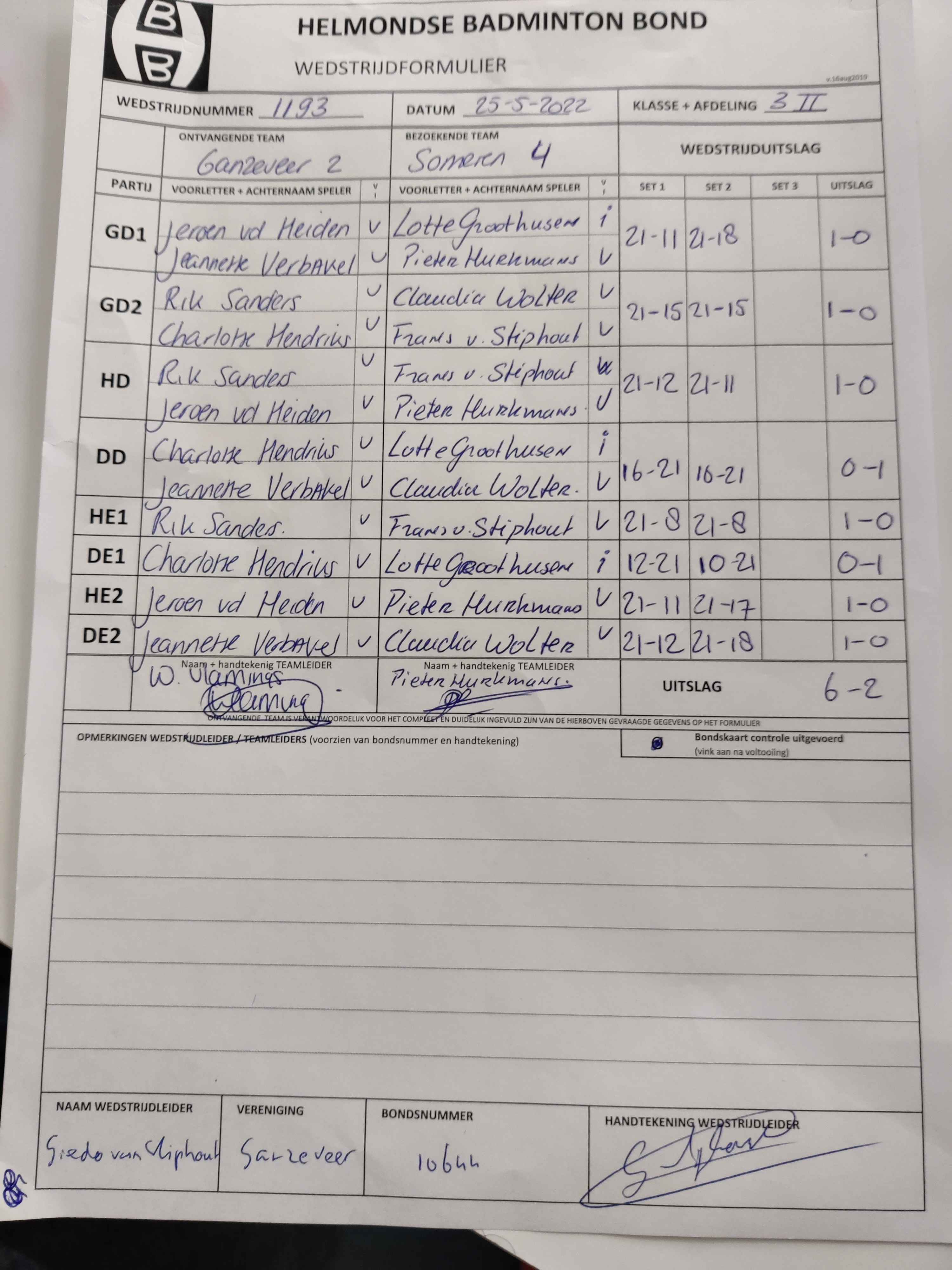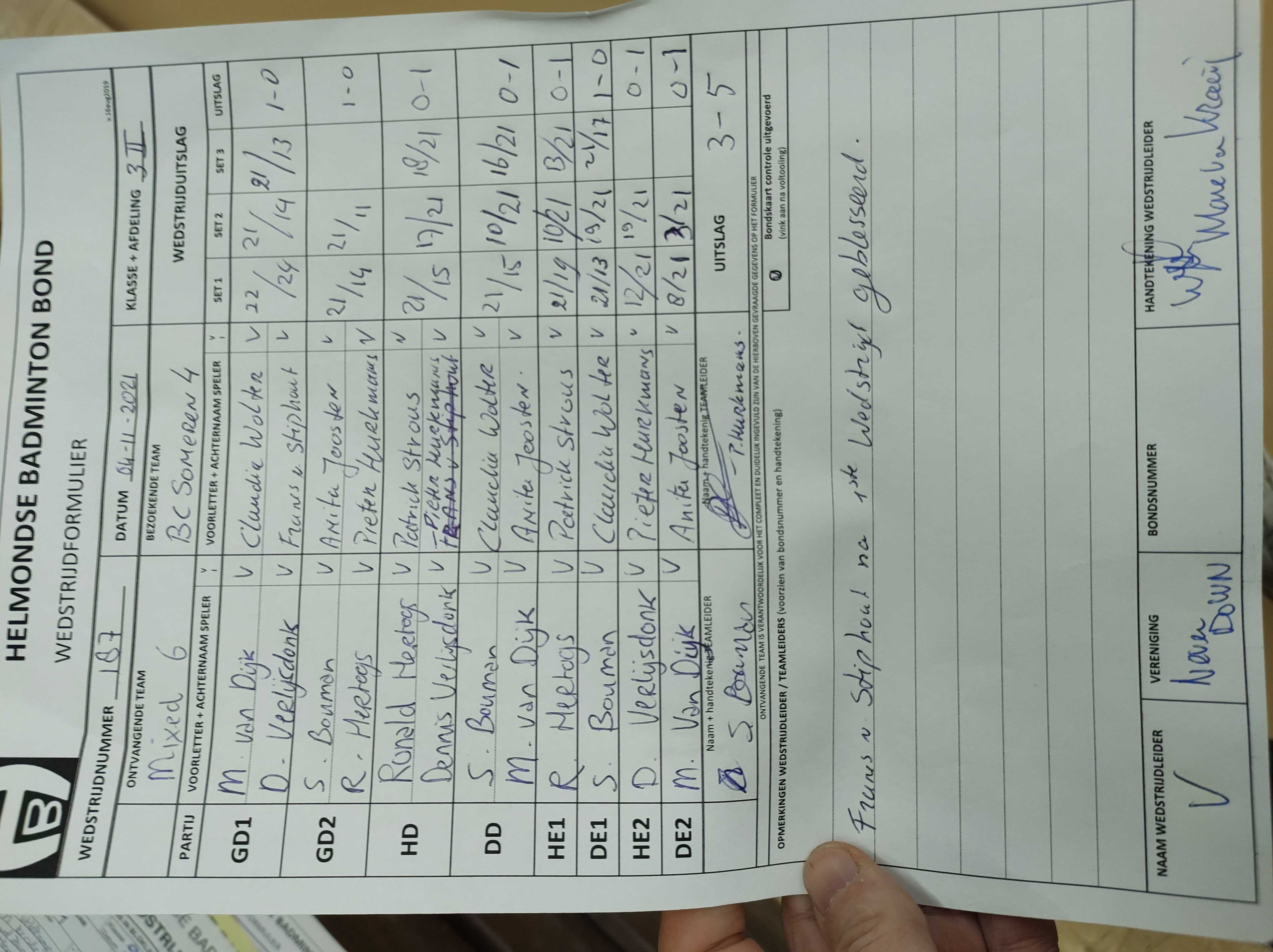 | 187 | do. 04-11-2021 | Mixed 6 | - | Someren 4 | 5 | 3 - 5 | |||