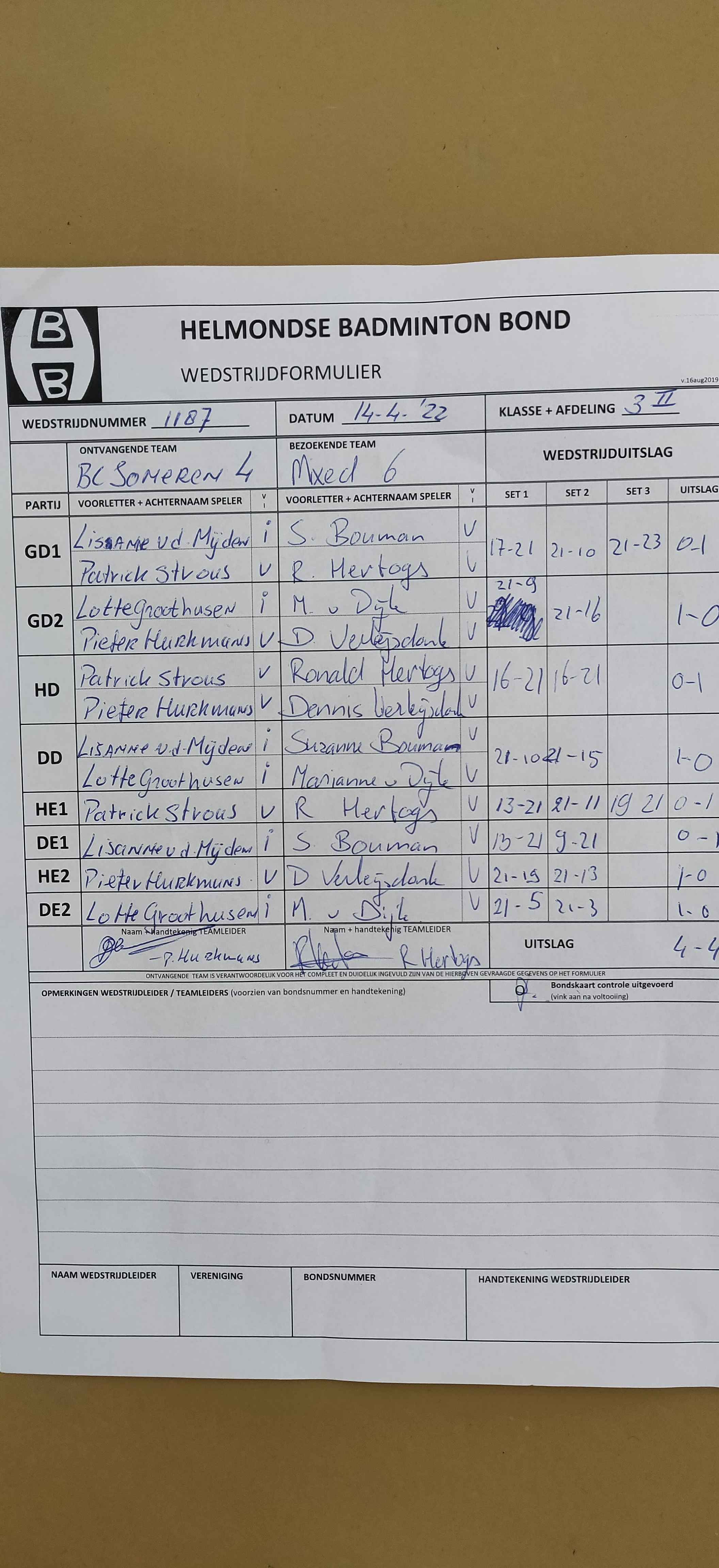 | 1187 | do. 14-04-2022 | Someren 4 | - | Mixed 6 | 2 | 4 - 4 | |||