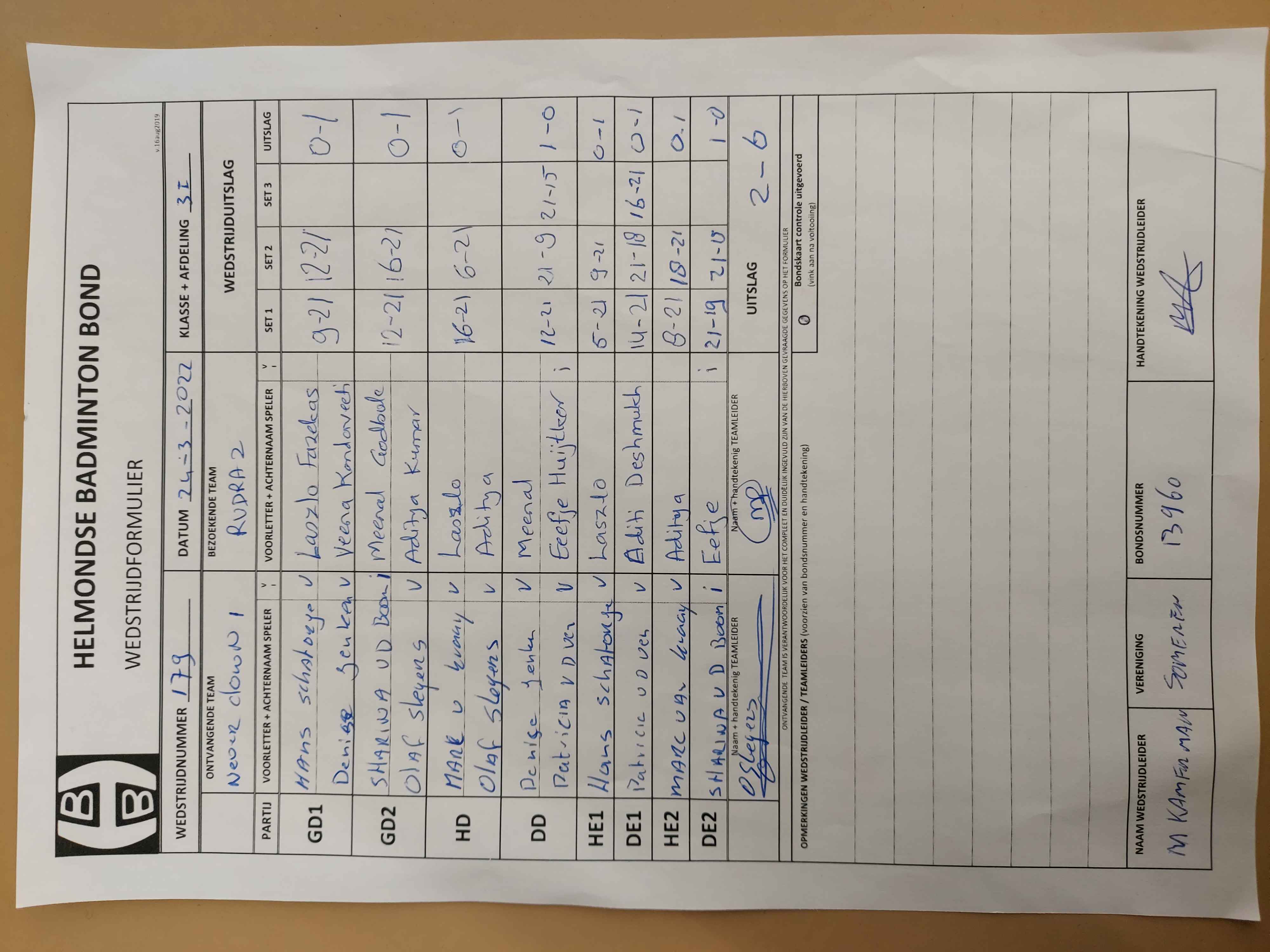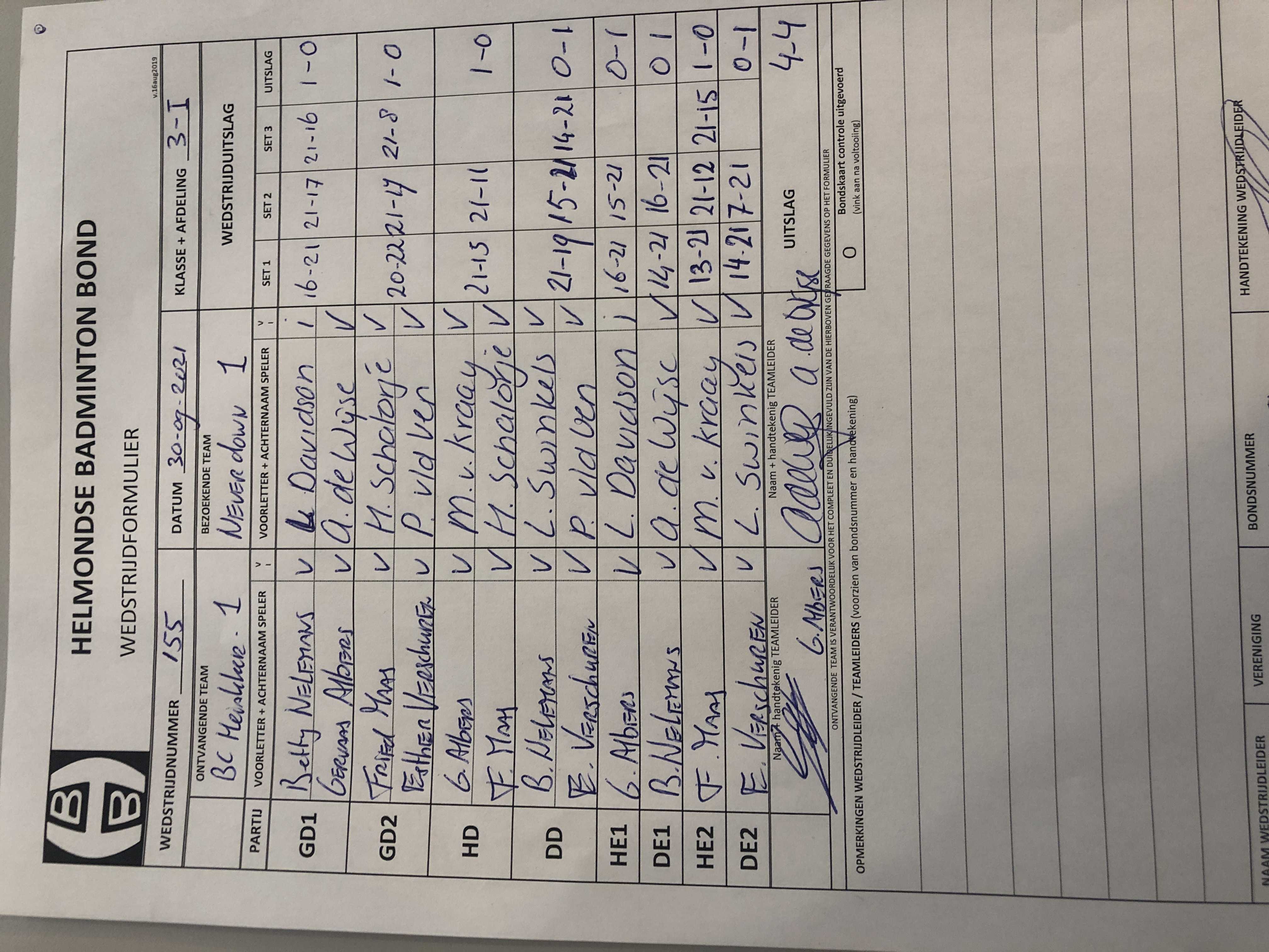| 158 | wo. 13-10-2021 | Gemert 2 | - | Never Down 1 | 2 | 4 - 4 | |||