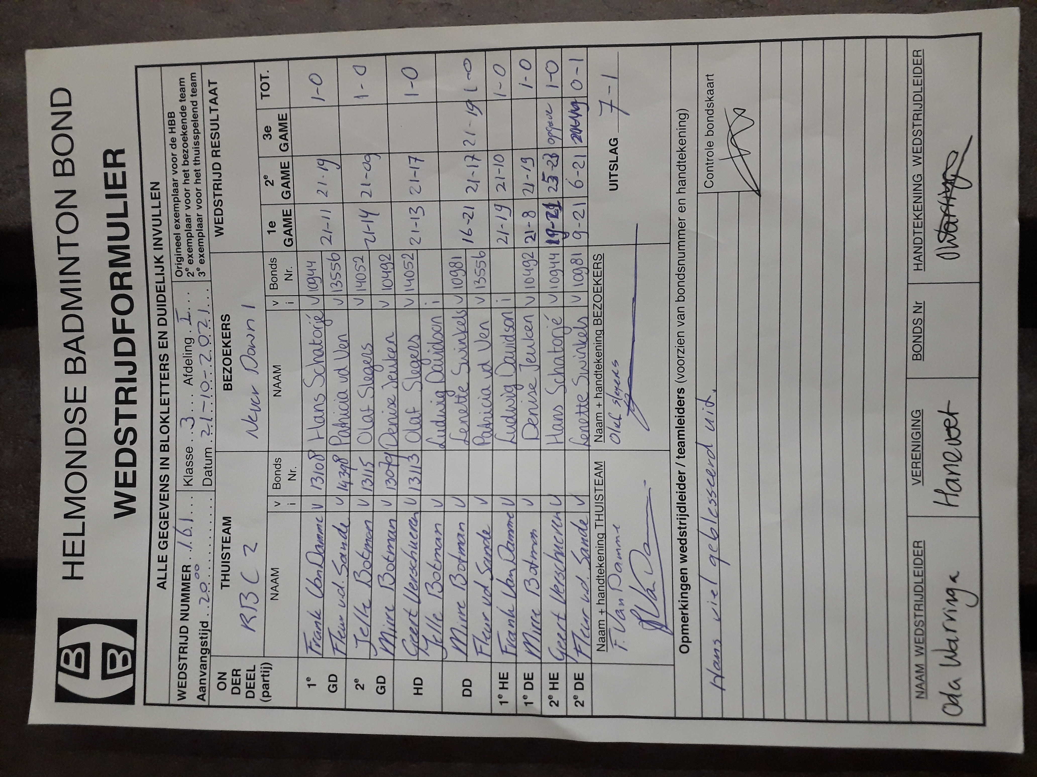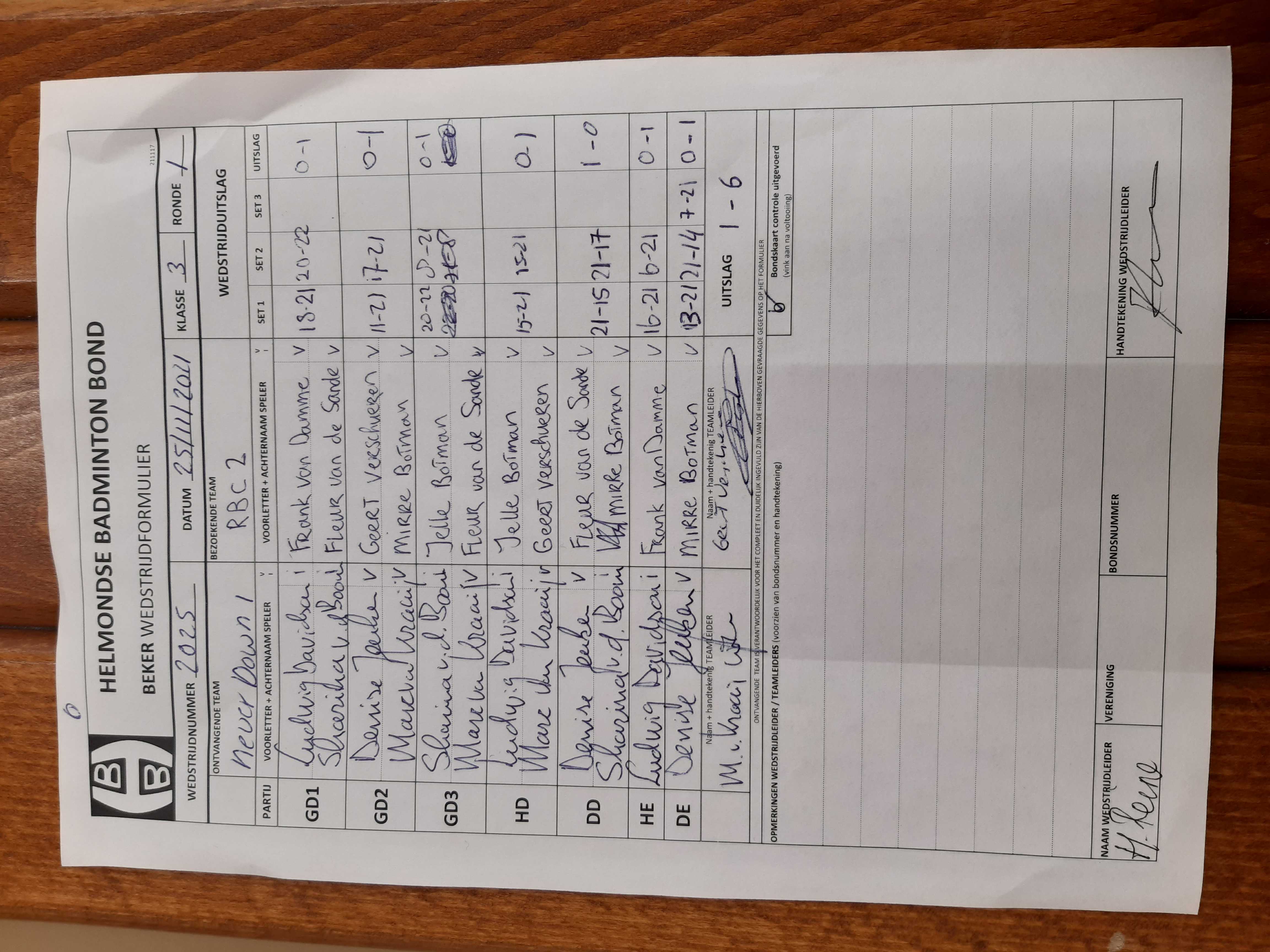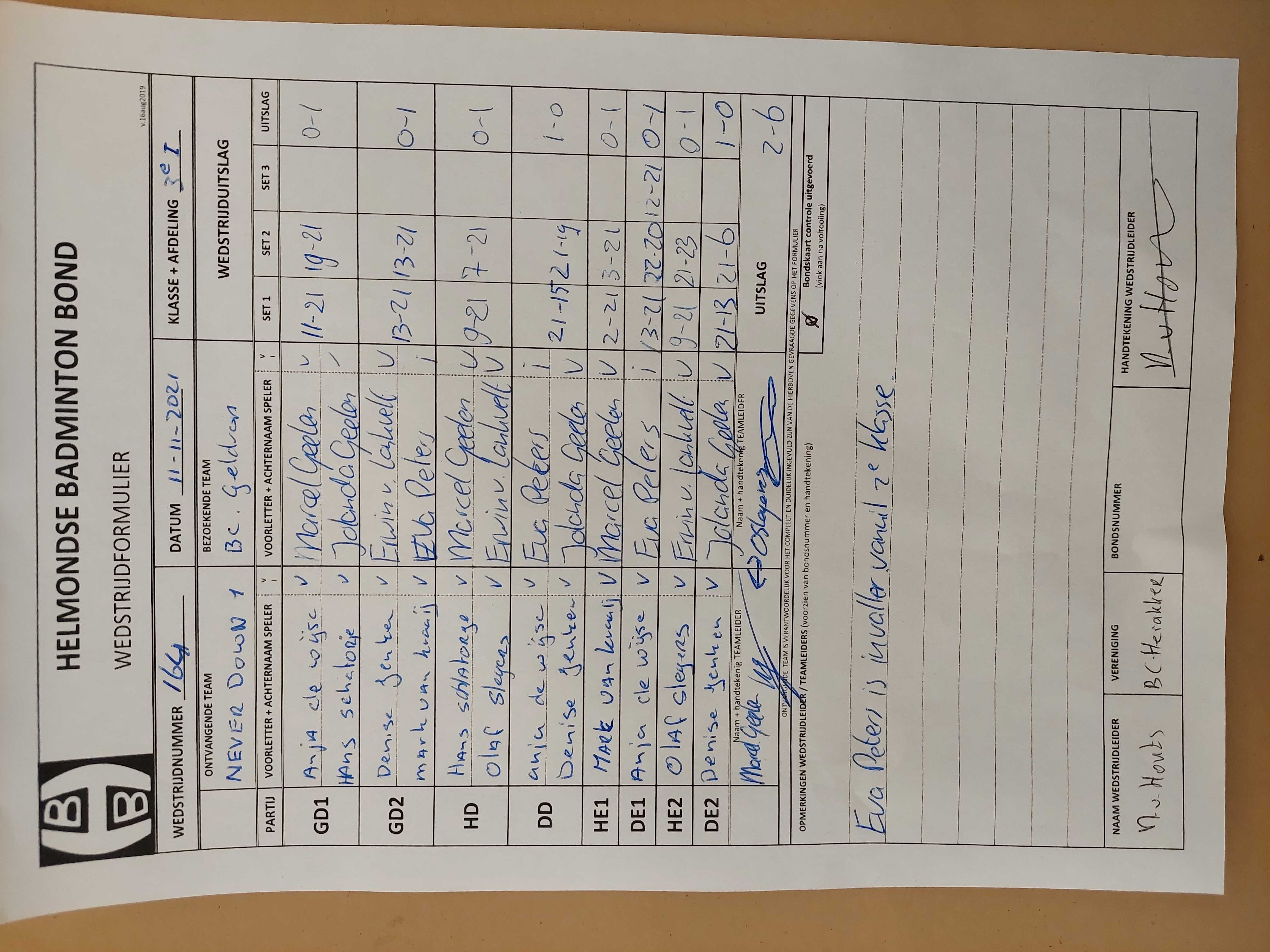 | 164 | do. 11-11-2021 | Never Down 1 | - | Geldrop 3 | 3 | 2 - 6 | |||