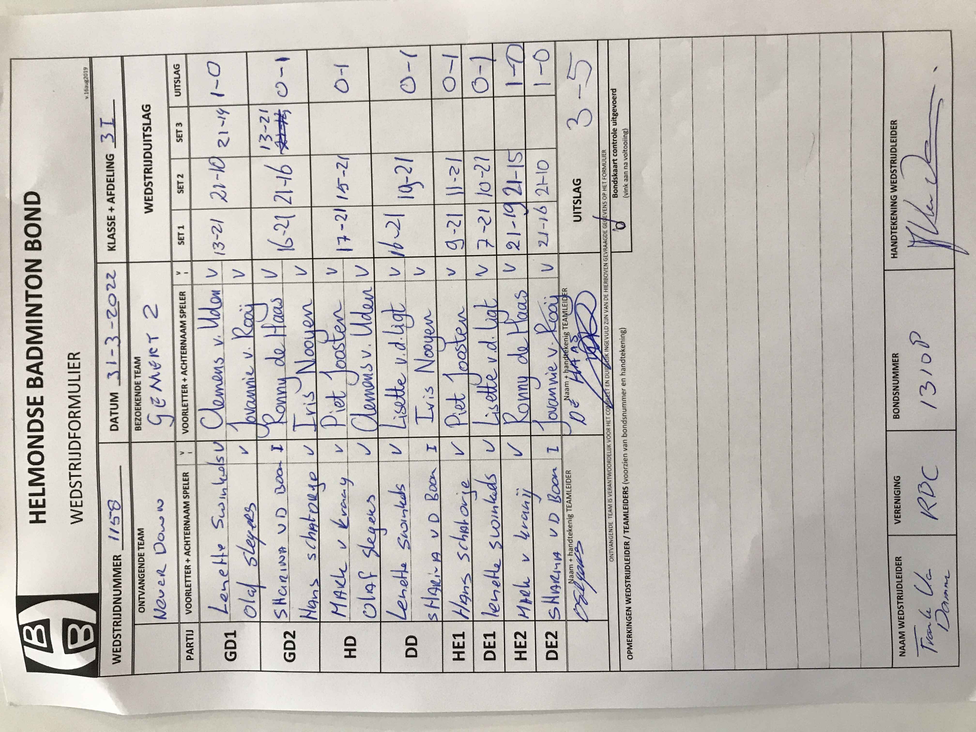 | 1158 | do. 31-03-2022 | Never Down 1 | - | Gemert 2 | 1 | 3 - 5 | |||