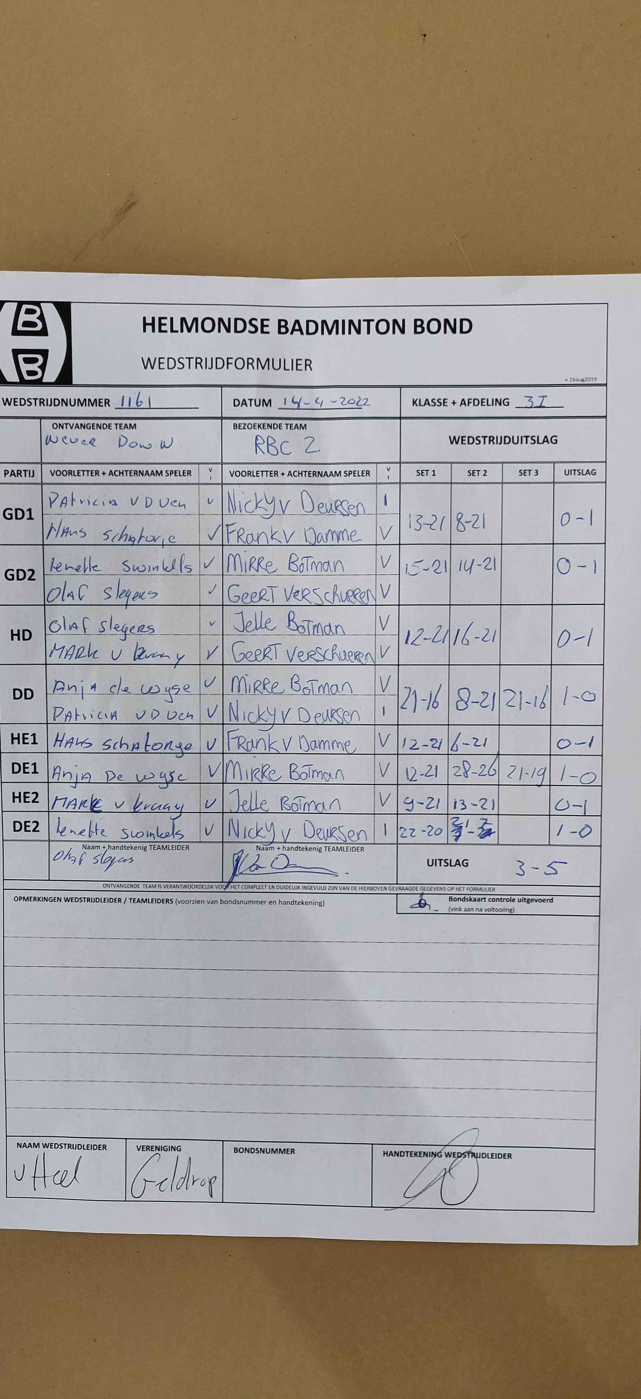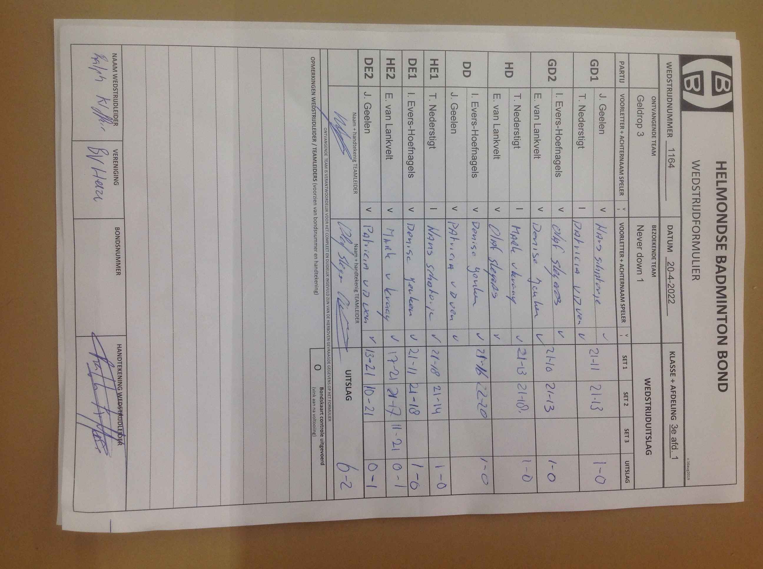 | 1164 | wo. 20-04-2022 | Geldrop 3 | - | Never Down 1 | 5 | 6 - 2 | |||