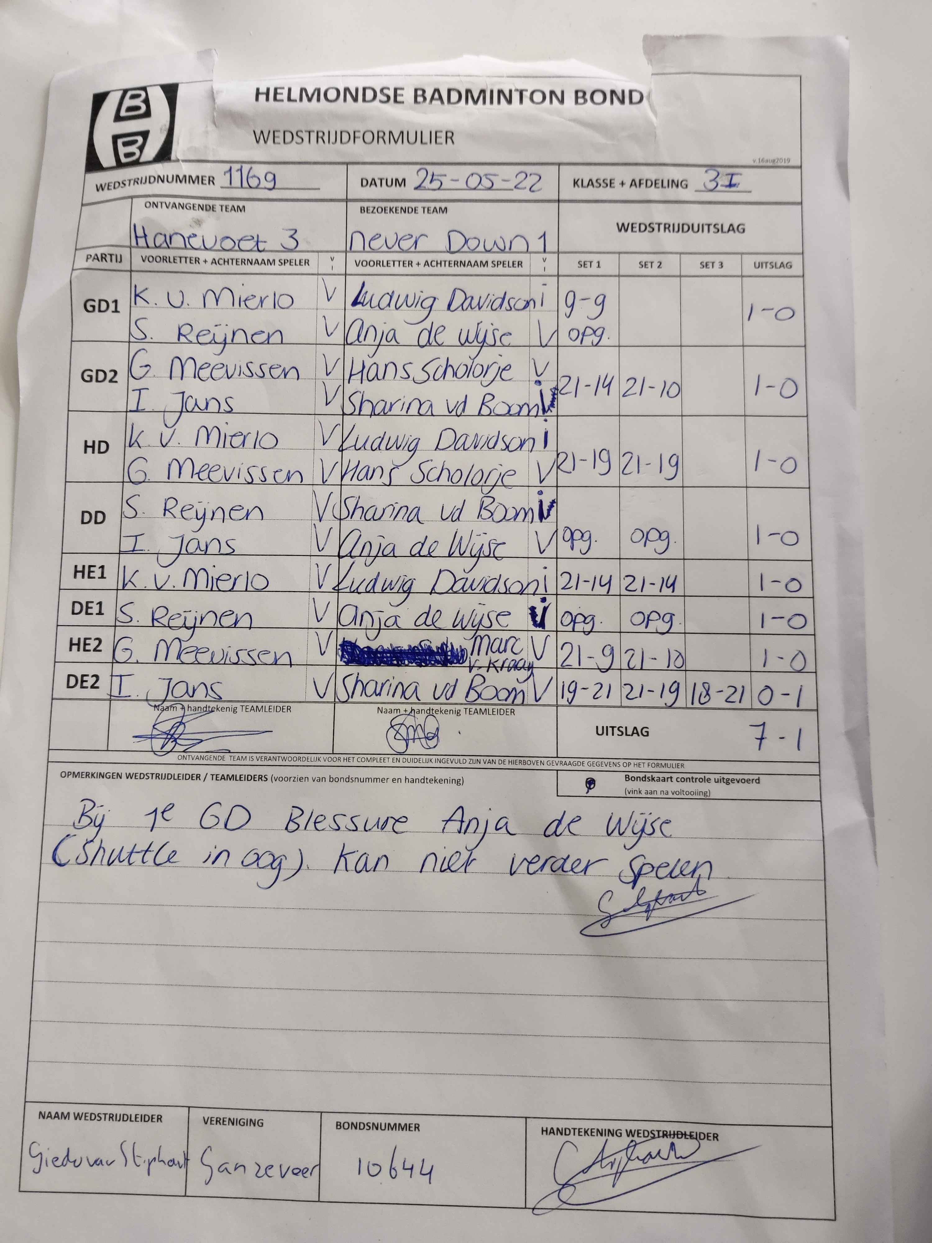 | 1169 | wo. 25-05-2022 | Hanevoet 3 | - | Never Down 1 | 5 | 7 - 1 | |||