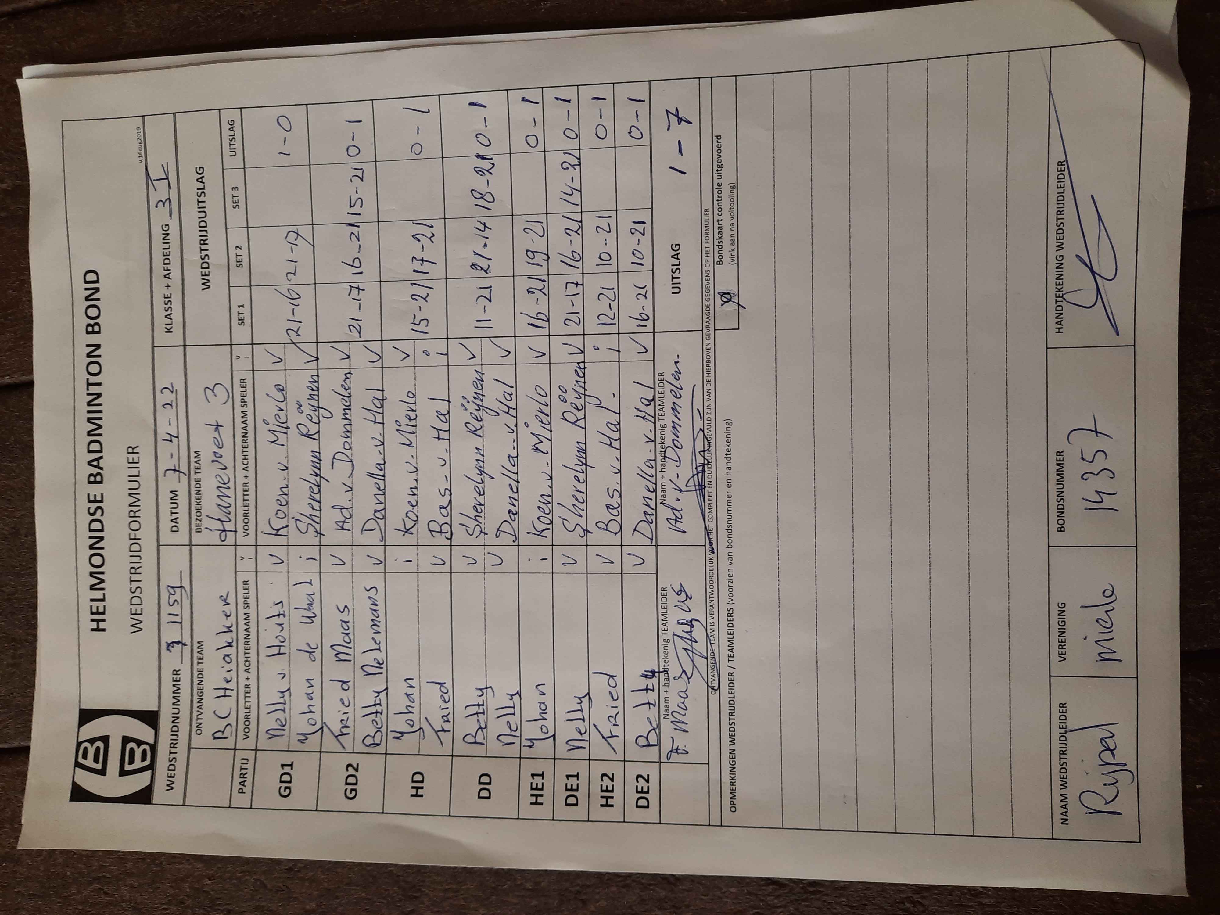 | 173 | do. 17-02-2022 | Heiakker 1 | - | Gemert 2 | 11 | 5 - 3 | |||
