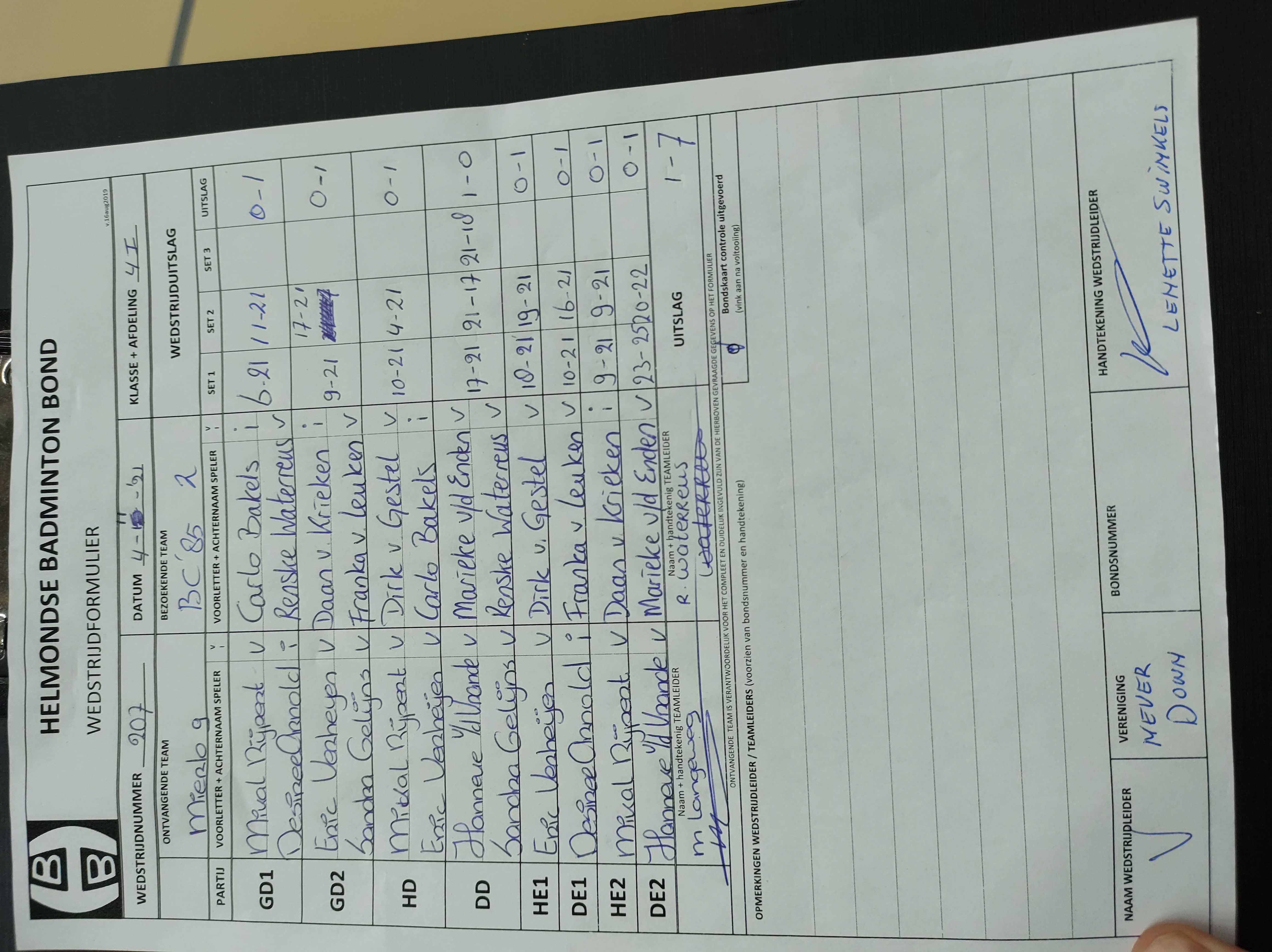 | 207 | do. 04-11-2021 | Mierlo 9 | - | BC '85 2 | 15 | 1 - 7 | |||