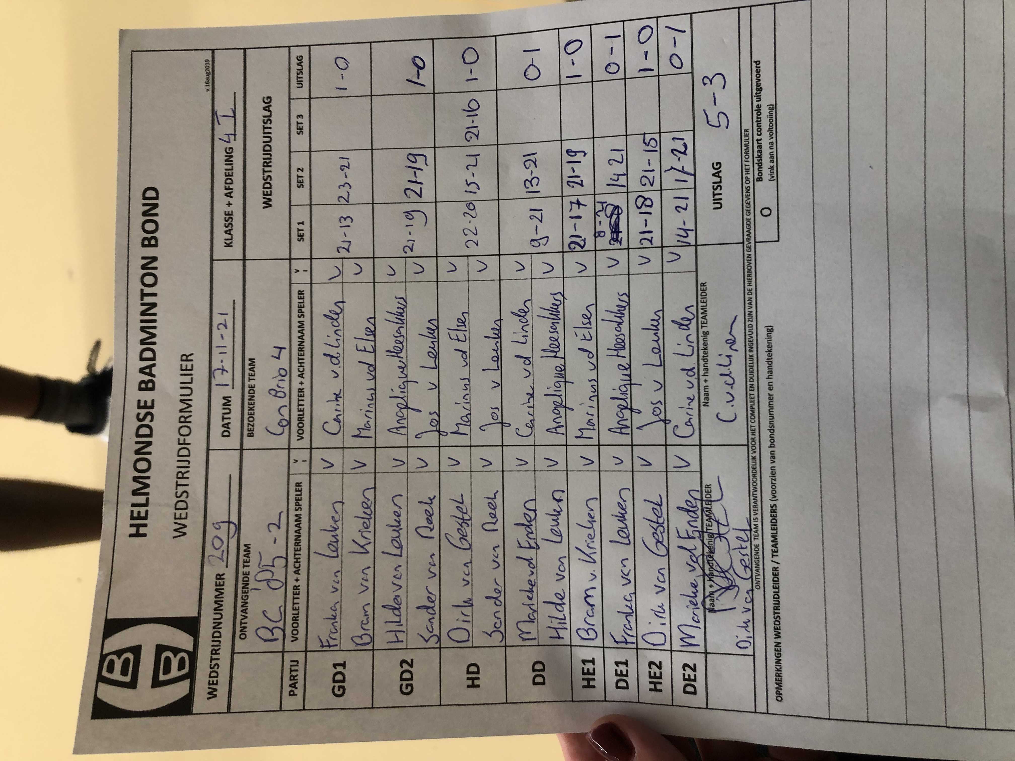 | 209 | wo. 17-11-2021 | BC '85 2 | - | Con Brio 4 | 2 | 5 - 3 | |||