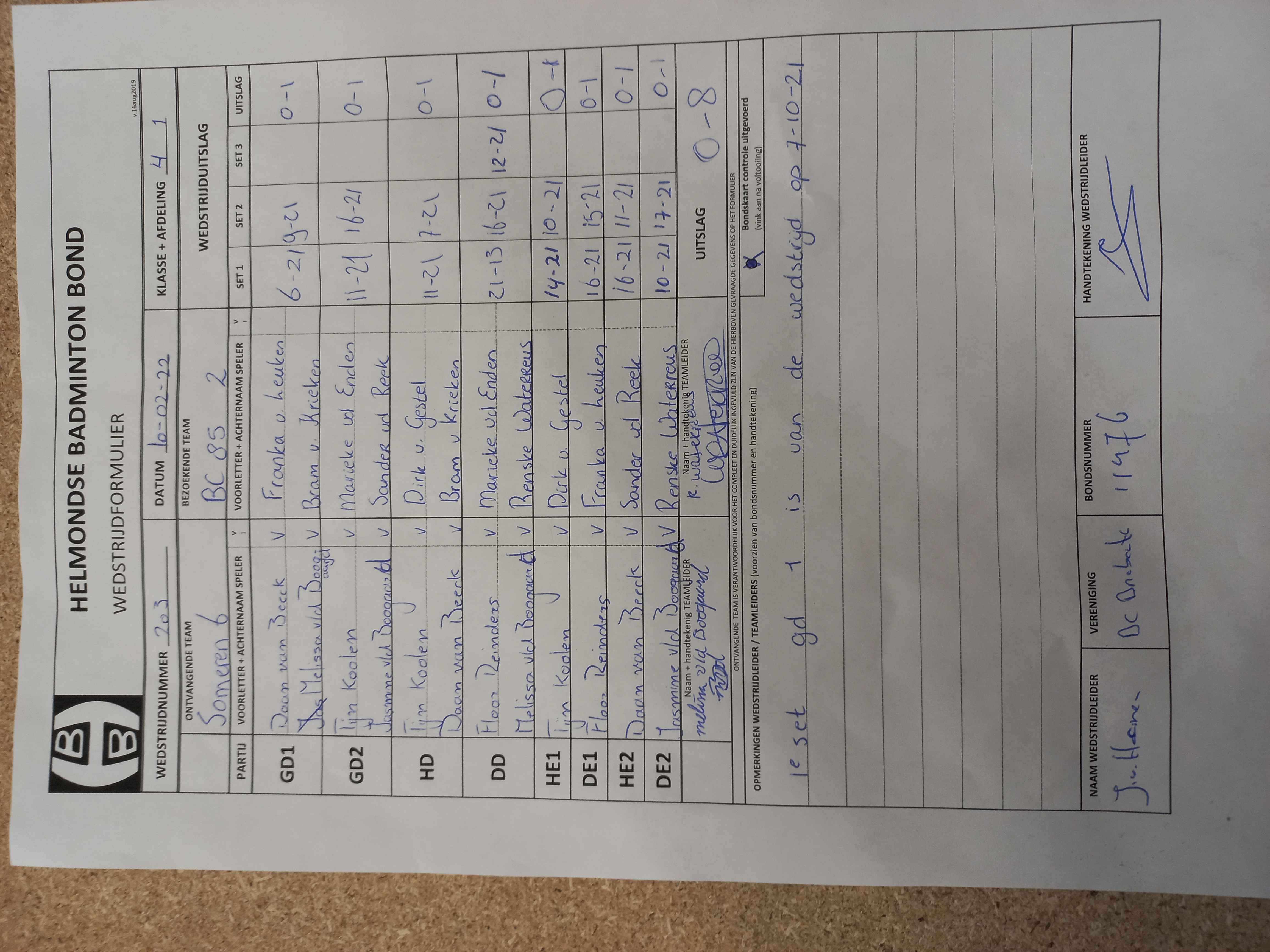 | 203 | do. 10-02-2022 | Someren 6 | - | BC '85 2 | 10 | 0 - 8 | |||