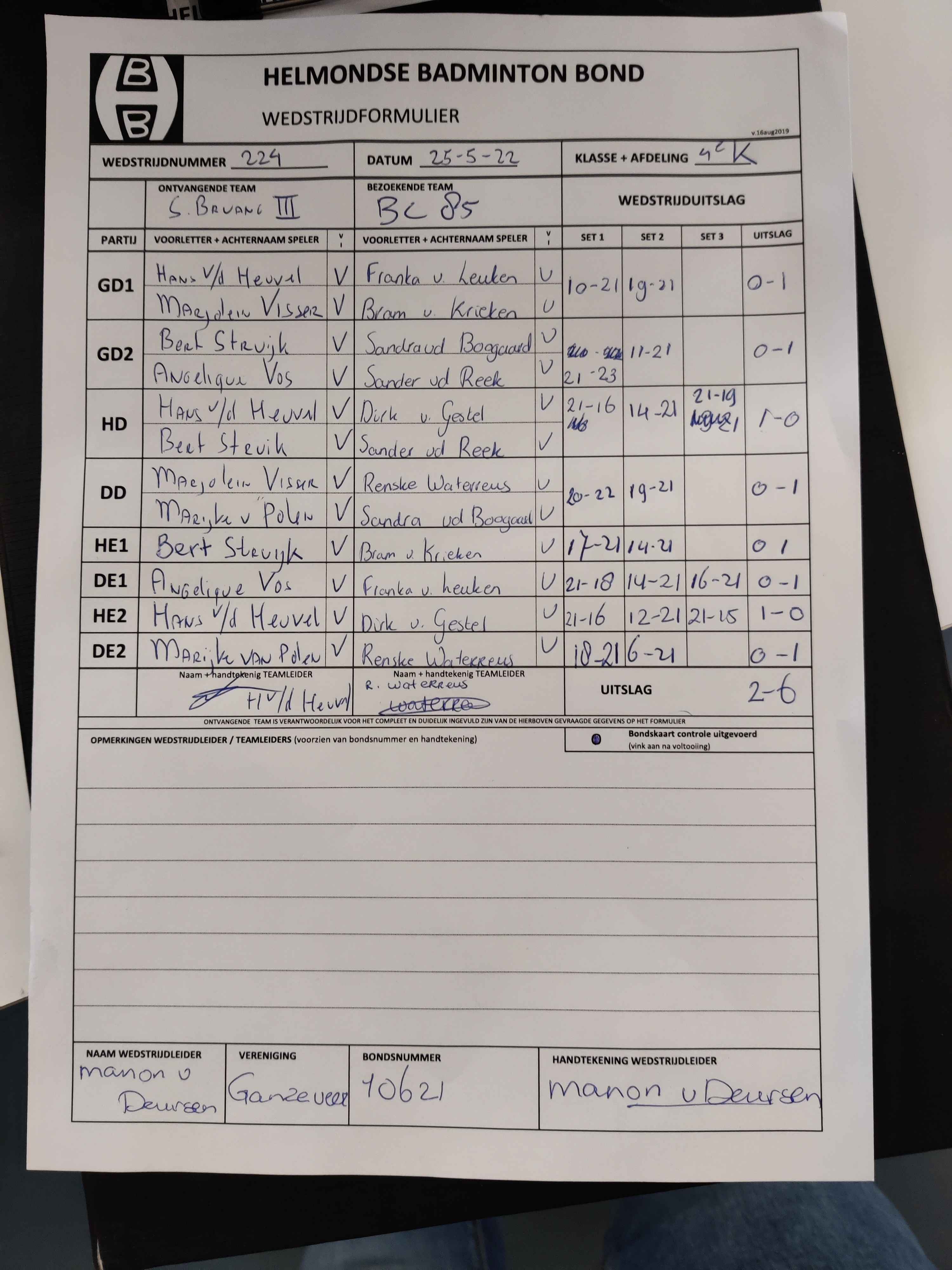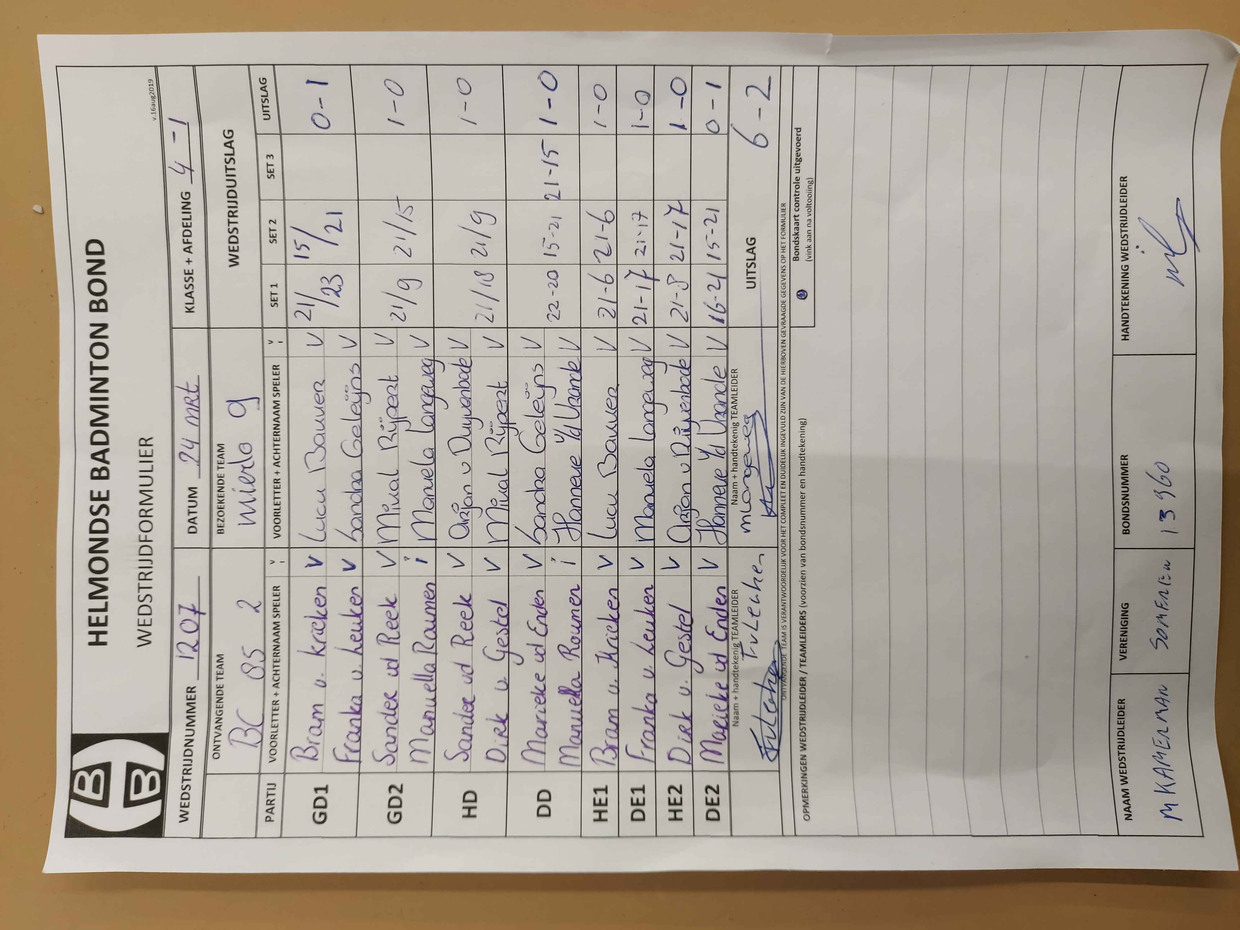 | 1207 | do. 24-03-2022 | BC '85 2 | - | Mierlo 9 | 11 | 6 - 2 | |||