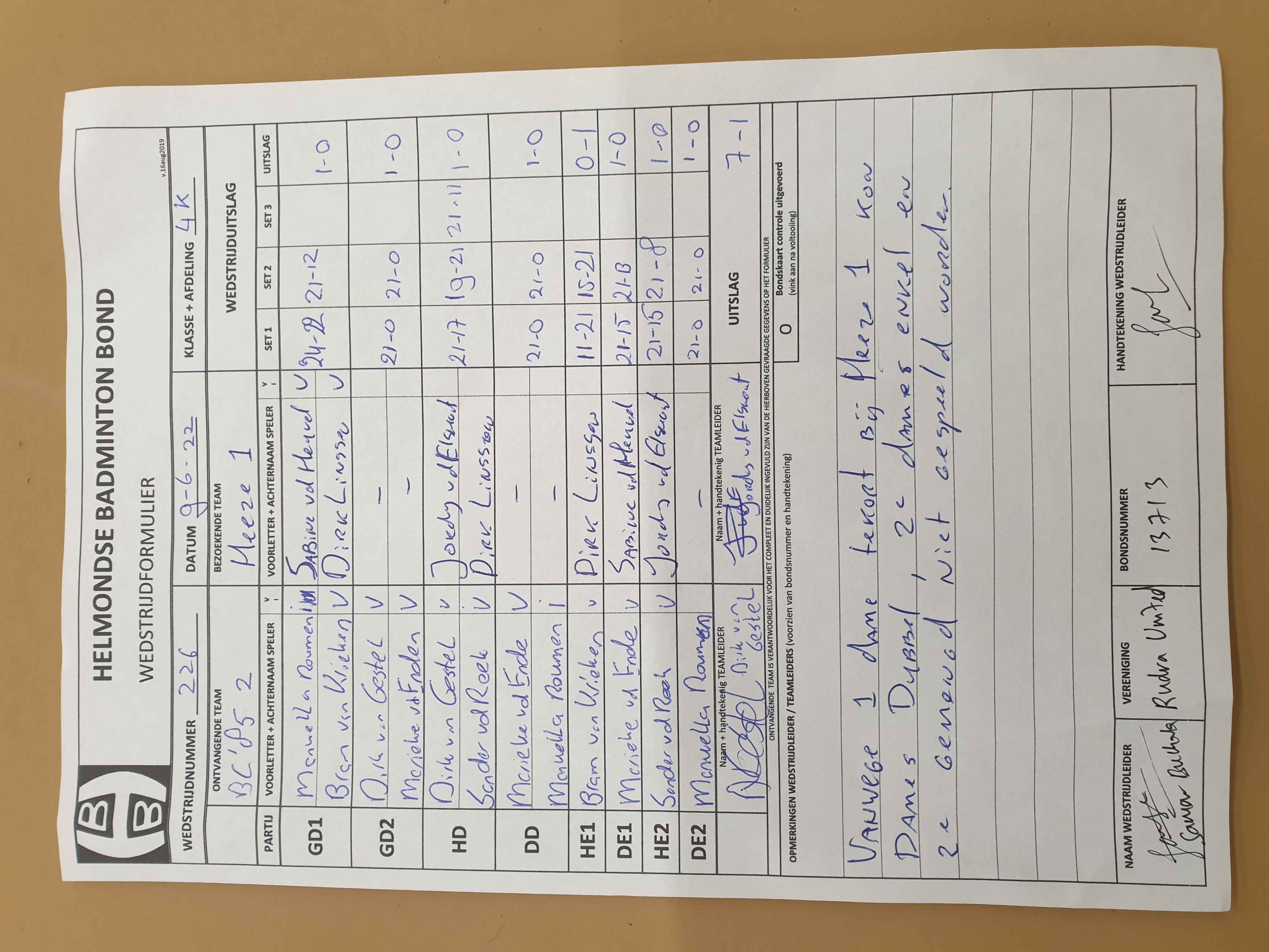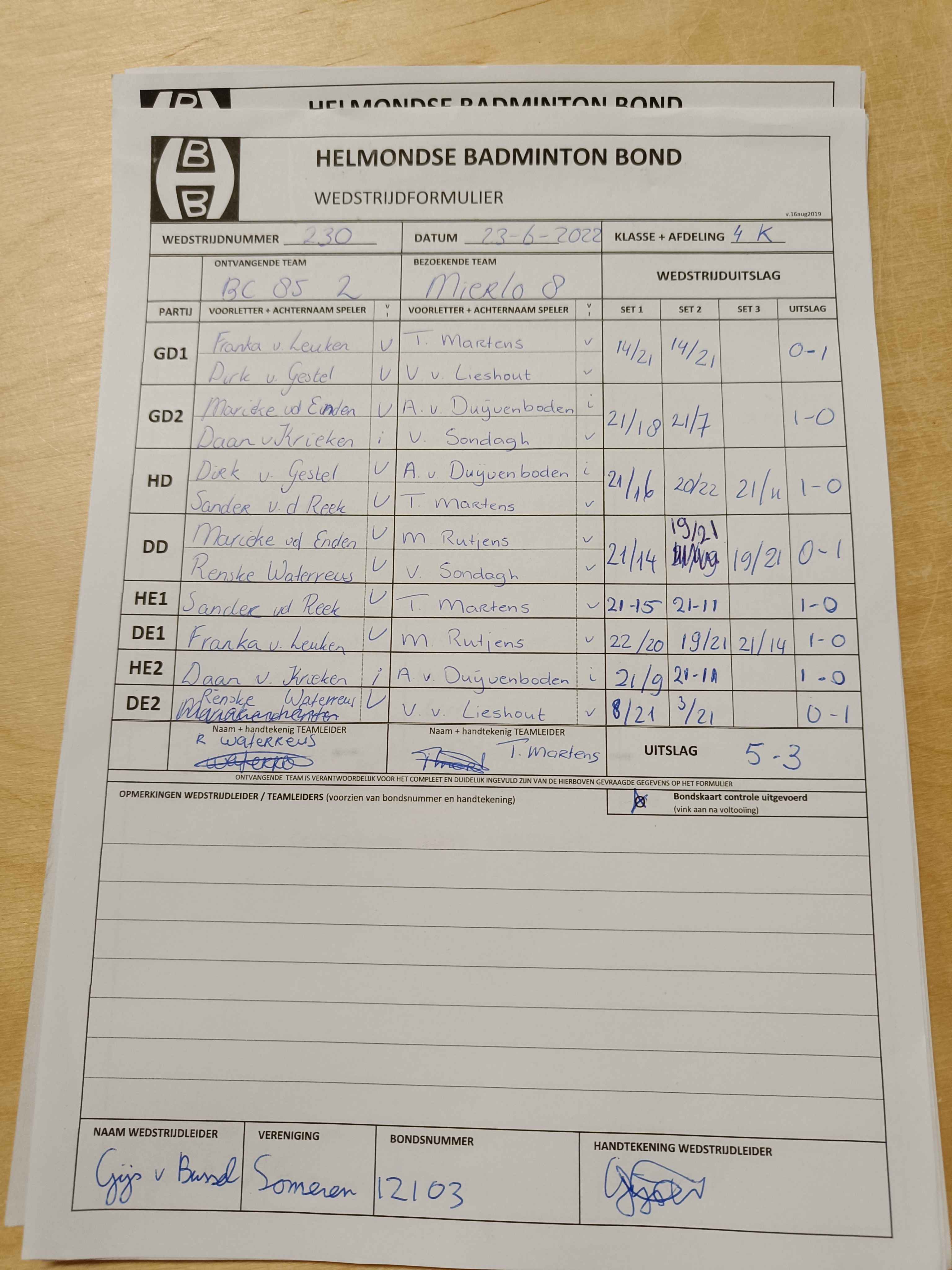 | 230 | do. 23-06-2022 | BC '85 2 | - | Mierlo 8 | 12 | 5 - 3 | |||