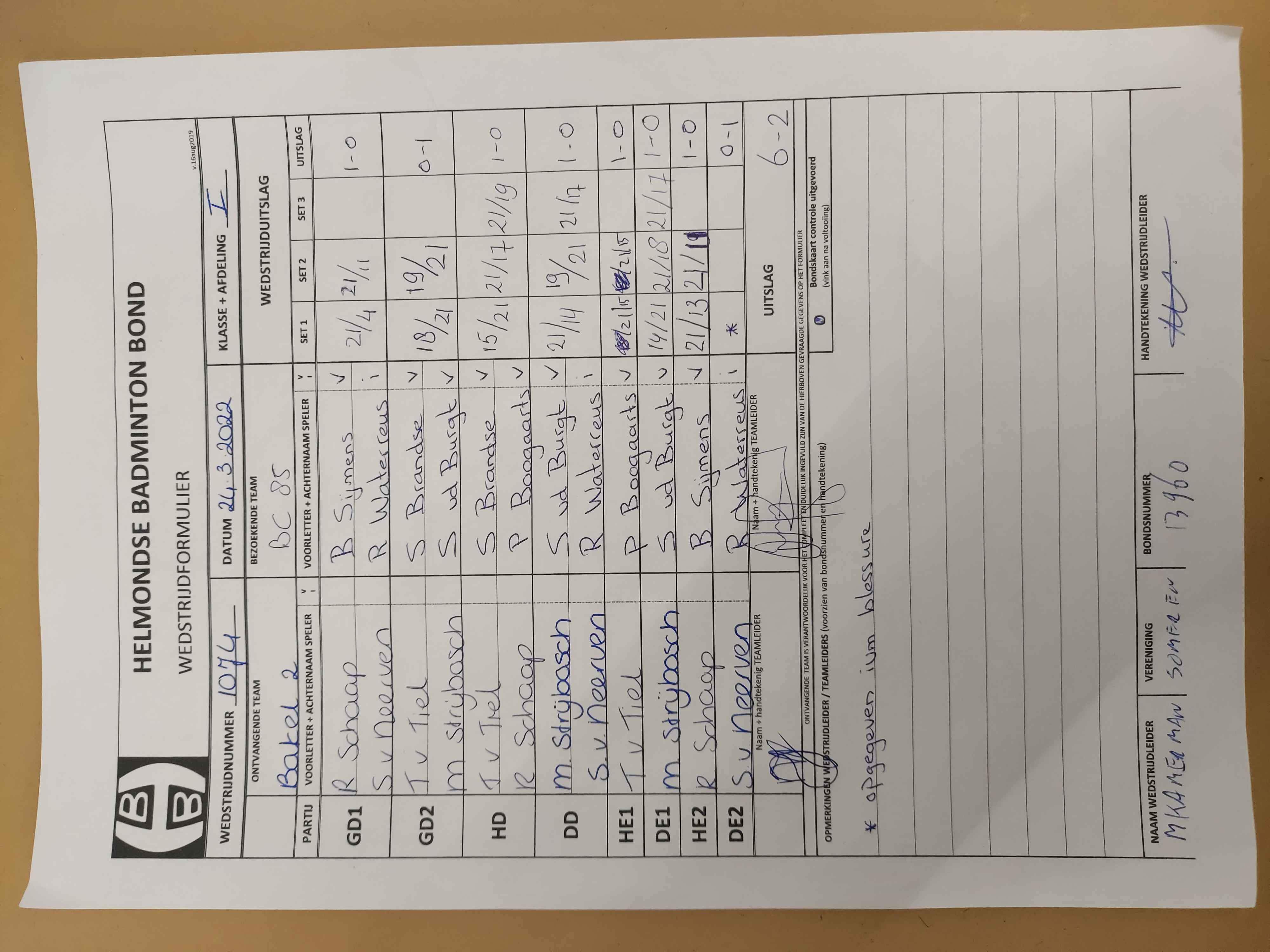 | 1074 | do. 24-03-2022 | Bakel 2 | - | BC '85 1 | 15 | 6 - 2 | |||