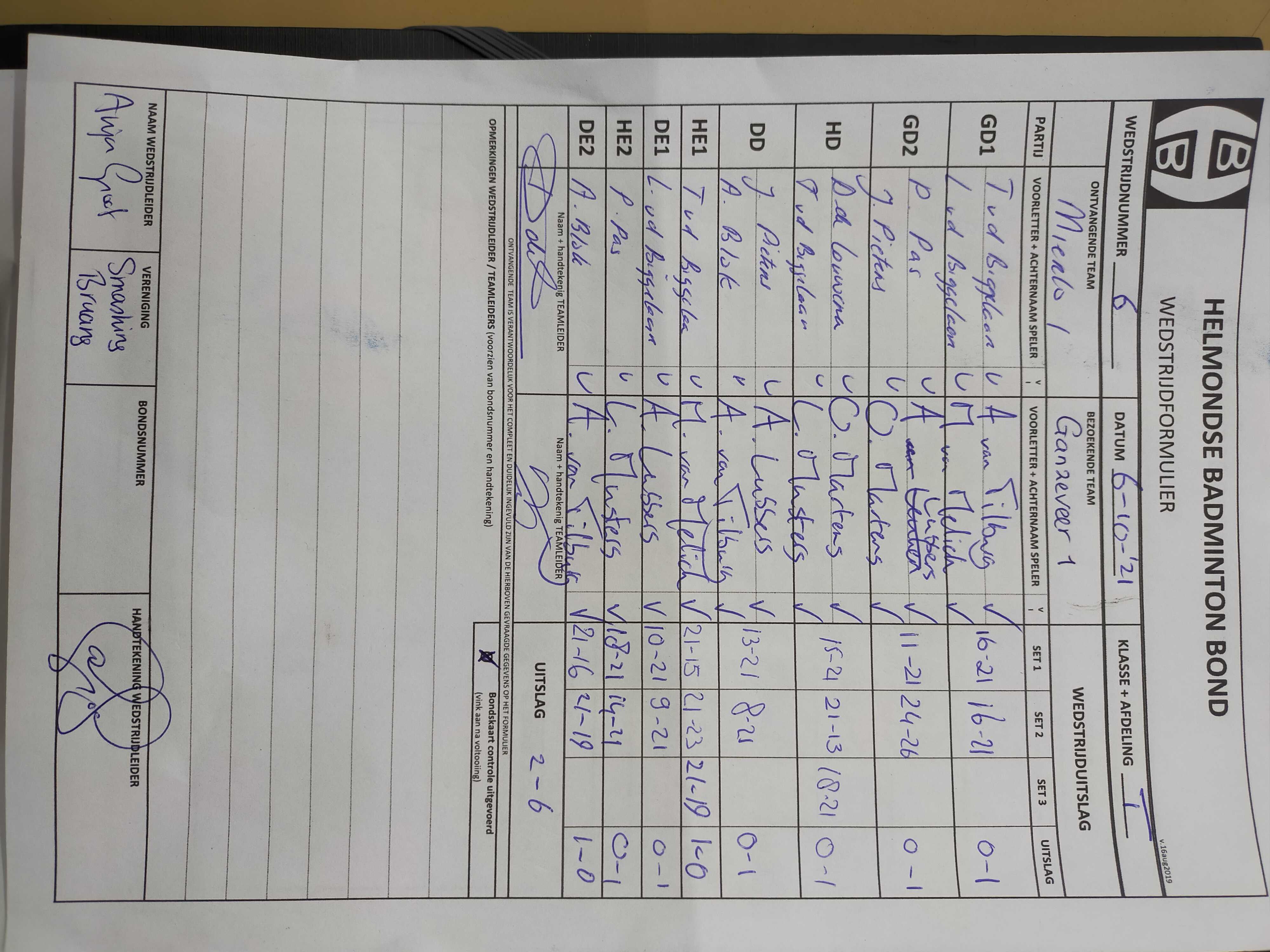| 6 | wo. 06-10-2021 | Mierlo 1 | - | Ganzeveer 1 | 15 | 2 - 6 | |||