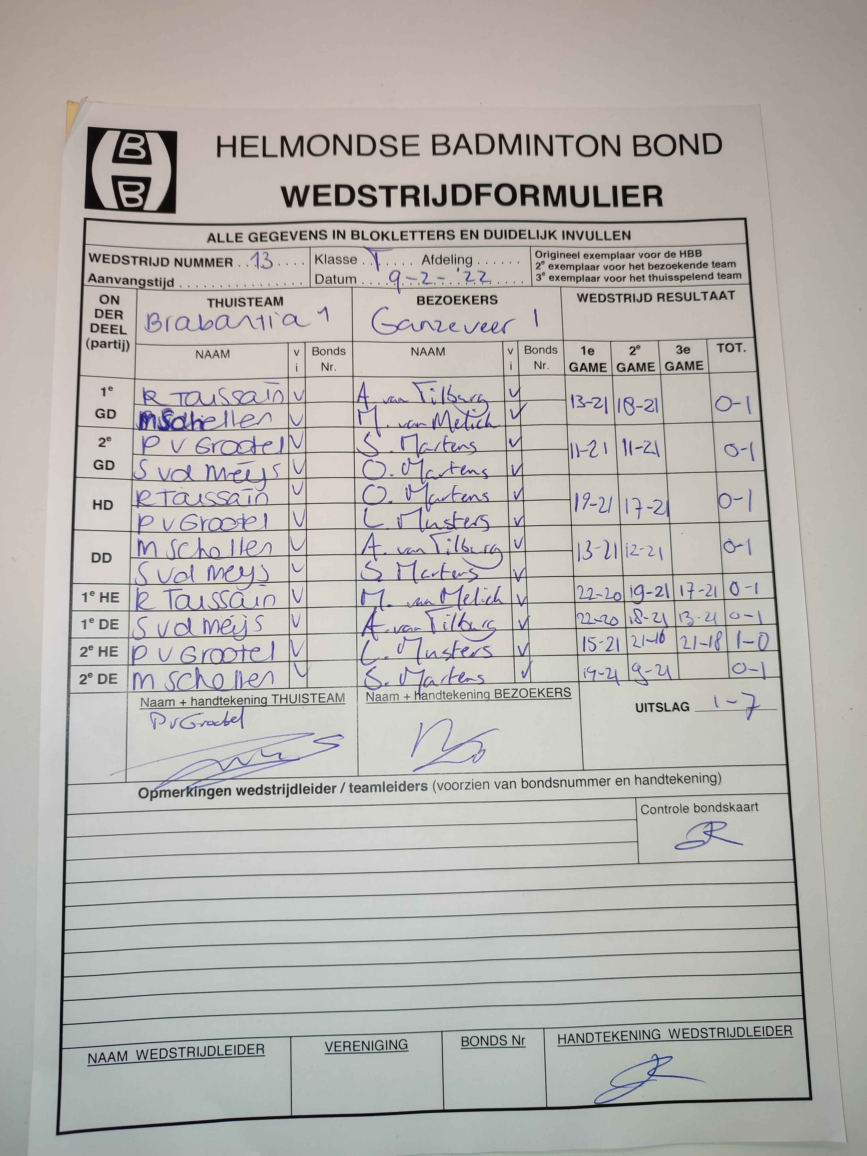 | 13 | wo. 09-02-2022 | Brabantia 1 | - | Ganzeveer 1 | 1 | 1 - 7 | |||
