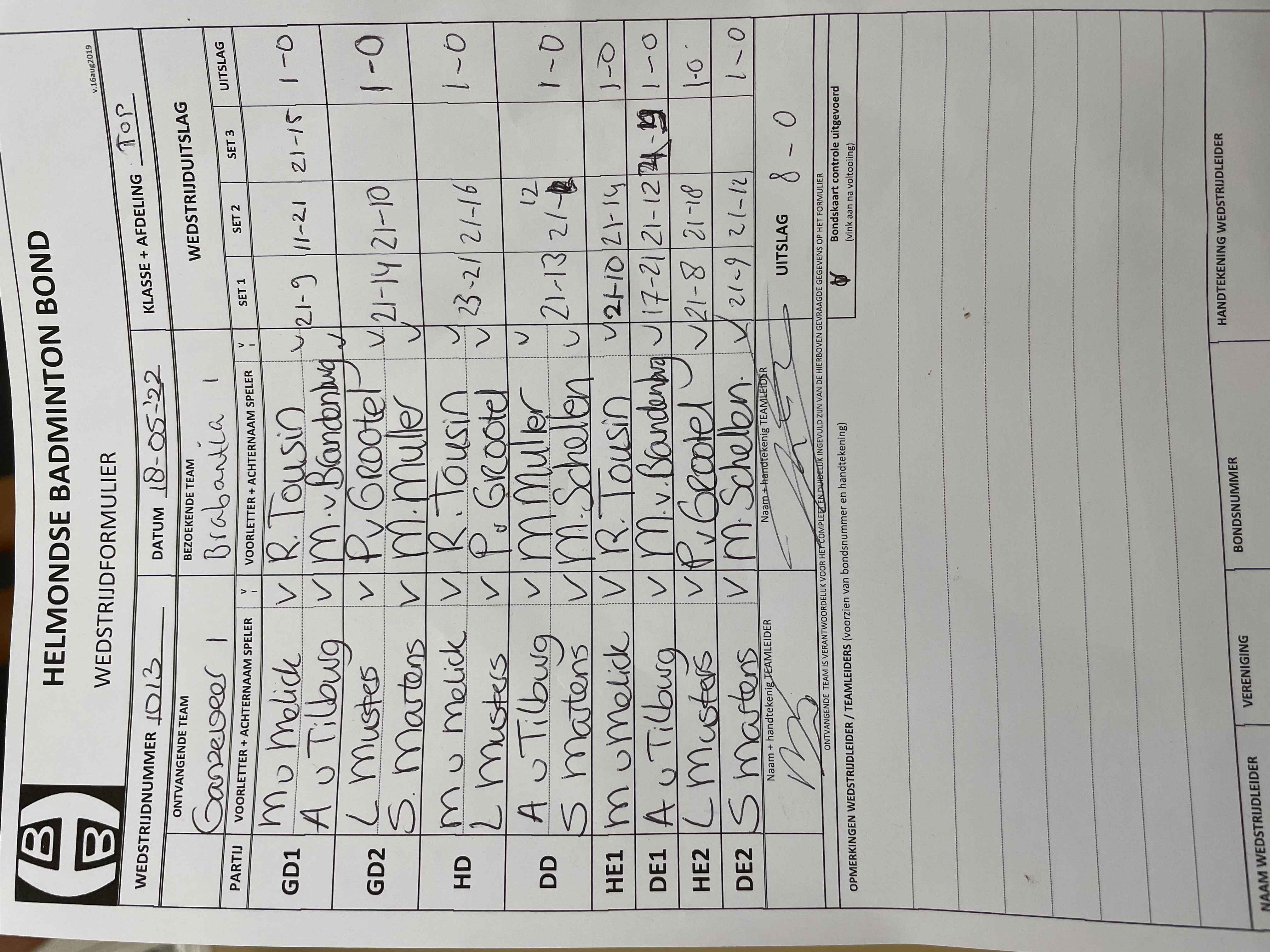 | 1013 | wo. 18-05-2022 | Ganzeveer 1 | - | Brabantia 1 | 15 | 8 - 0 | |||