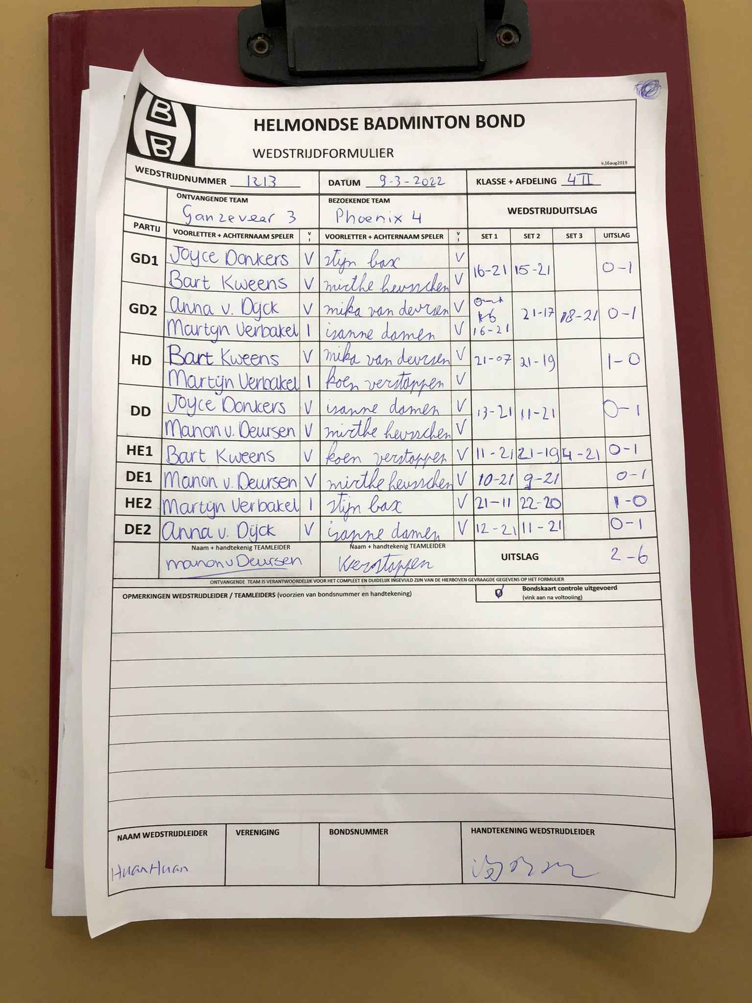 | 1213 | wo. 09-03-2022 | Ganzeveer 3 | - | Phoenix 4 | 4 | 2 - 6 | |||
