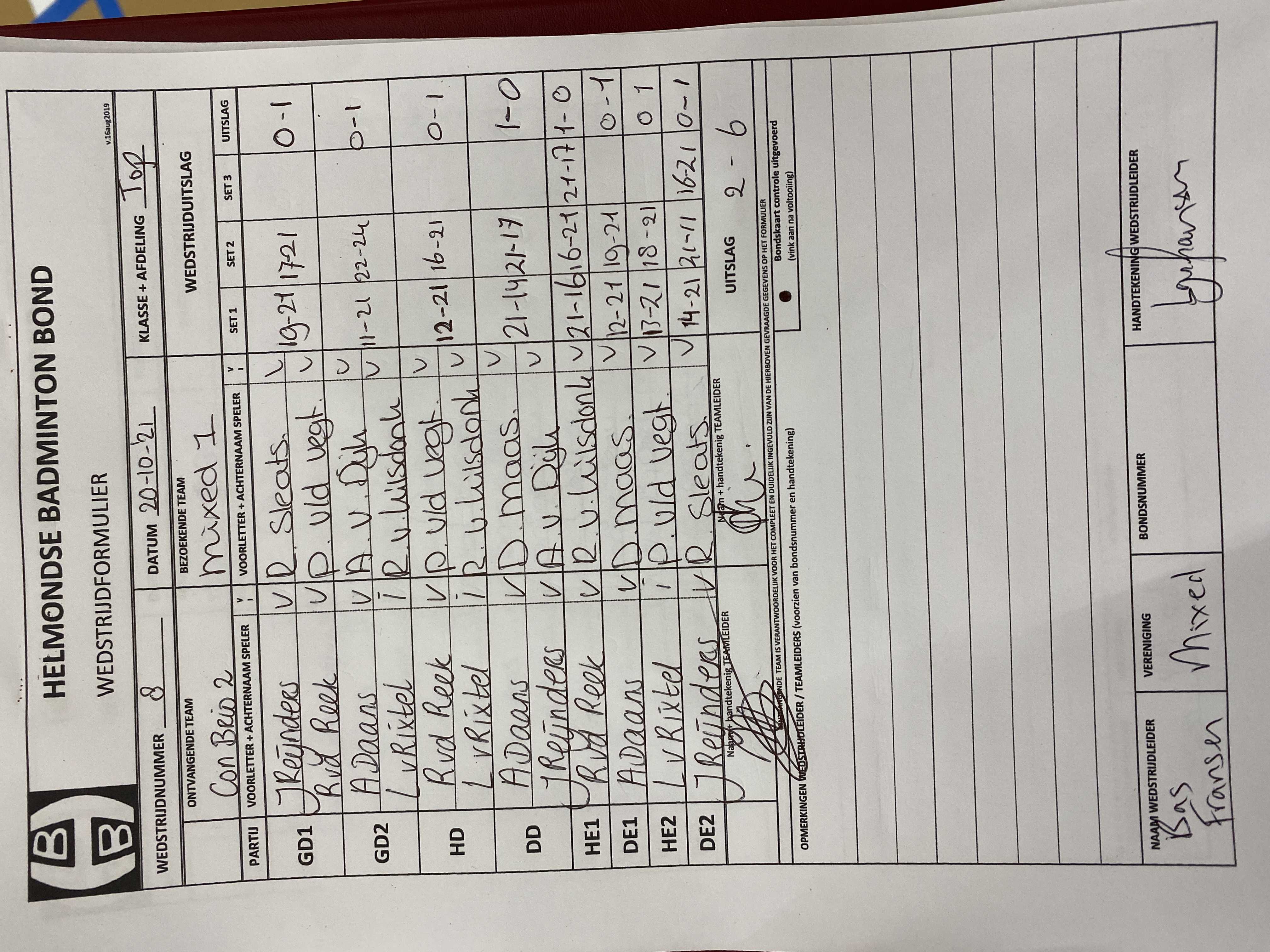 | 8 | wo. 20-10-2021 | Con Brio 2 | - | Mixed 1 | 3 | 2 - 6 | |||