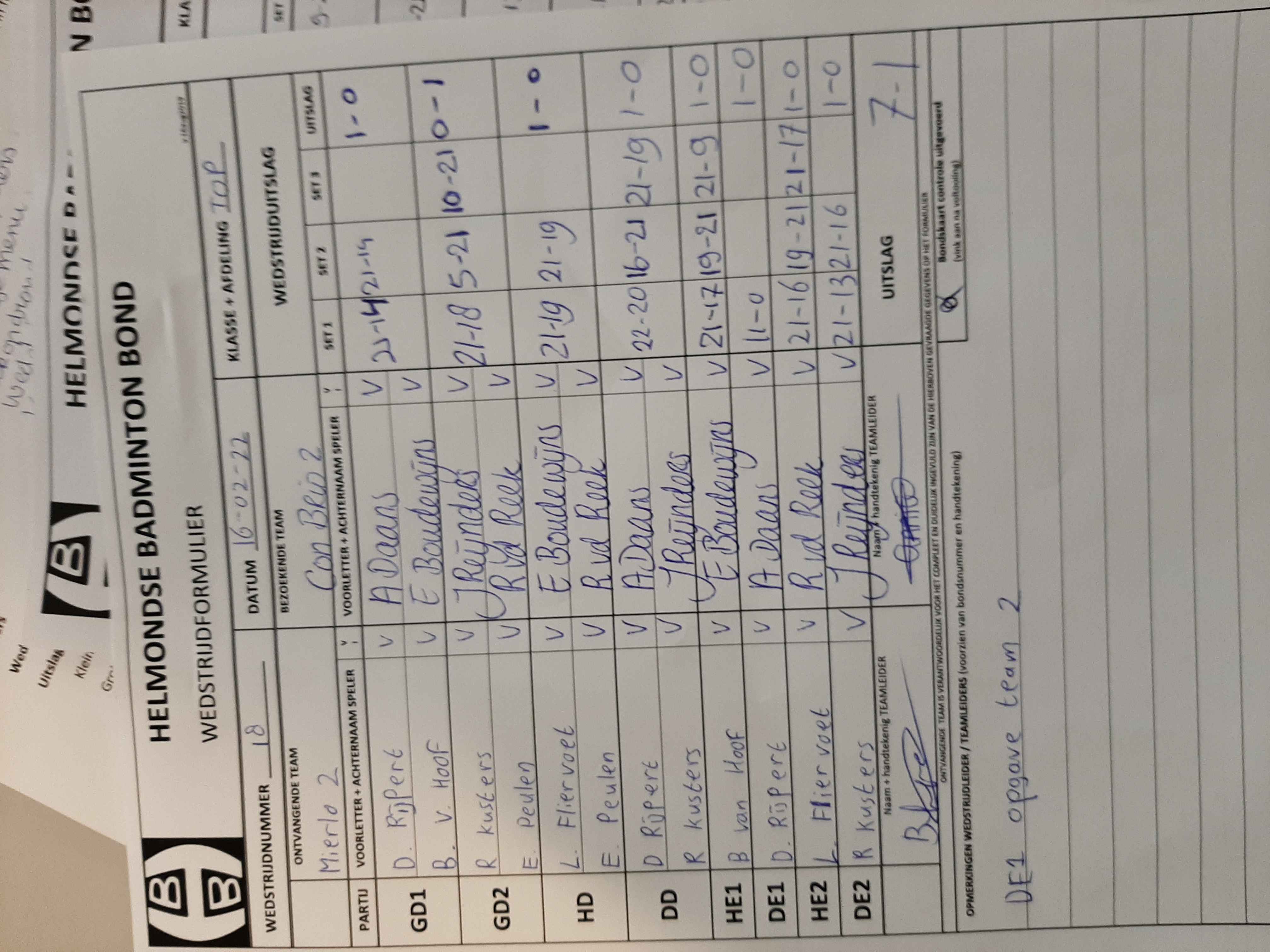 | 18 | wo. 16-02-2022 | Mierlo 2 | - | Con Brio 2 | 12 | 7 - 1 | |||