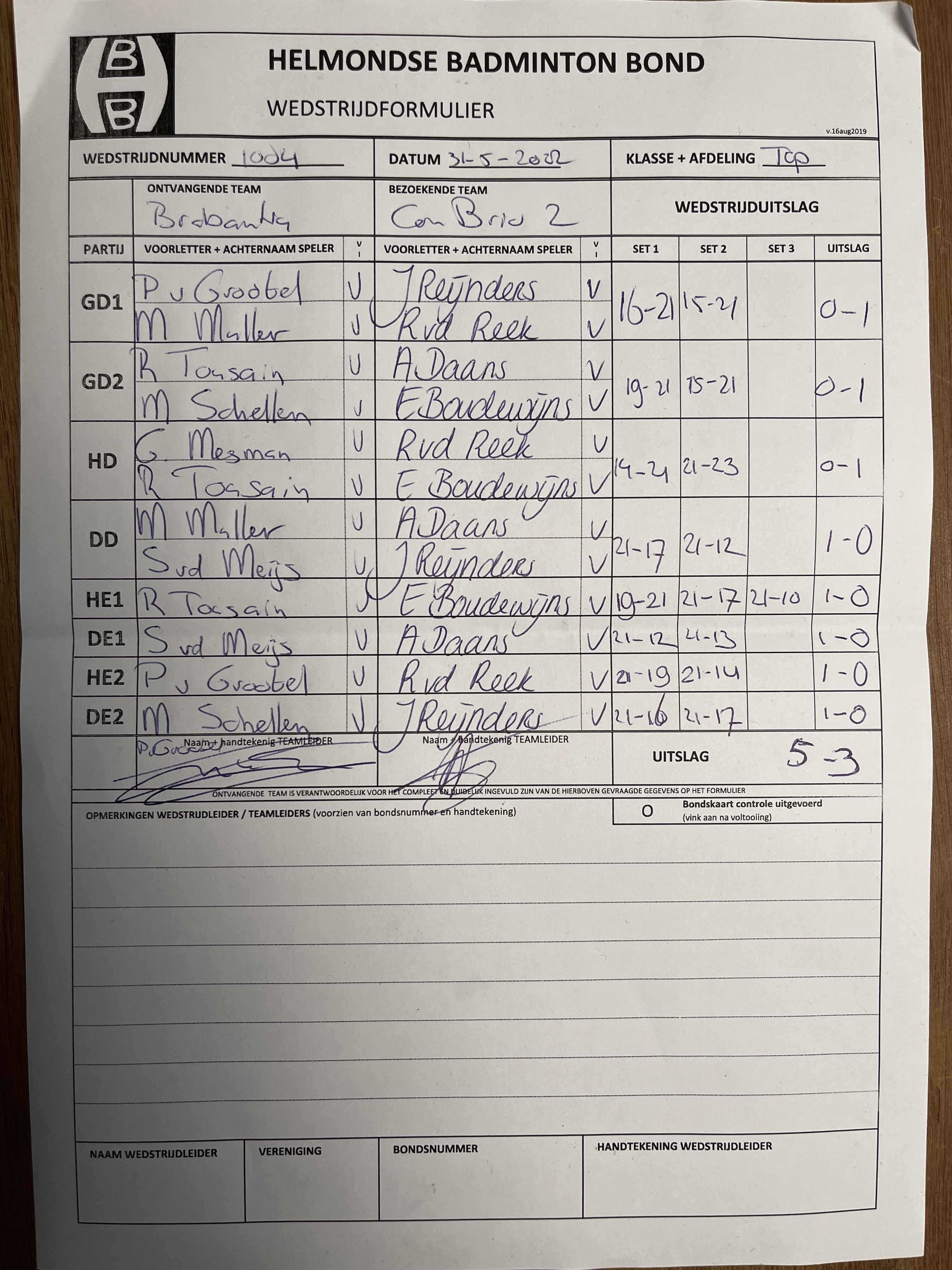 | 1018 | wo. 08-06-2022 | Con Brio 2 | - | Mierlo 2 | 15 | 3 - 5 | |||
