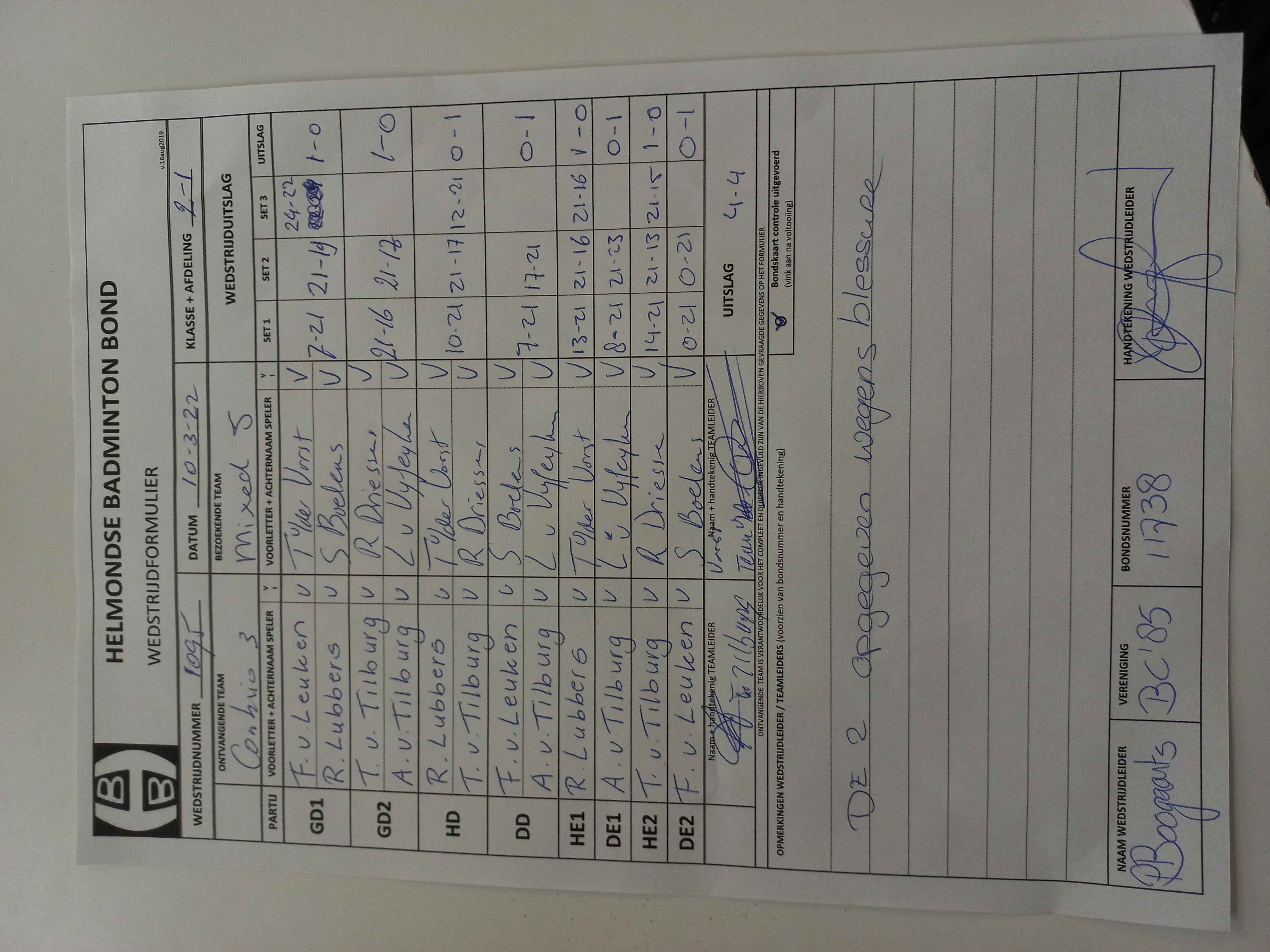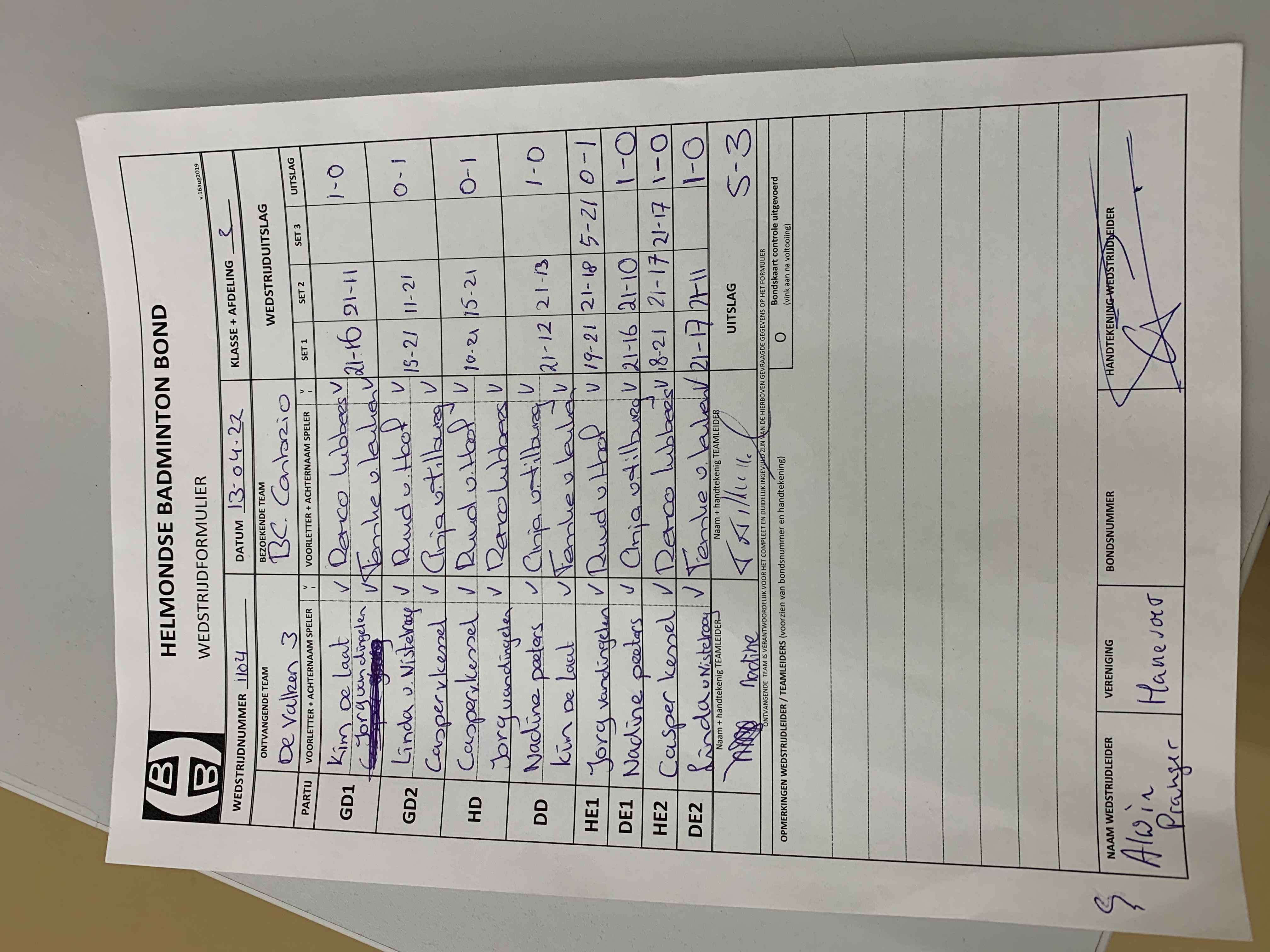 | 1104 | wo. 13-04-2022 | De Valken 3 | - | Con Brio 3 | 12 | 5 - 3 | |||