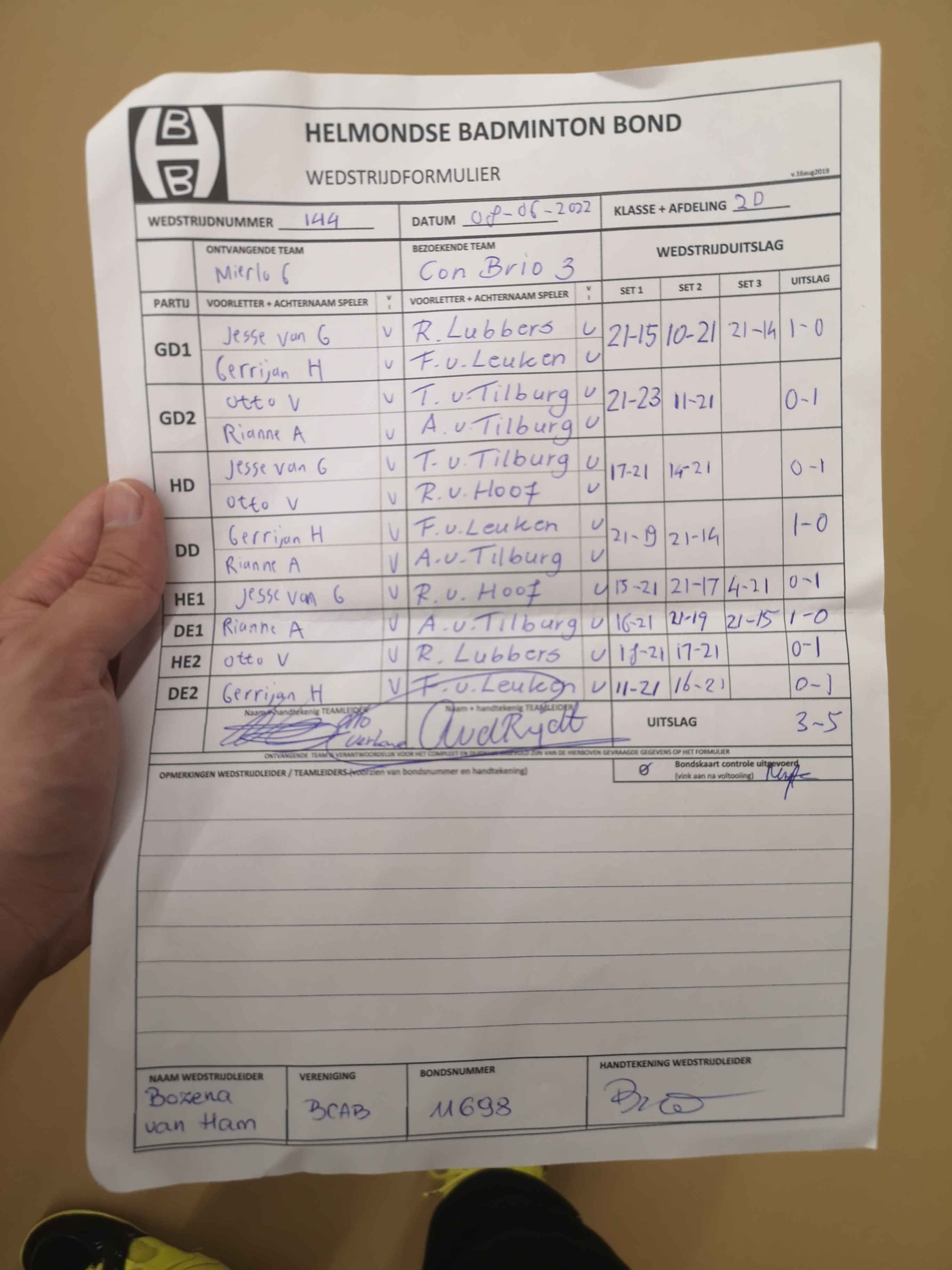 | 144 | wo. 08-06-2022 | Mierlo 6 | - | Con Brio 3 | 12 | 3 - 5 | |||
