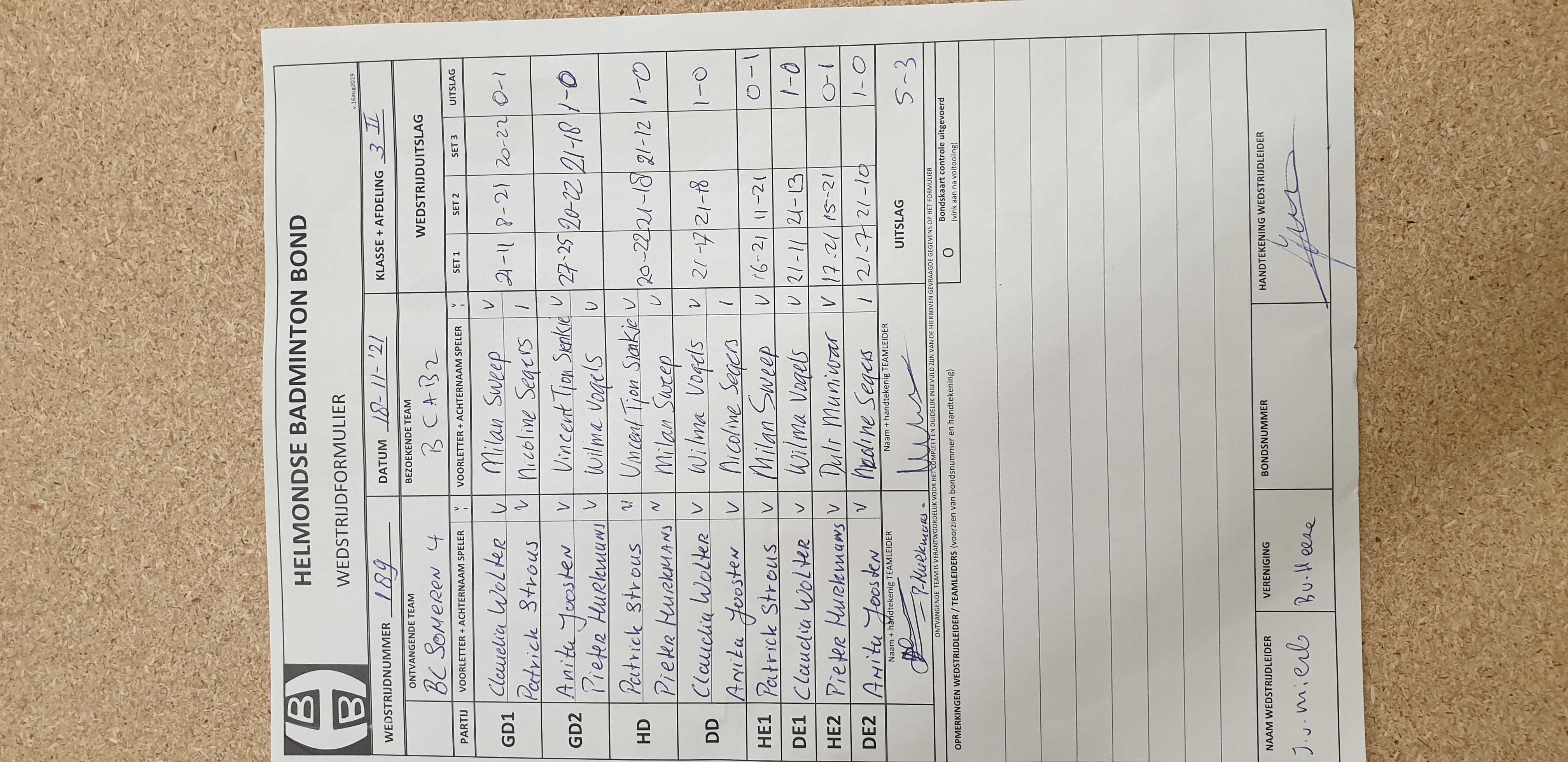 | 189 | do. 18-11-2021 | Someren 4 | - | BCAB 2 | 1 | 5 - 3 | |||