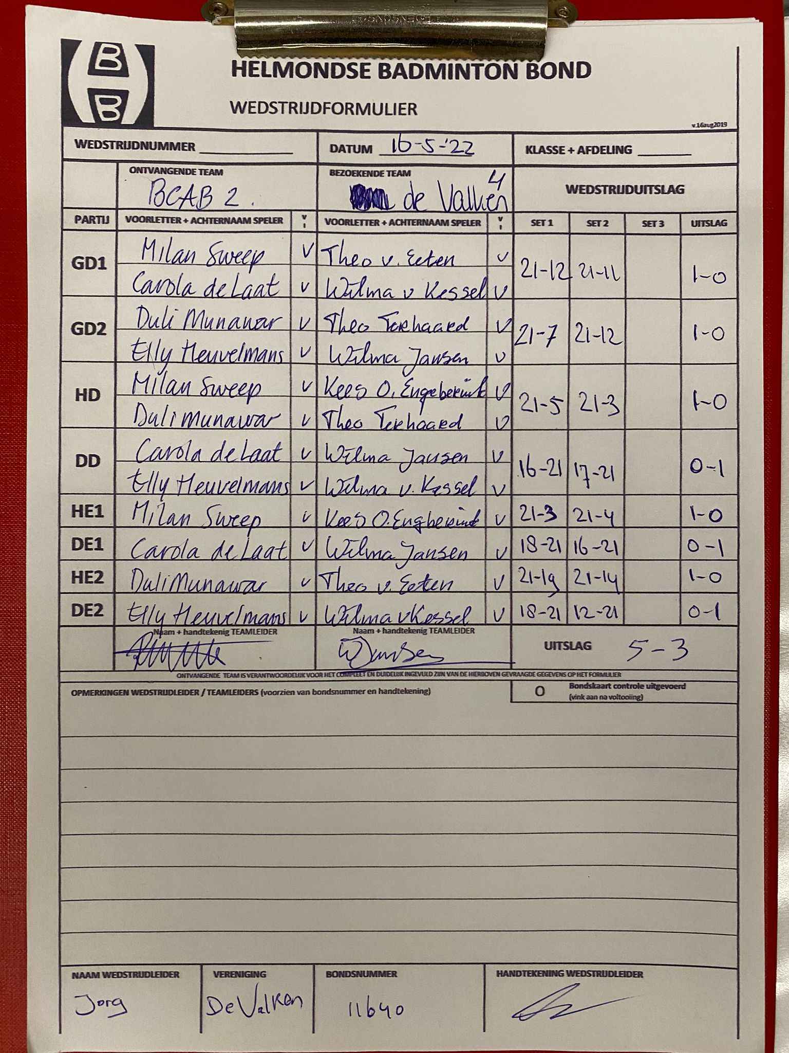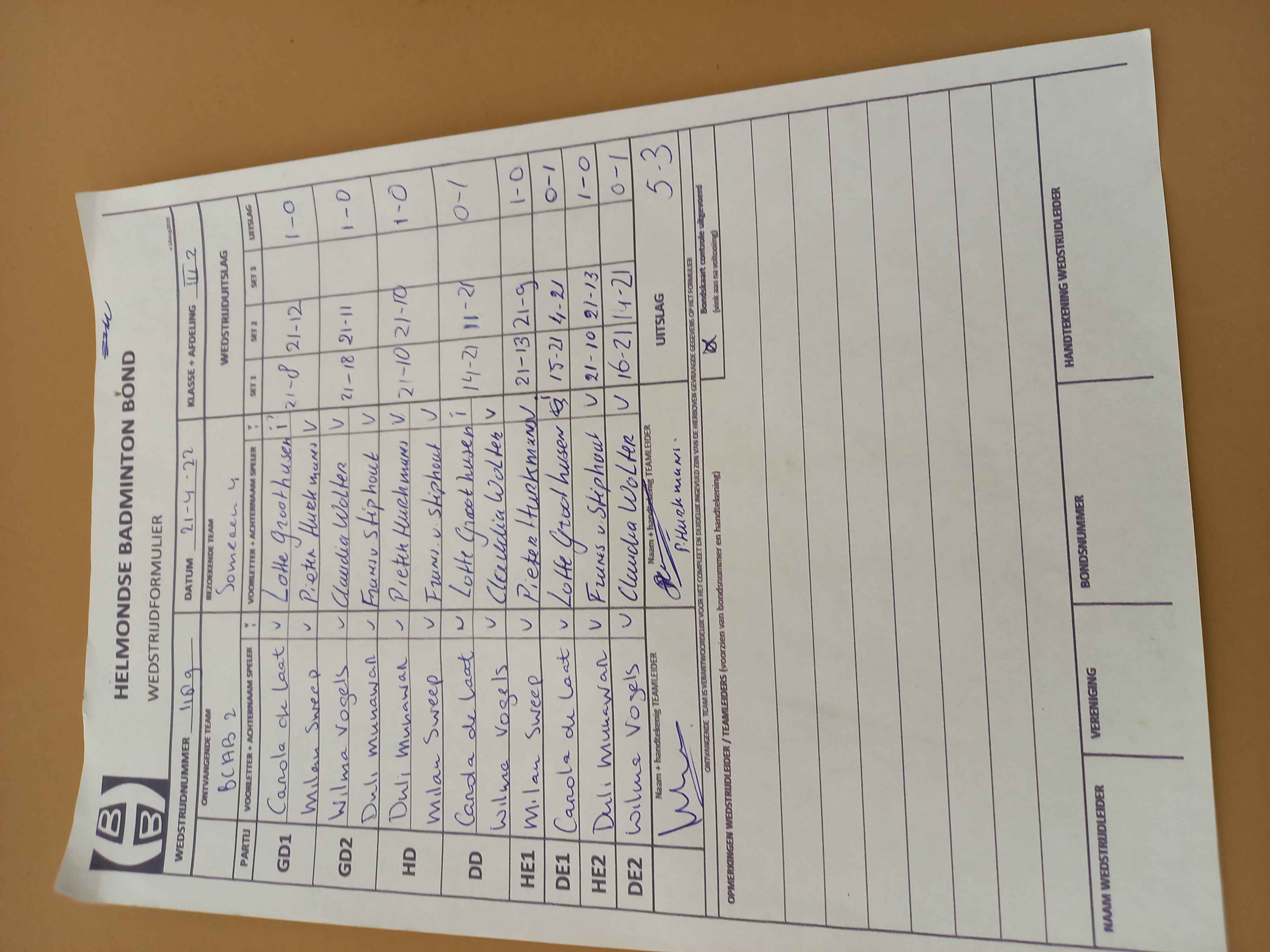 | 1189 | do. 21-04-2022 | BCAB 2 | - | Someren 4 | 5 | 5 - 3 | |||