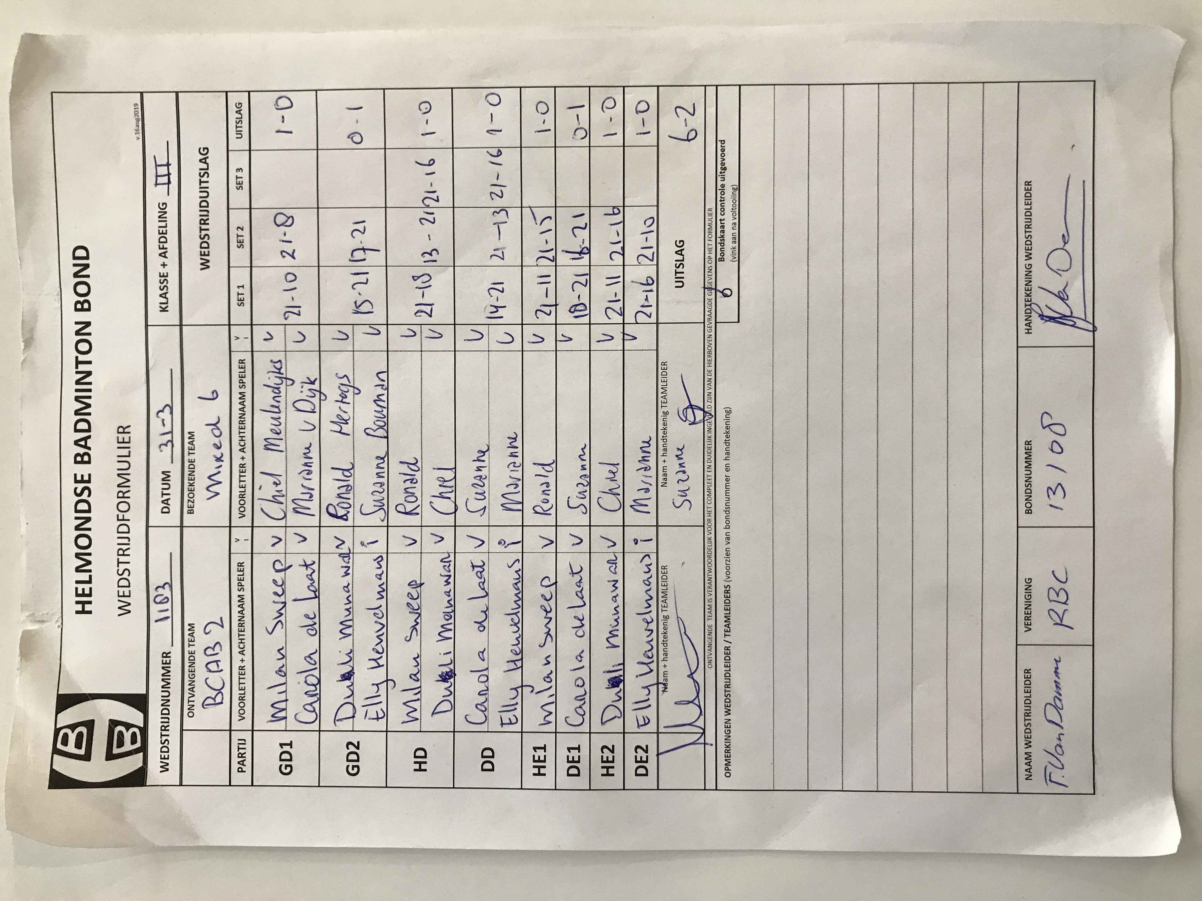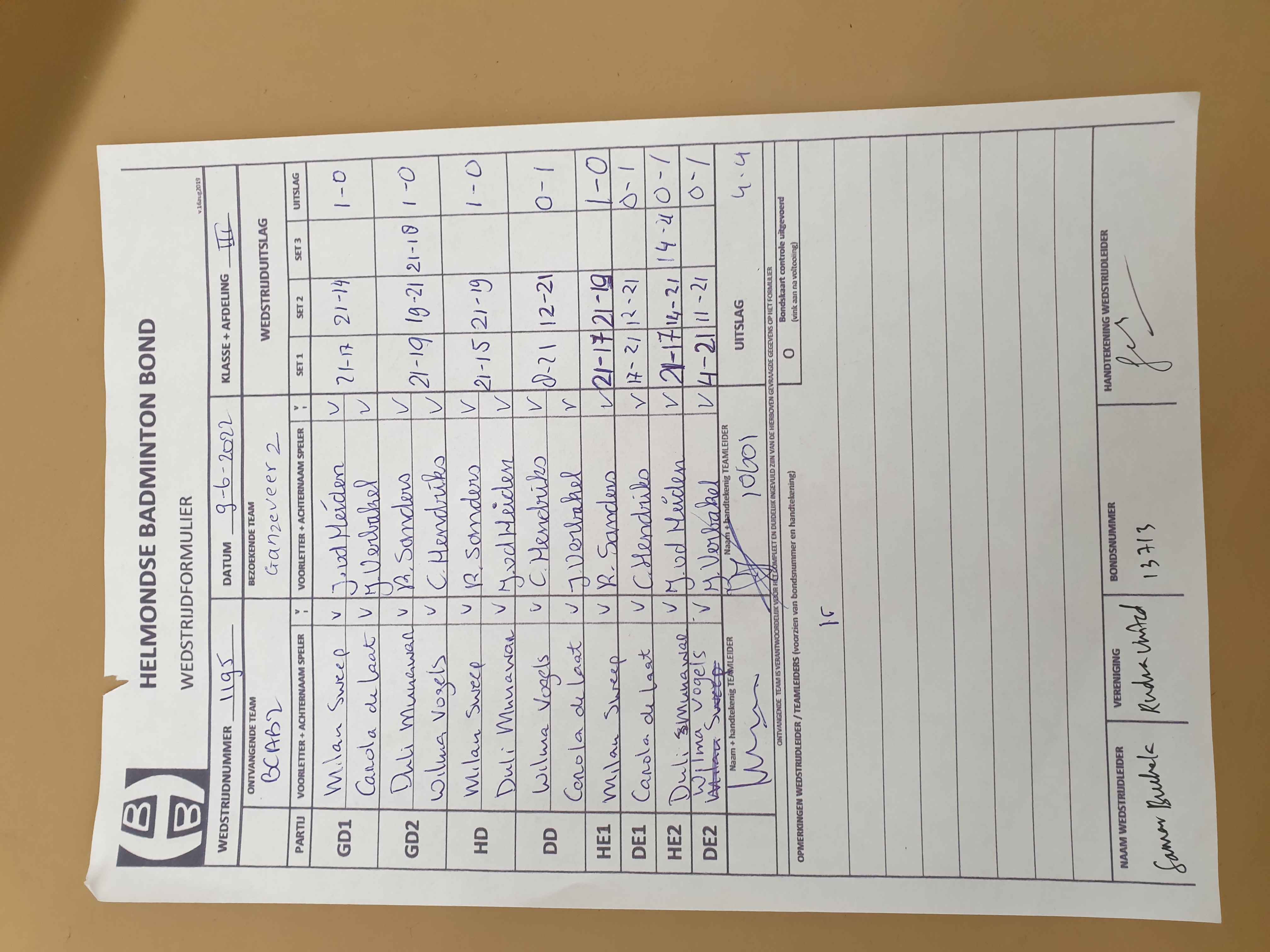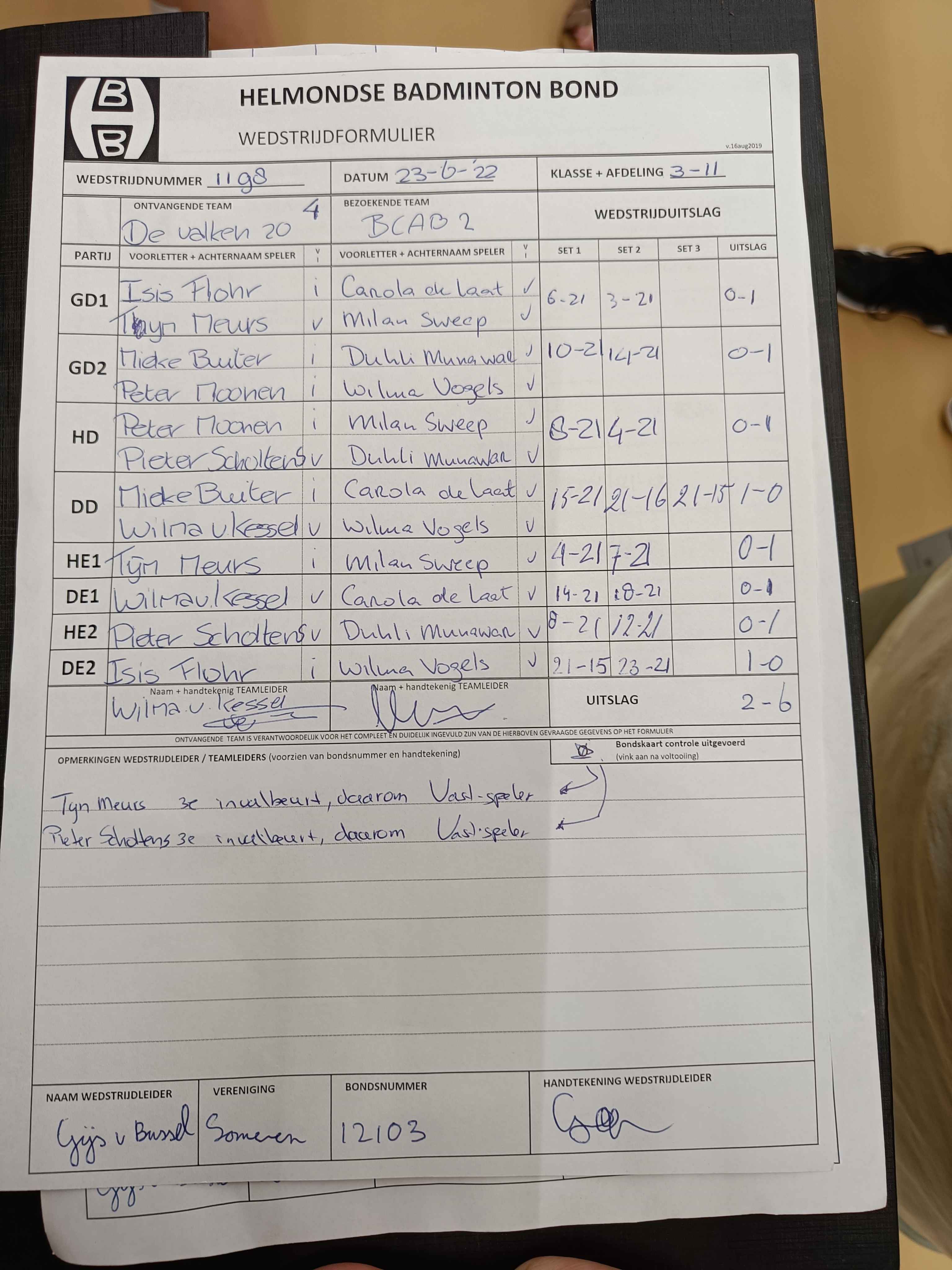 | 1192 | do. 02-06-2022 | Mierlo 7 | - | BCAB 2 | 2 | 5 - 3 | |||