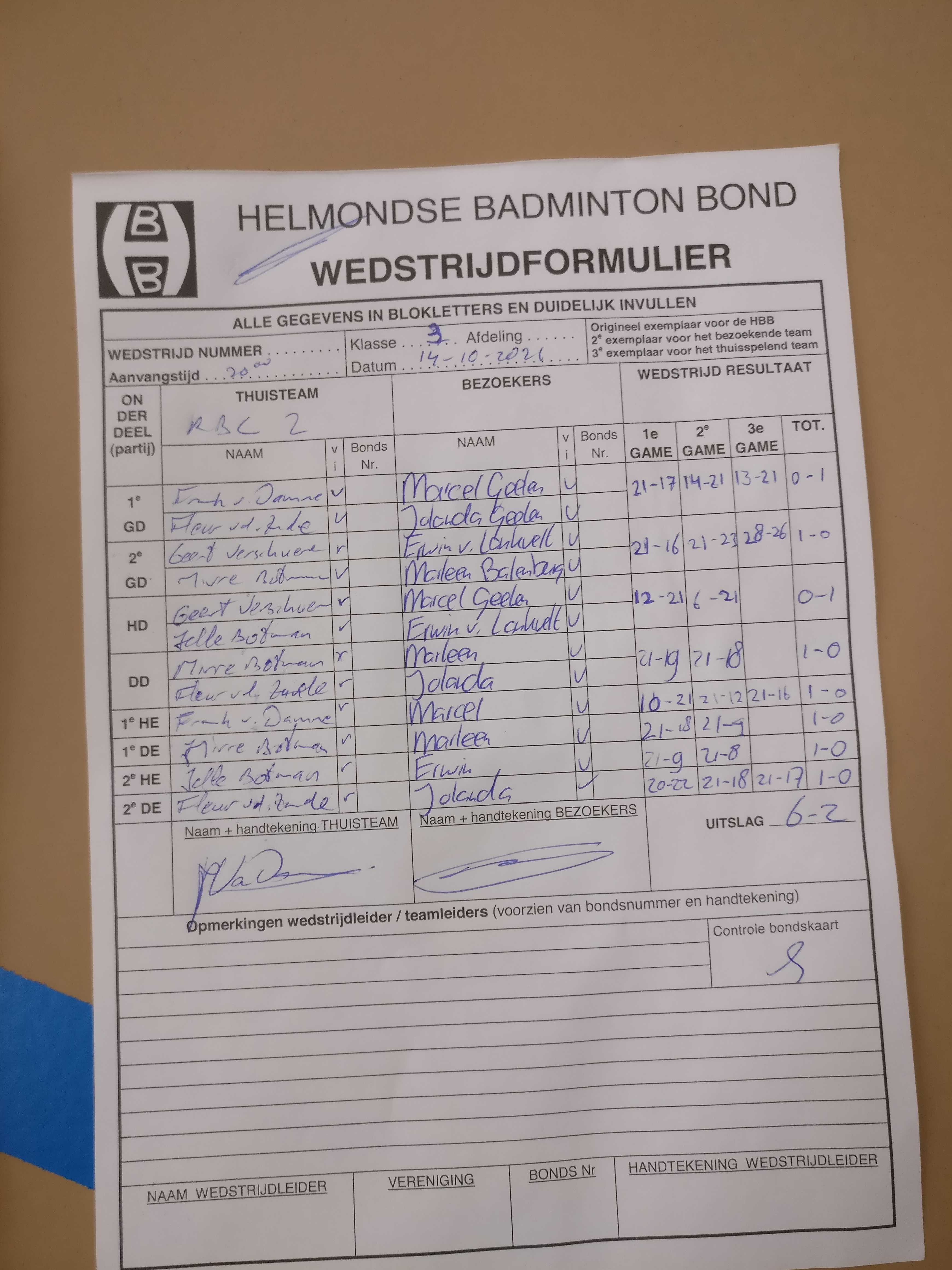 | 153 | wo. 29-09-2021 | Gemert 2 | - | RBC 2 | 14 | 2 - 6 | |||