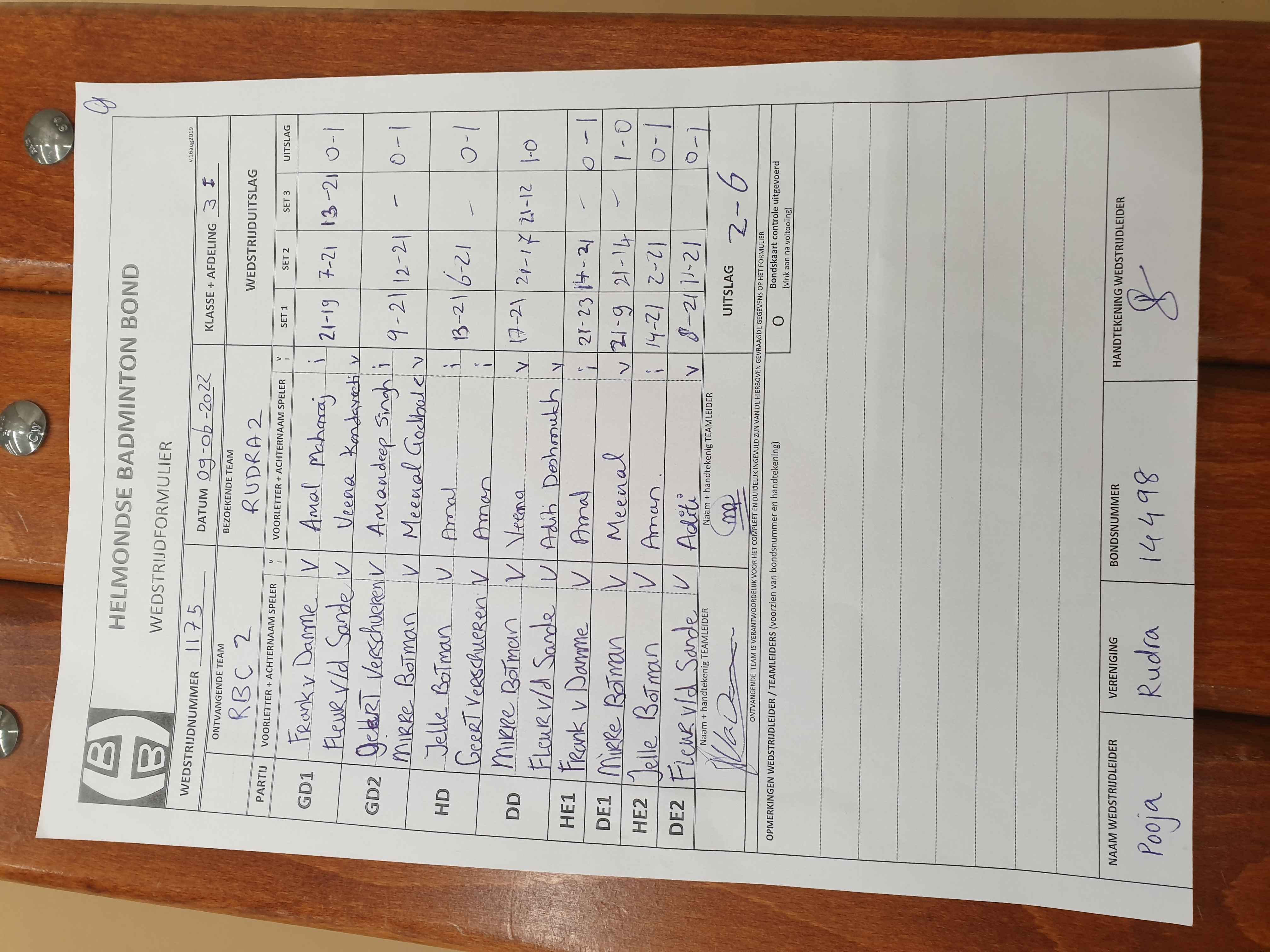 | 1178 | do. 23-06-2022 | RBC 2 | - | Heiakker 1 | 13 | 4 - 4 | |||