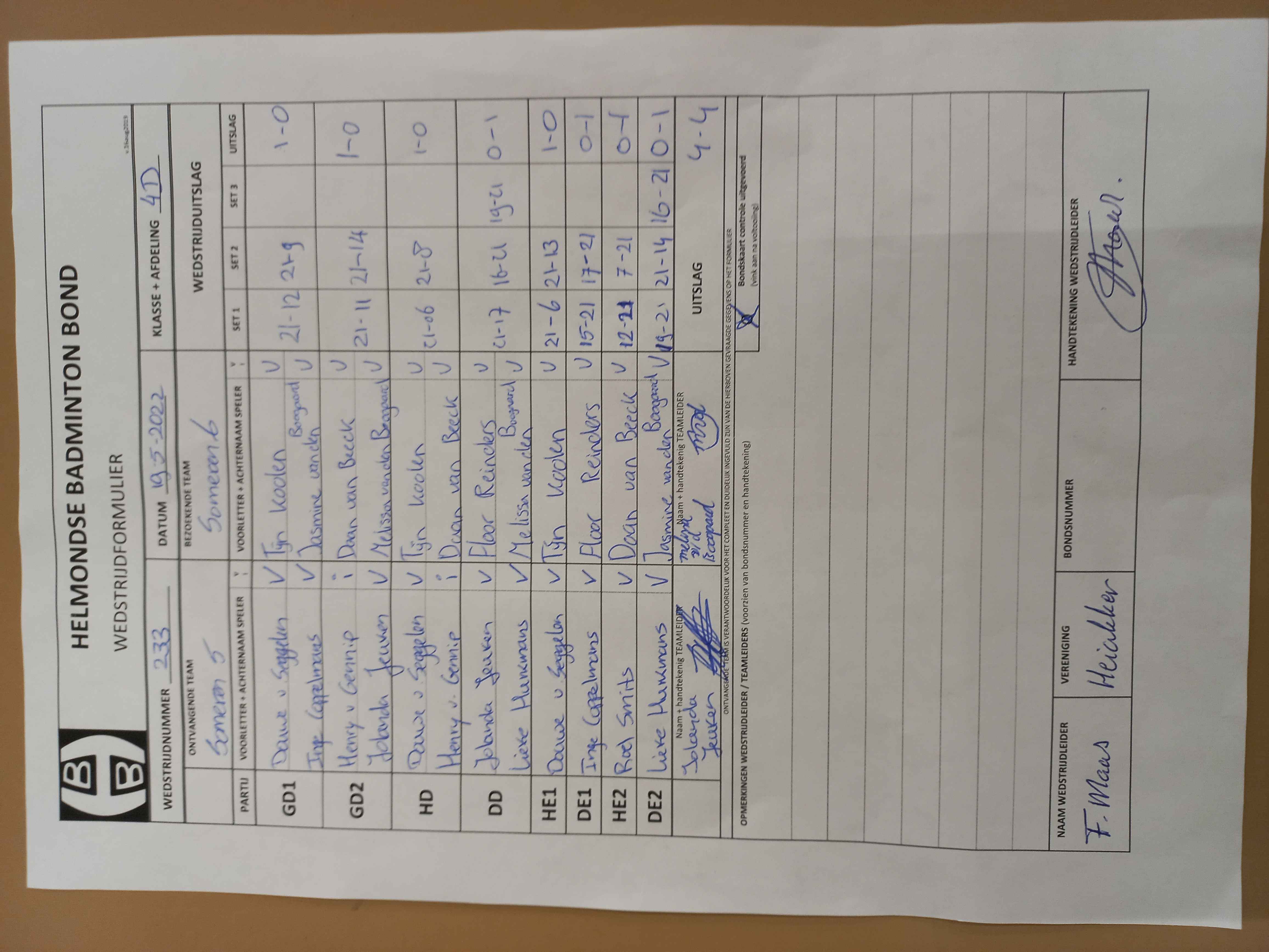 | 233 | do. 19-05-2022 | Someren 5 | - | Someren 6 | 4 | 4 - 4 | |||