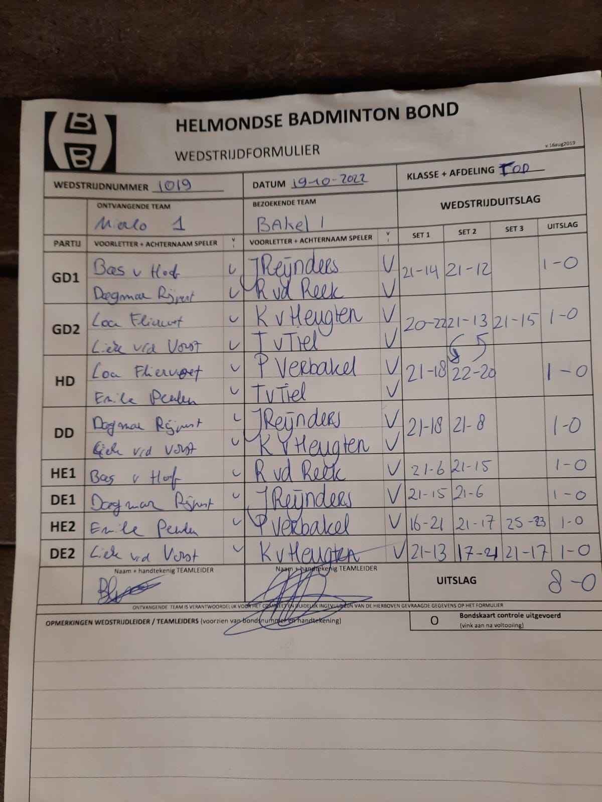 | 1019 | wo. 19-10-2022 | Mierlo 1 | - | Bakel 1 | 13 | 8 - 0 | |||