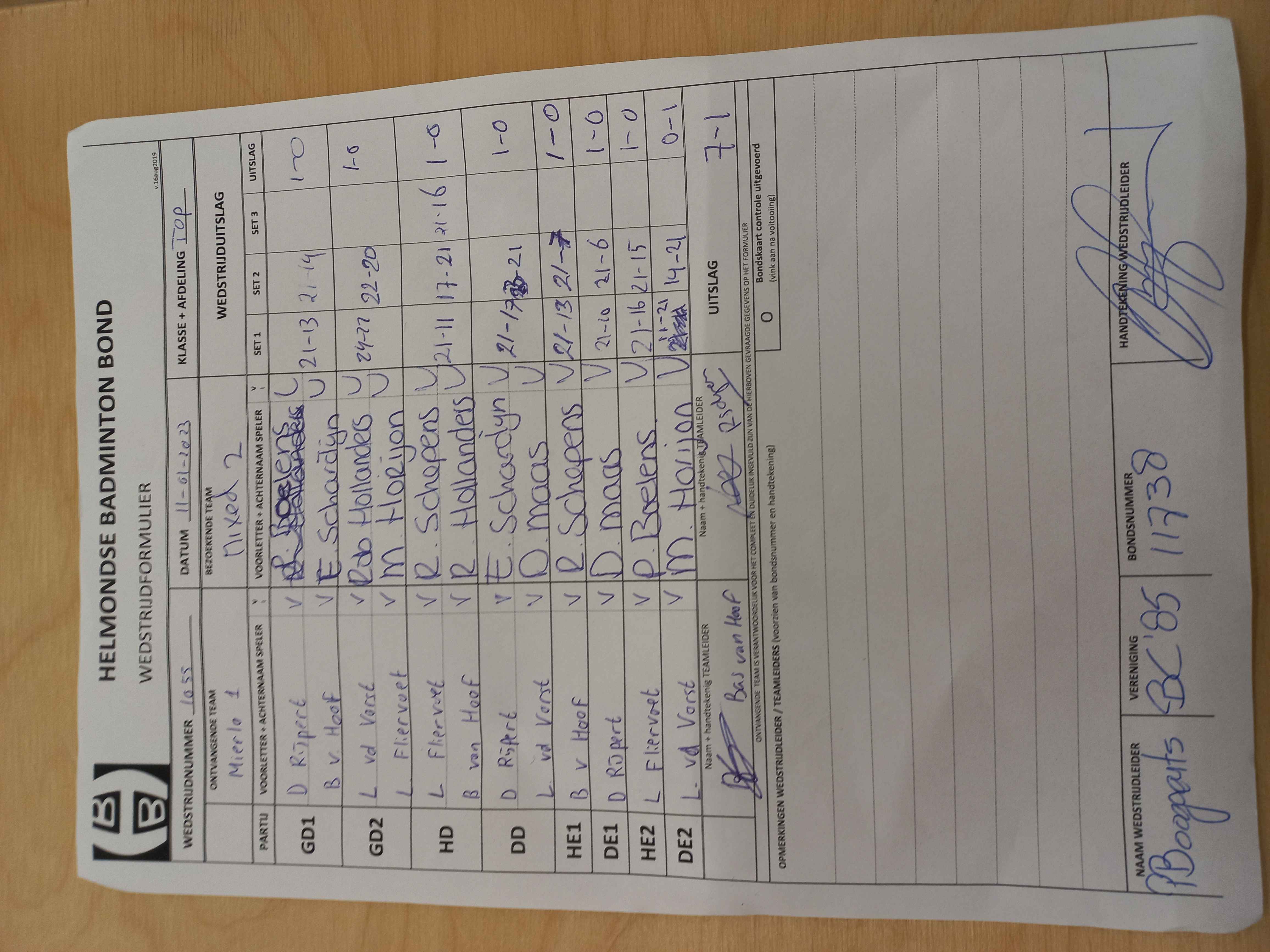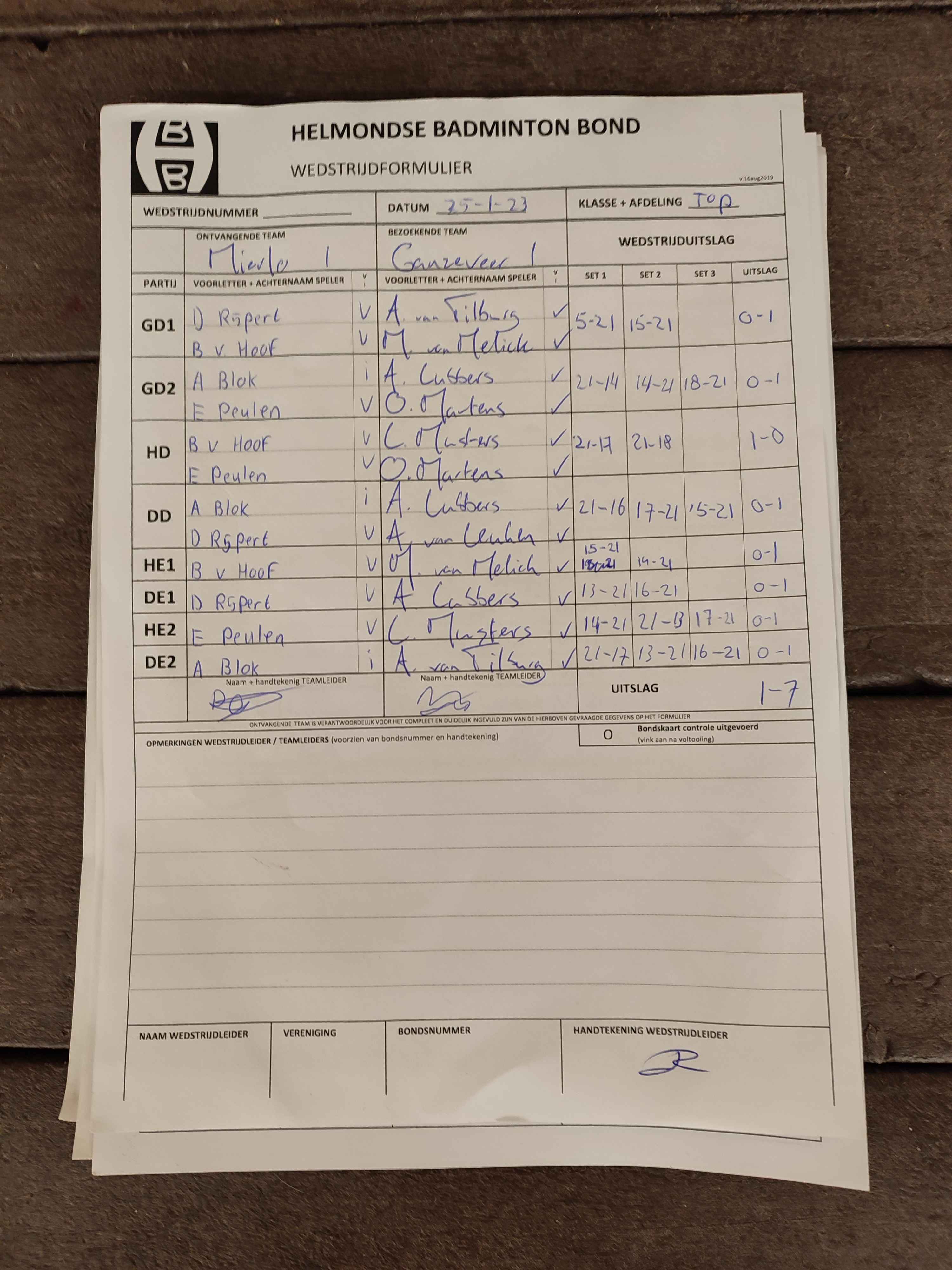 | 1061 | wo. 25-01-2023 | Mierlo 1 | - | Ganzeveer 1 | 2 | 1 - 7 | |||