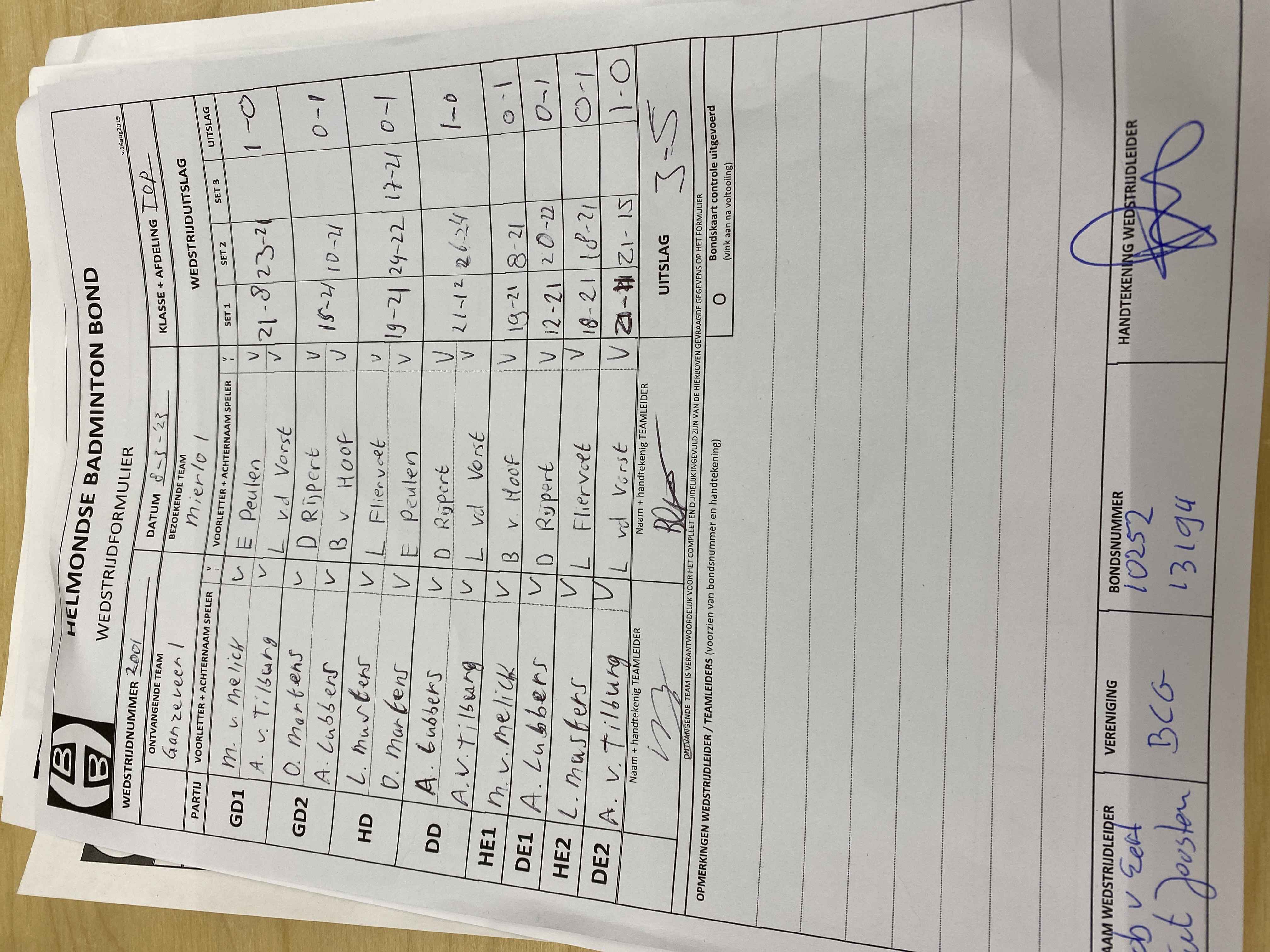 | 2001 | wo. 08-03-2023 | Ganzeveer 1 | - | Mierlo 1 | 3 | 3 - 5 | |||